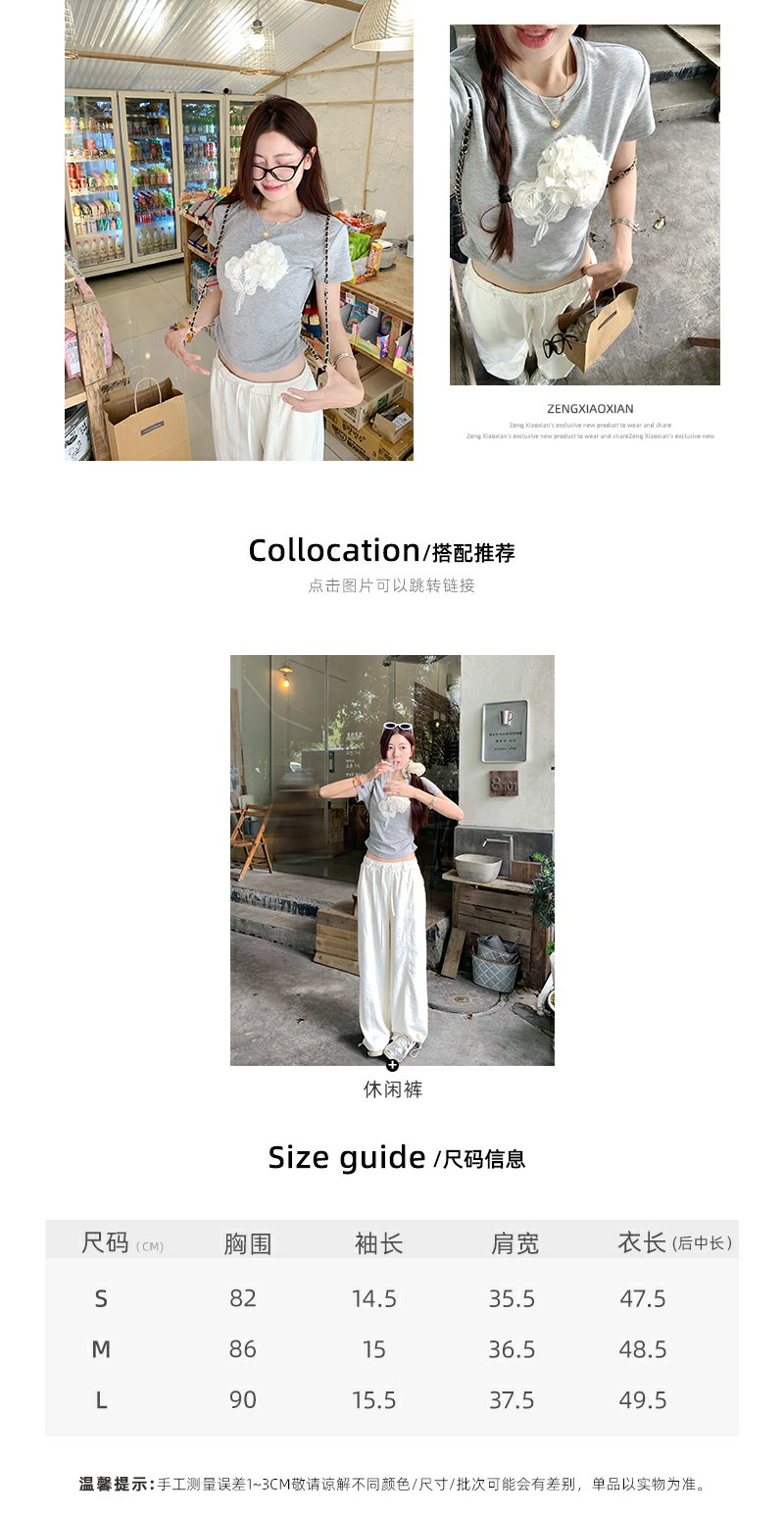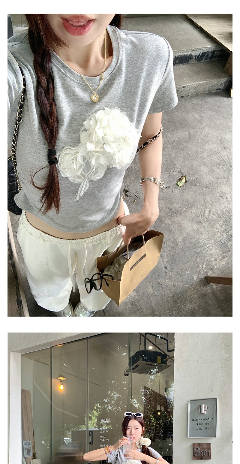 【110元任选2件】最后一波现货!立体花朵修身短袖T恤