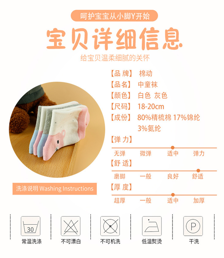 【19元6双】5-7岁丨中童四季精梳棉袜子 舒适透气 防臭柔软【823207】