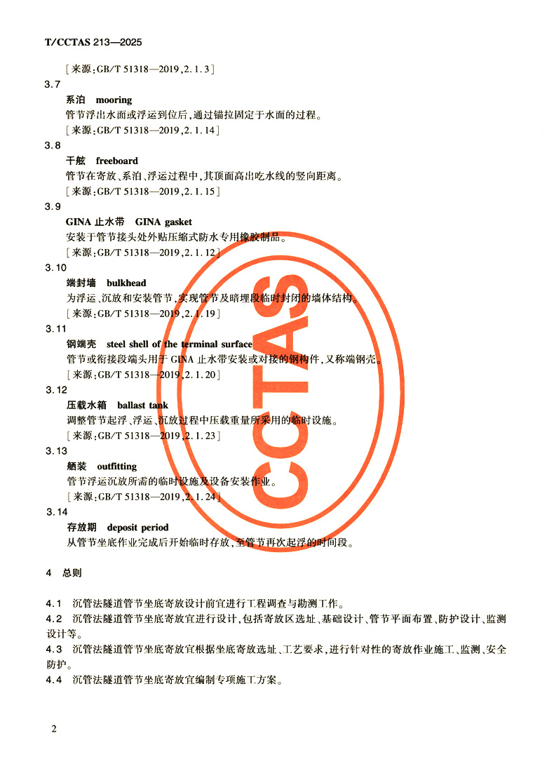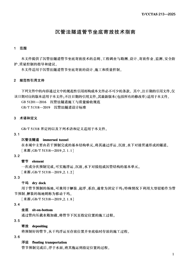 书名:沉管法隧道管节坐底寄放技术指南T/CCTAS 213—2025
