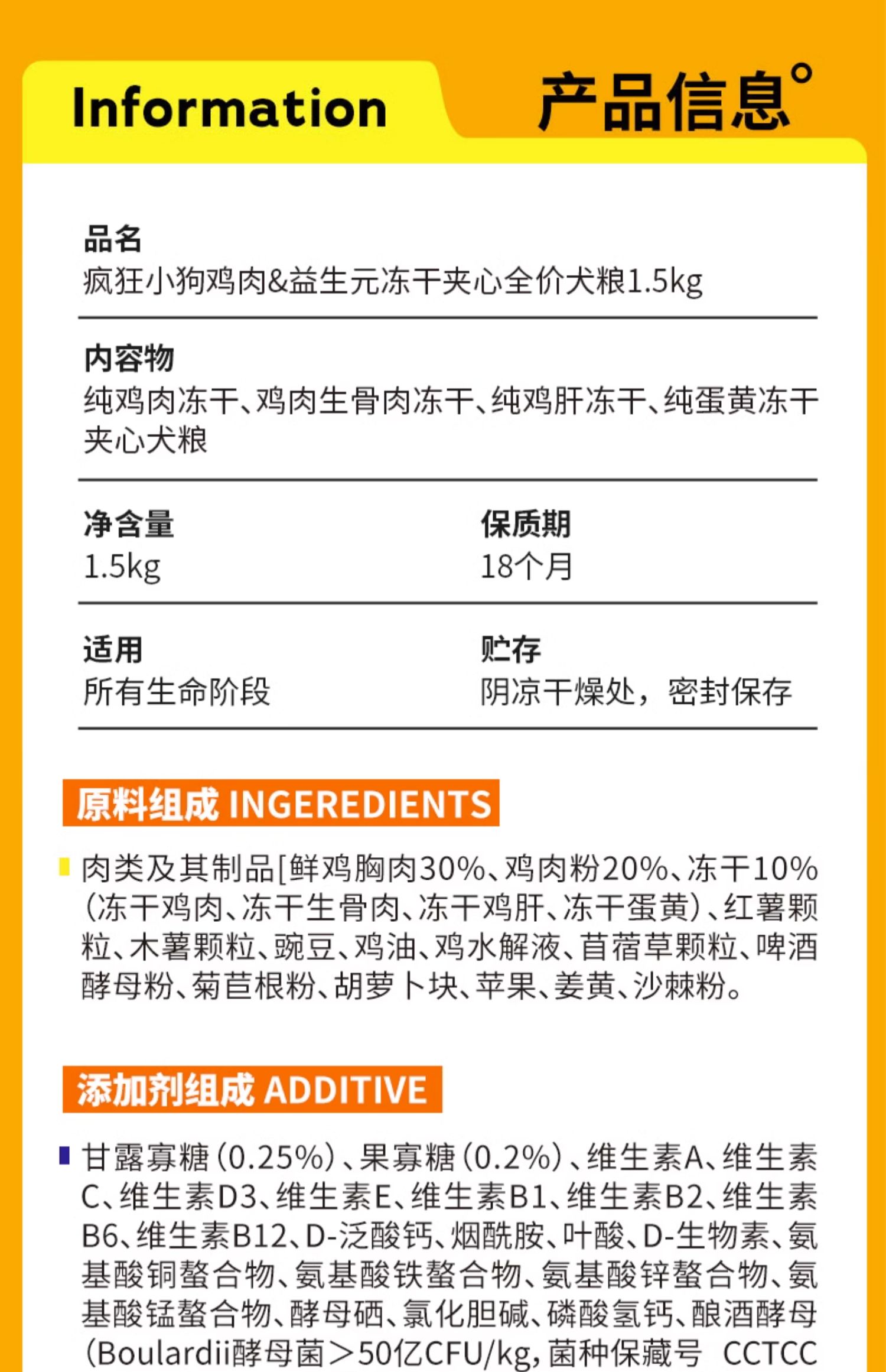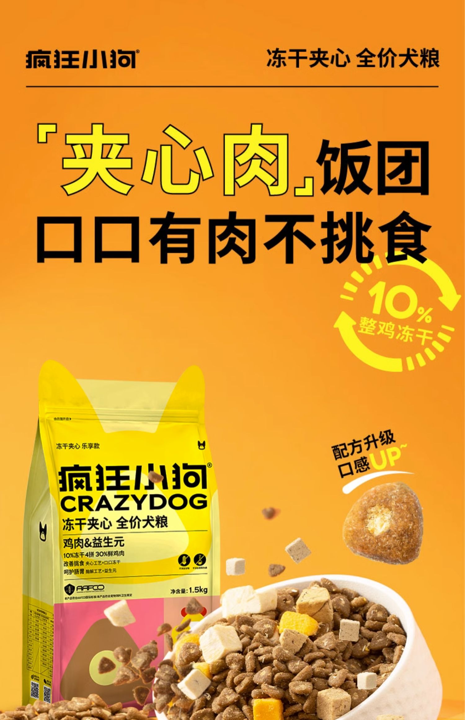 疯狂小狗 鸡肉益生元10kg 兔肉鱼油20斤 小耳朵冻干夹心全价犬粮