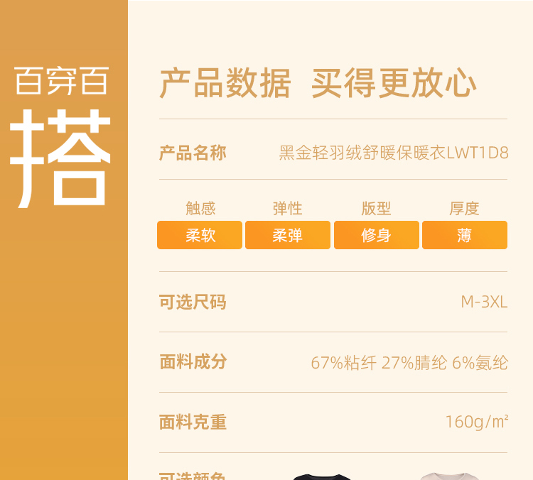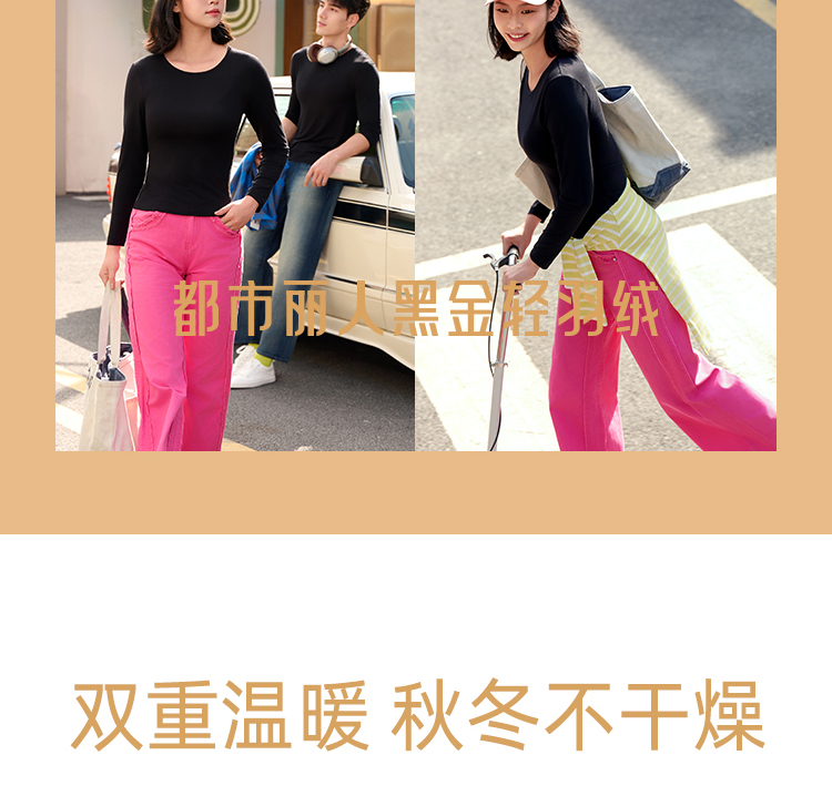 都市丽人黑金.轻羽绒3.0百搭保暖衣套装轻暖超薄轻羽绒长袖长裤女士特殊面料套装LWT1D8
