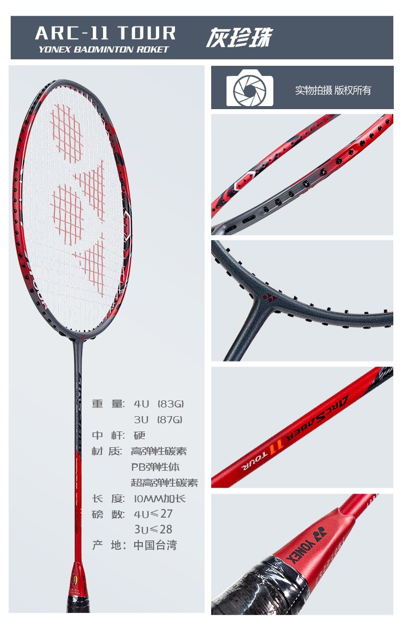 尤尼克斯25年款弓箭系列羽毛球拍ARC11-TEX_764_4U5/3U5 (ARC11TOUR灰珍珠)(不含羽线)