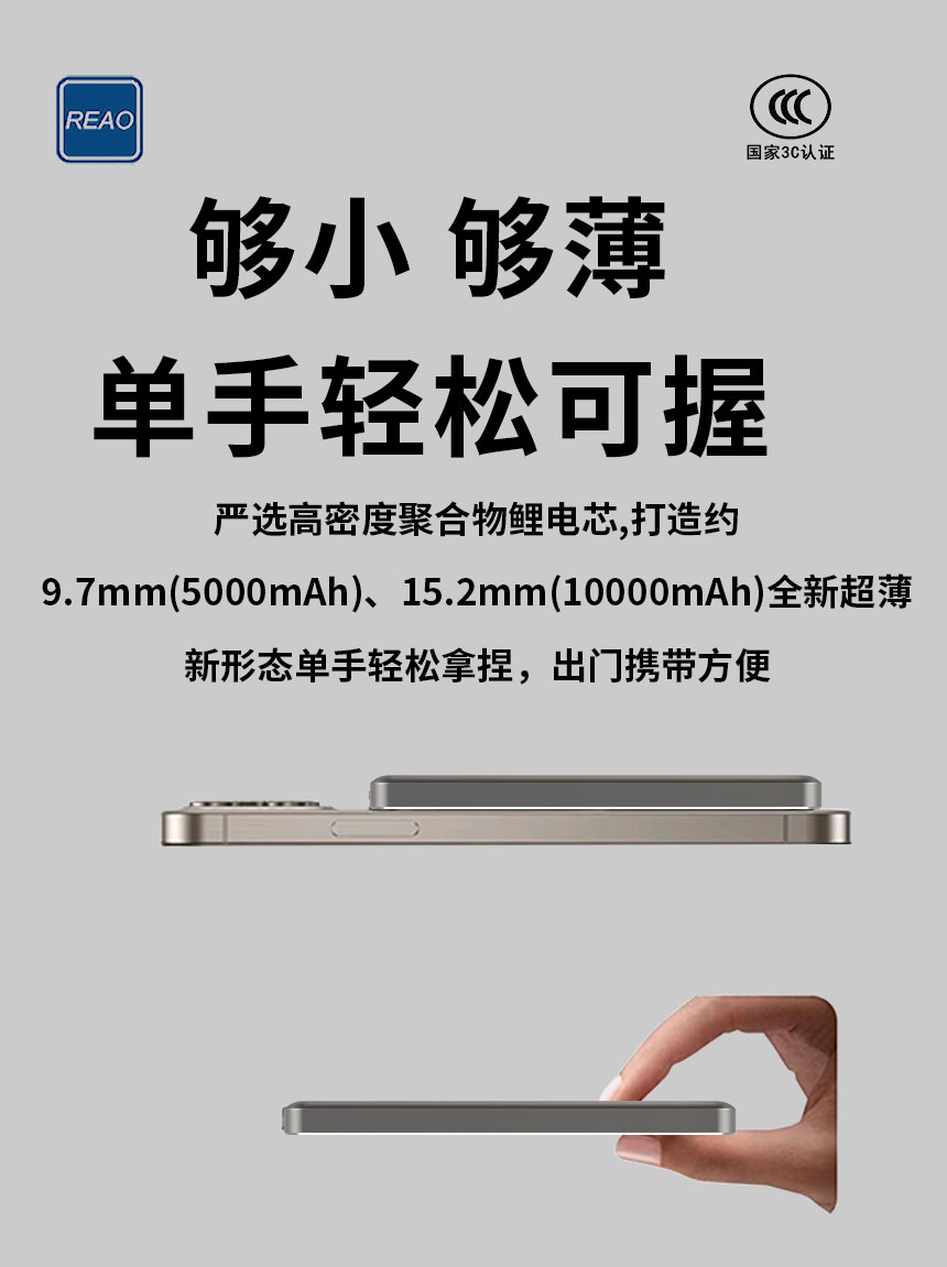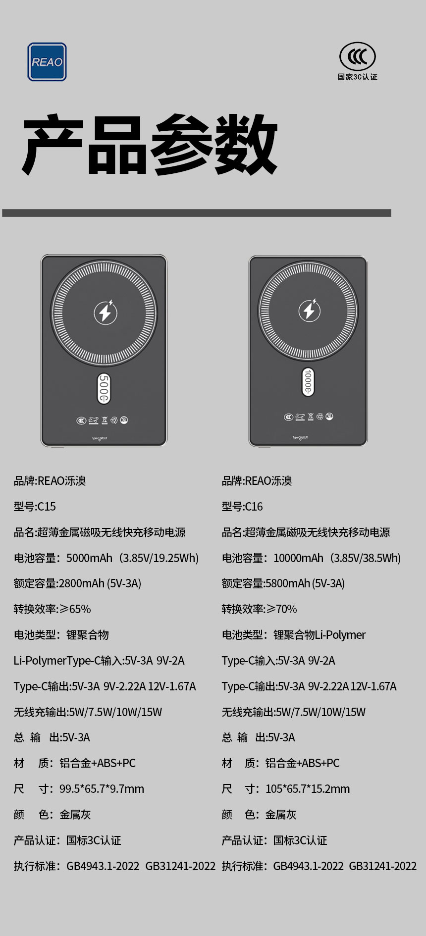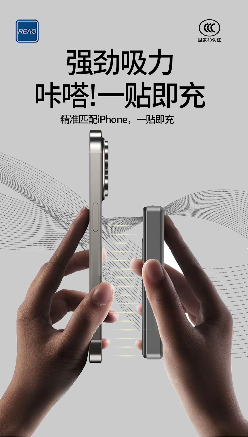泺澳 黑金刚磁吸无线快充移动电源(5000毫安) C15