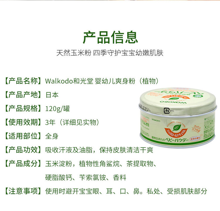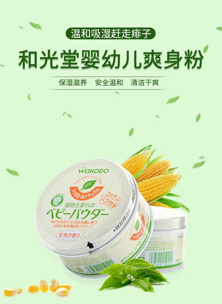 日本直邮 和光堂婴幼儿宝宝茶香植物爽身粉痱子粉120g