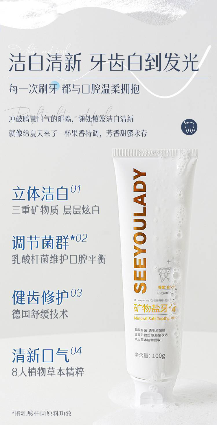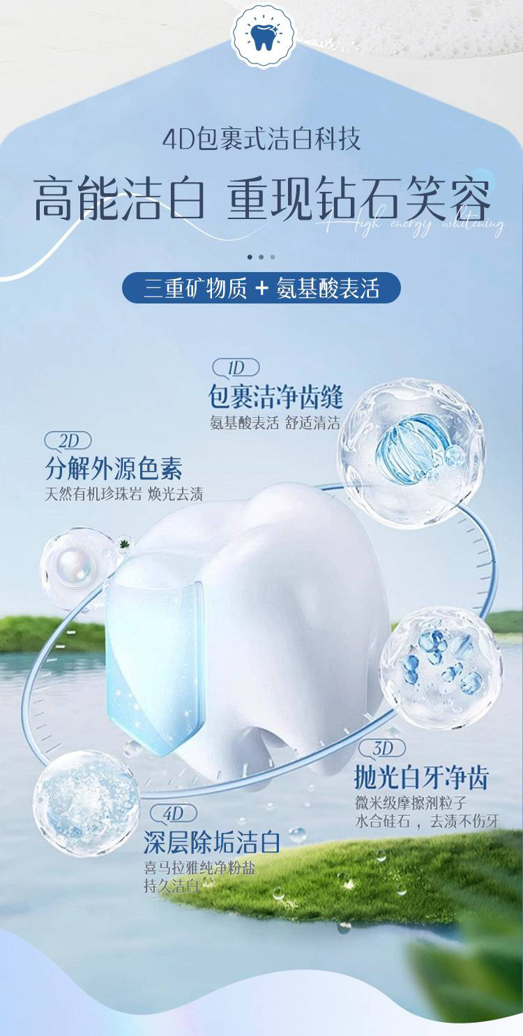 三重矿物质氨基酸表活洁白成人牙膏(3支一组)
