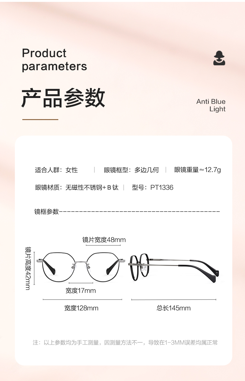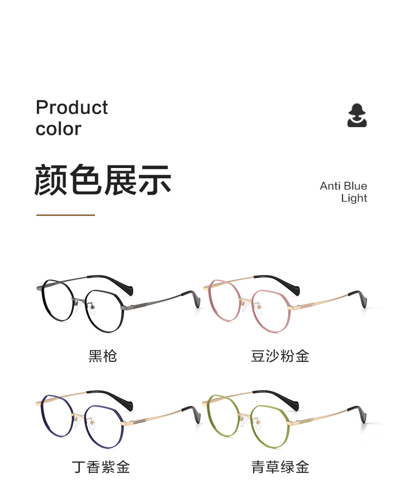 普莱斯SUYAN PT1336光学镜框 痞帅潮框 复古质感圆框 修颜瘦脸 β钛+无磁不锈钢 男女通用 四色可选