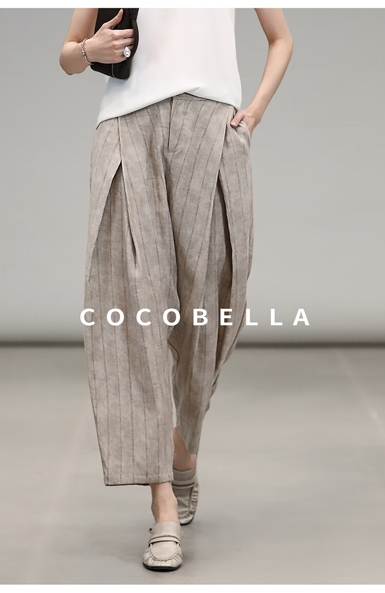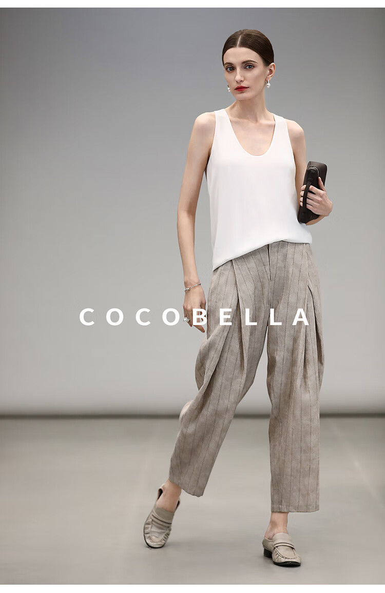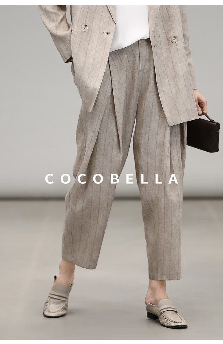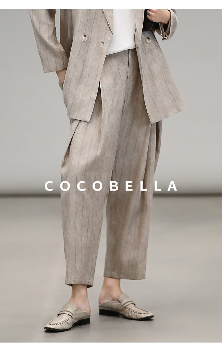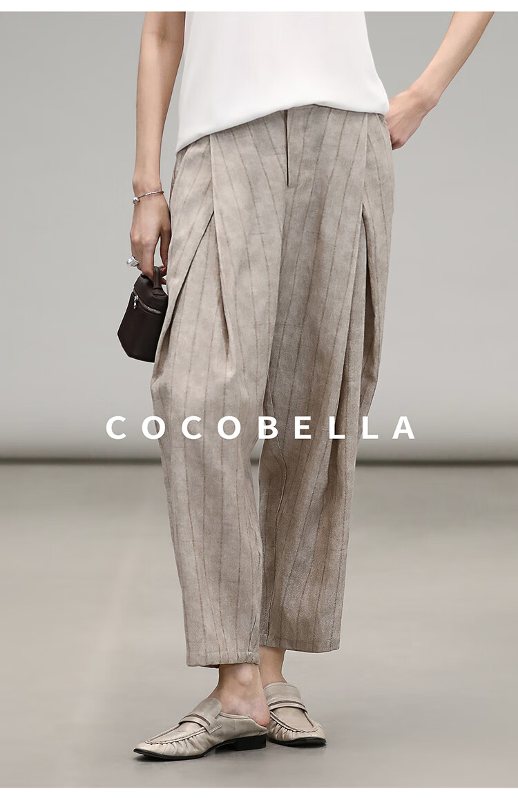 COCOBELLA质感亚麻打褶锥腿裤女25春夏利落九分休闲裤PA7047