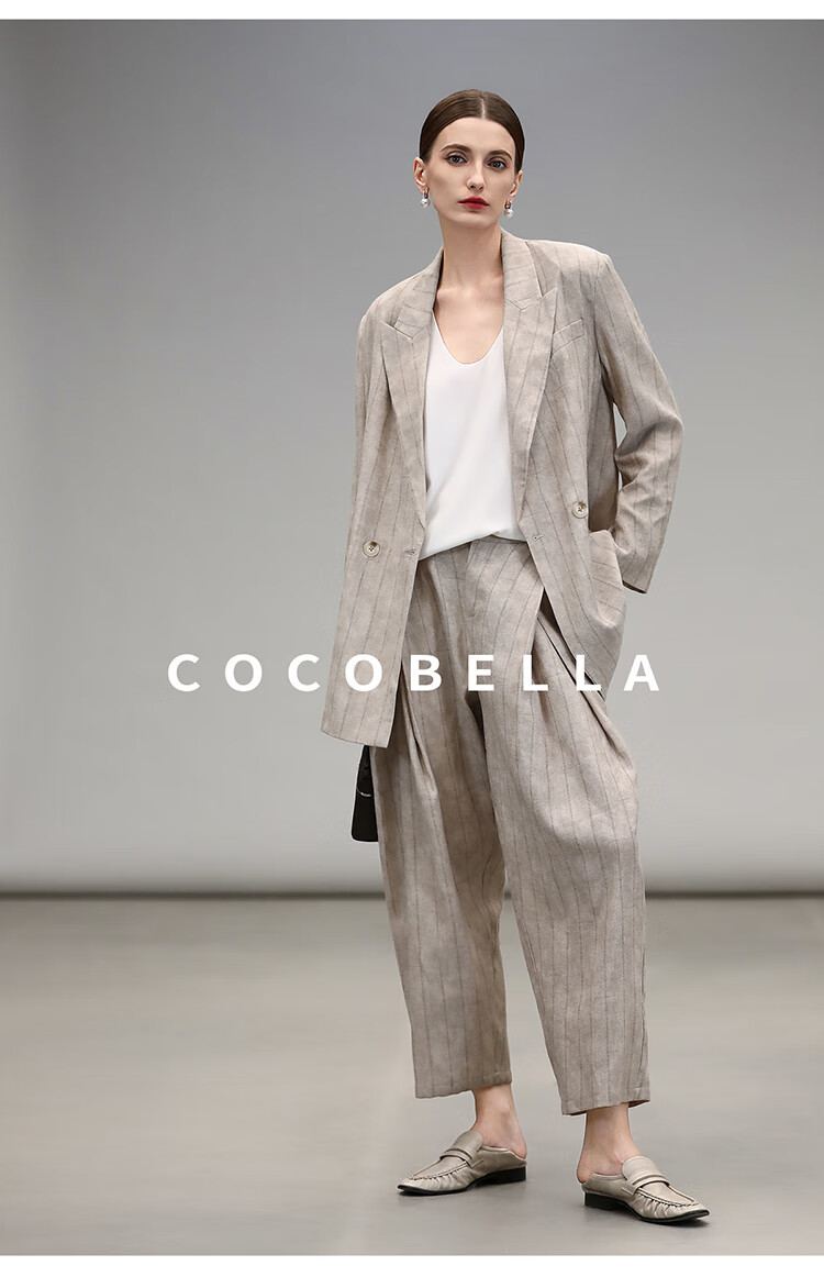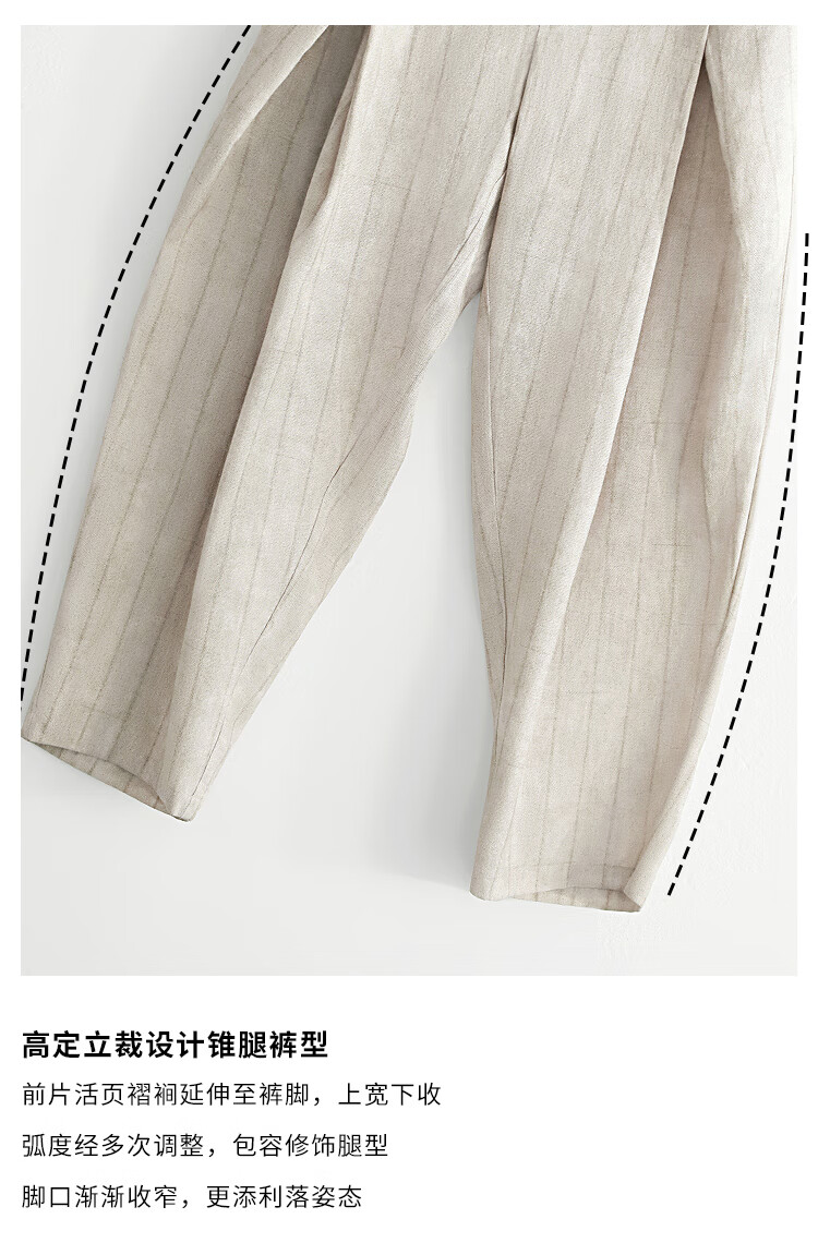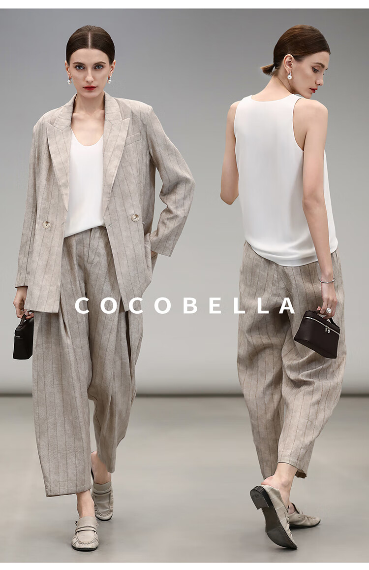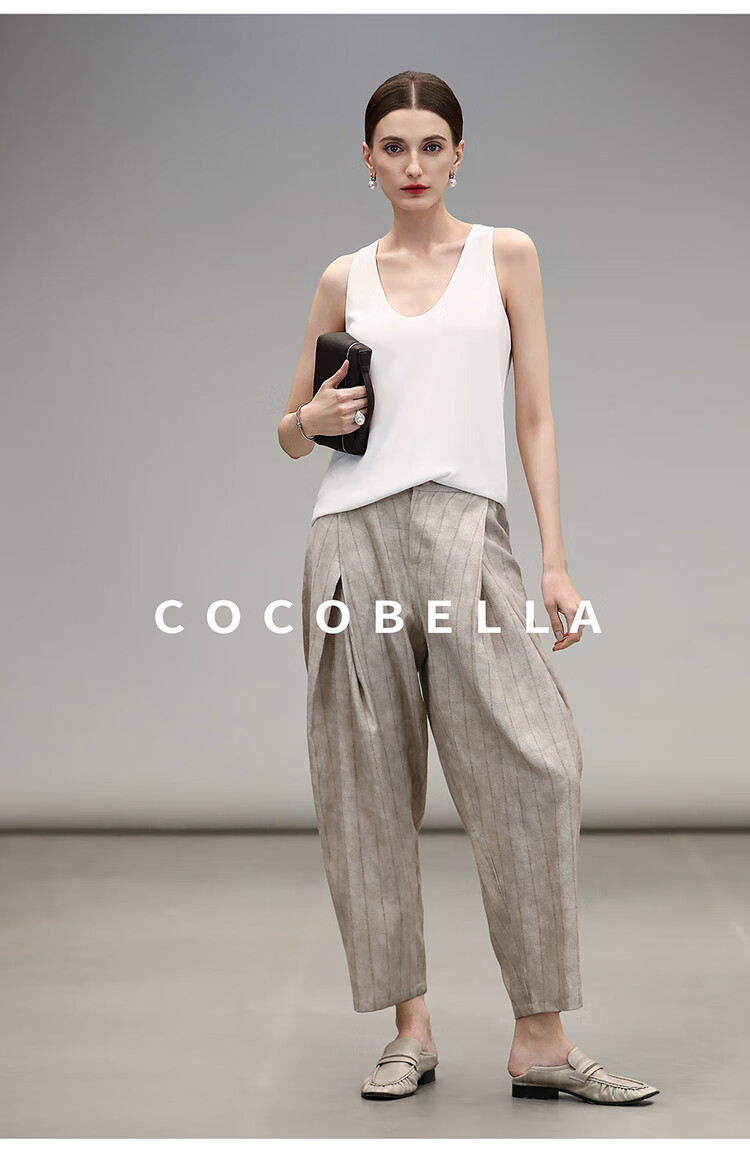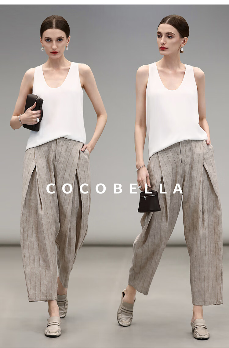 COCOBELLA质感亚麻打褶锥腿裤女25春夏利落九分休闲裤PA7047