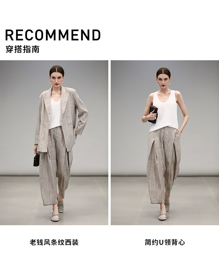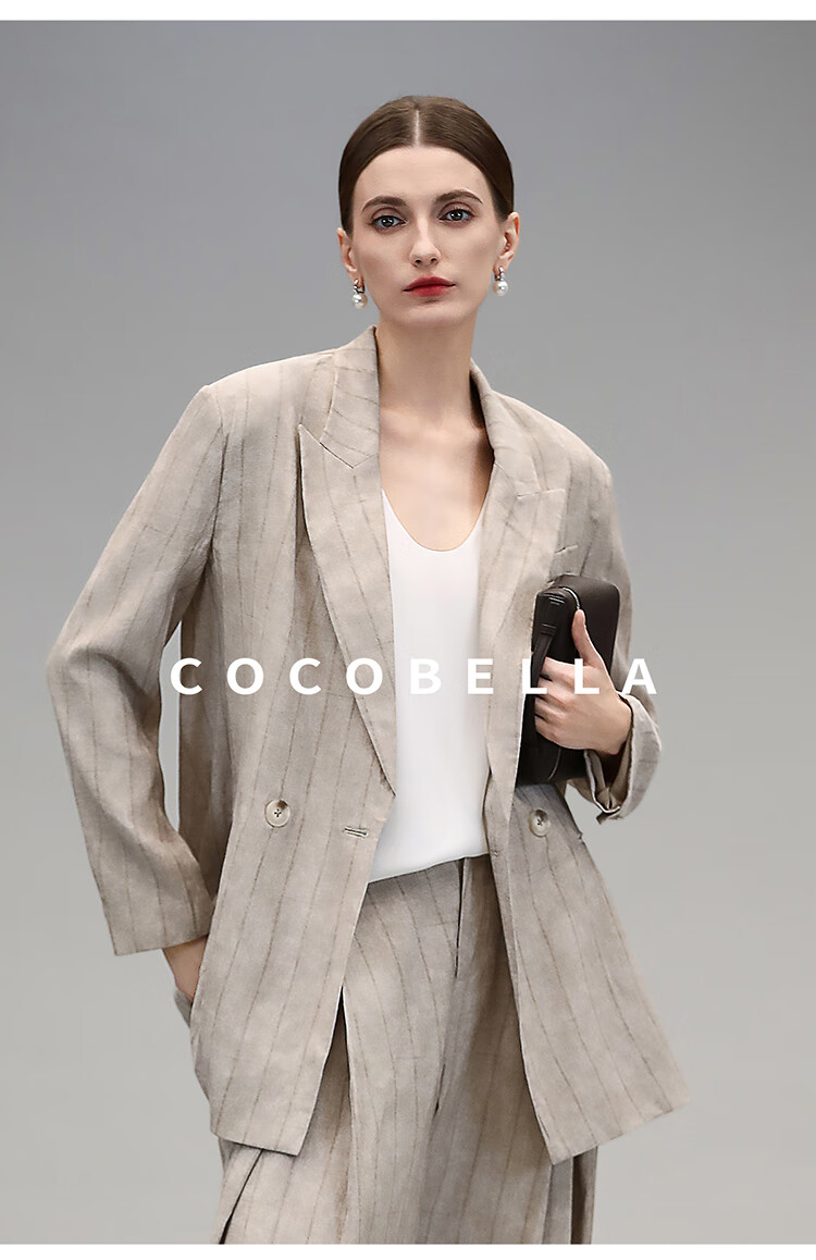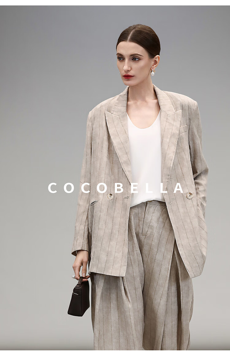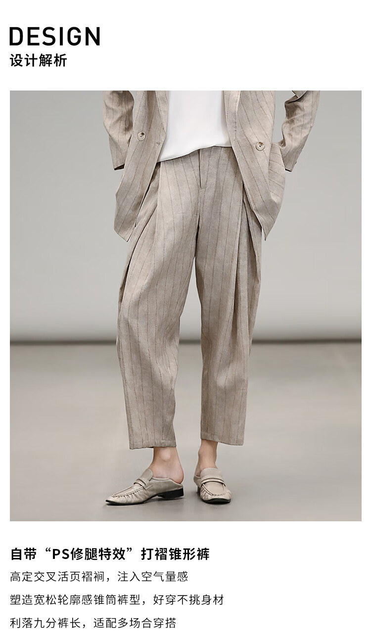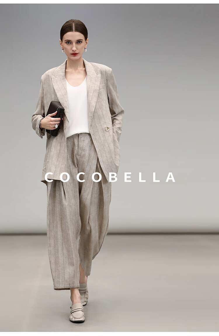 COCOBELLA质感亚麻打褶锥腿裤女25春夏利落九分休闲裤PA7047