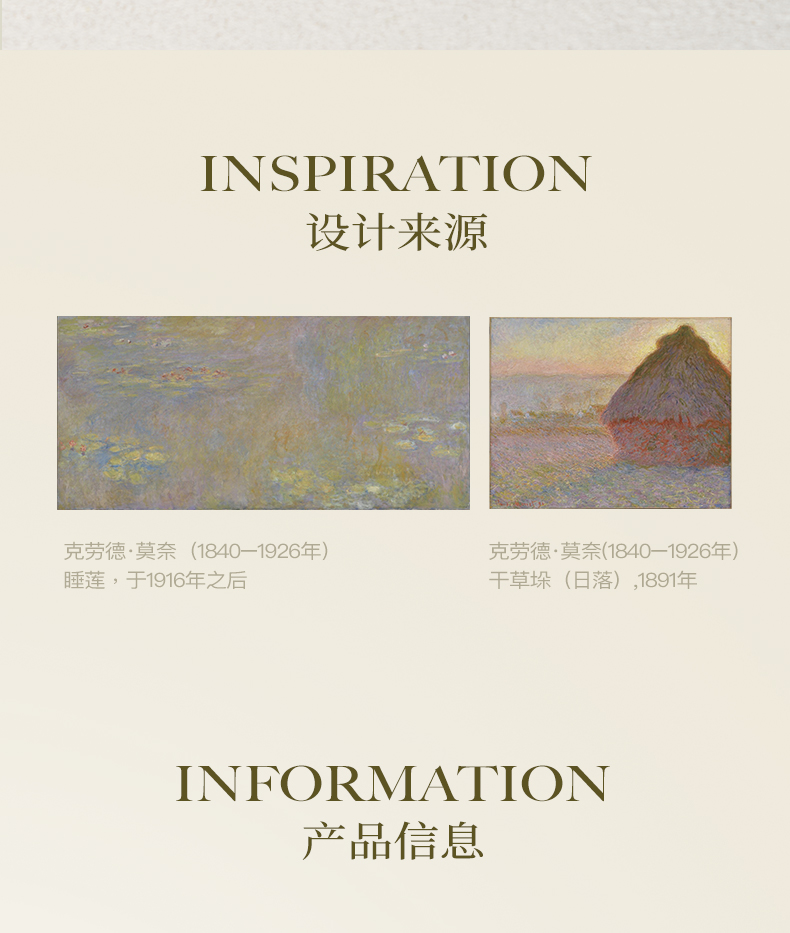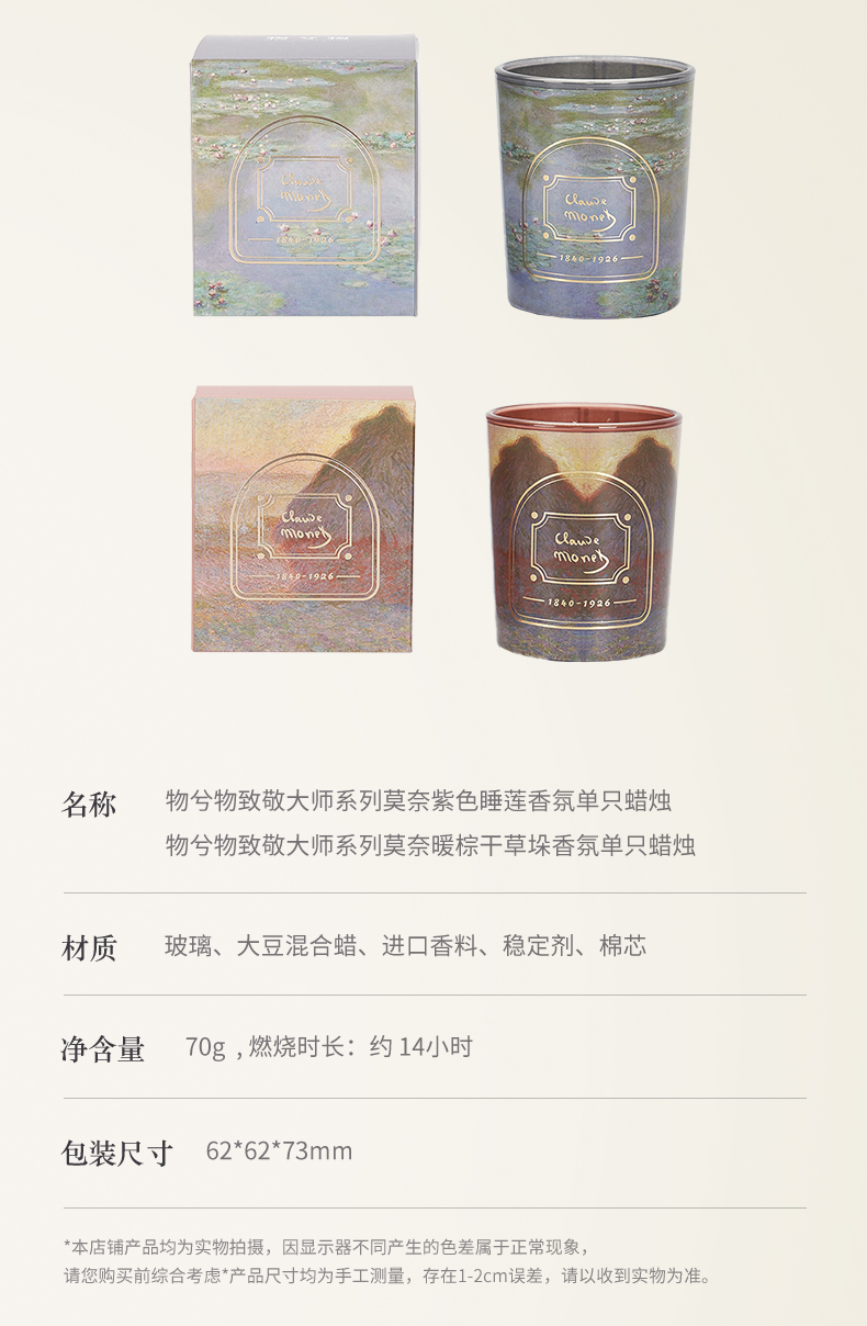 物兮物 致敬大师系列 莫奈 紫色睡莲 暖棕干草垛 香氛蜡烛