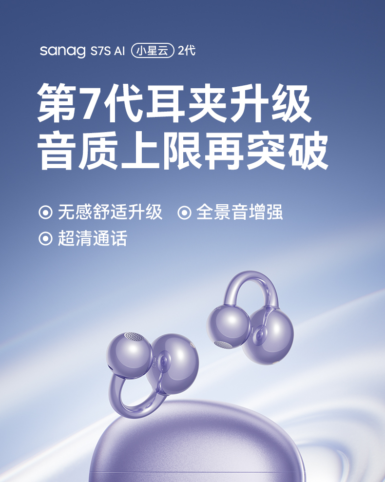SANAG塞那 S7S AI骨传导蓝牙耳机耳夹概念开放式无线不入耳
