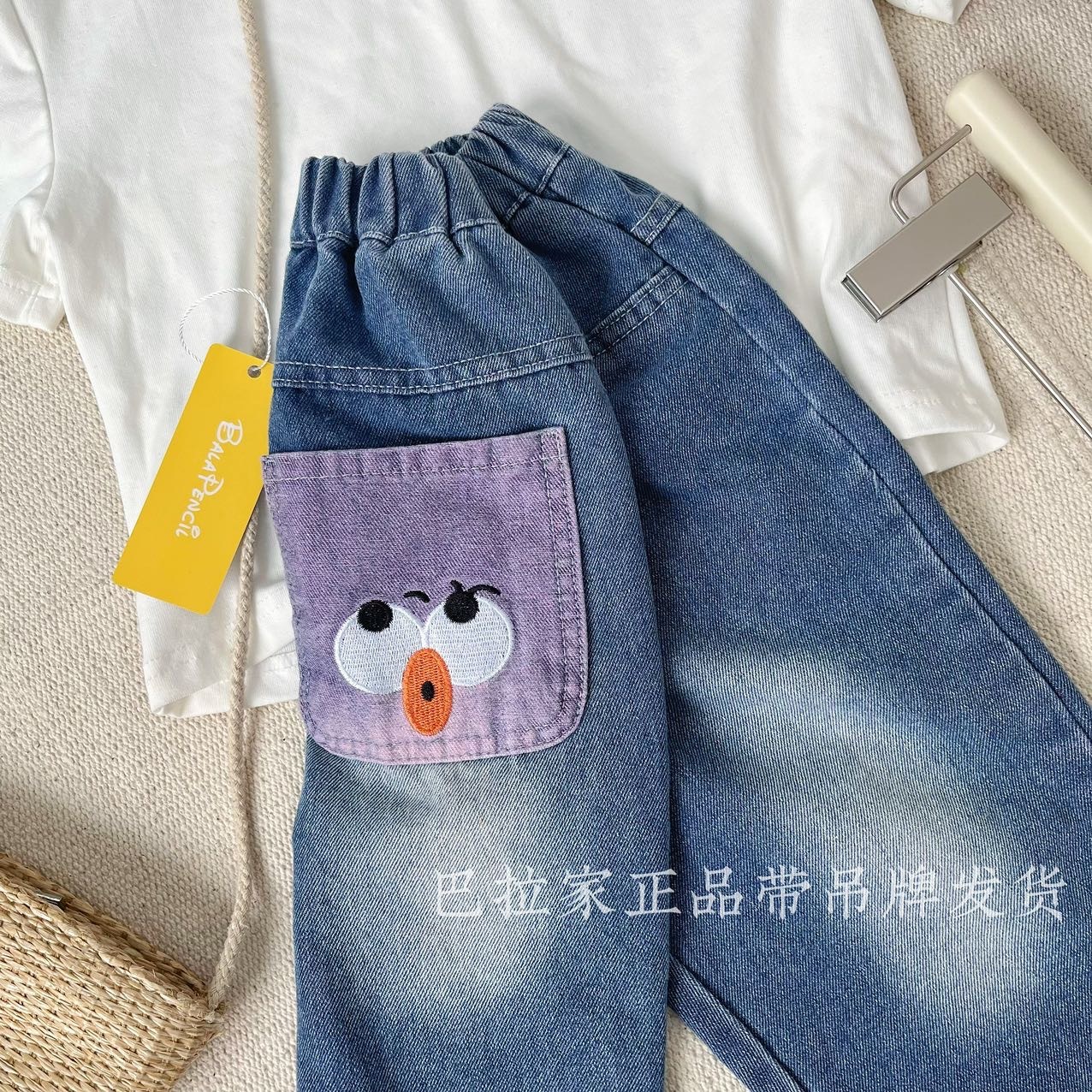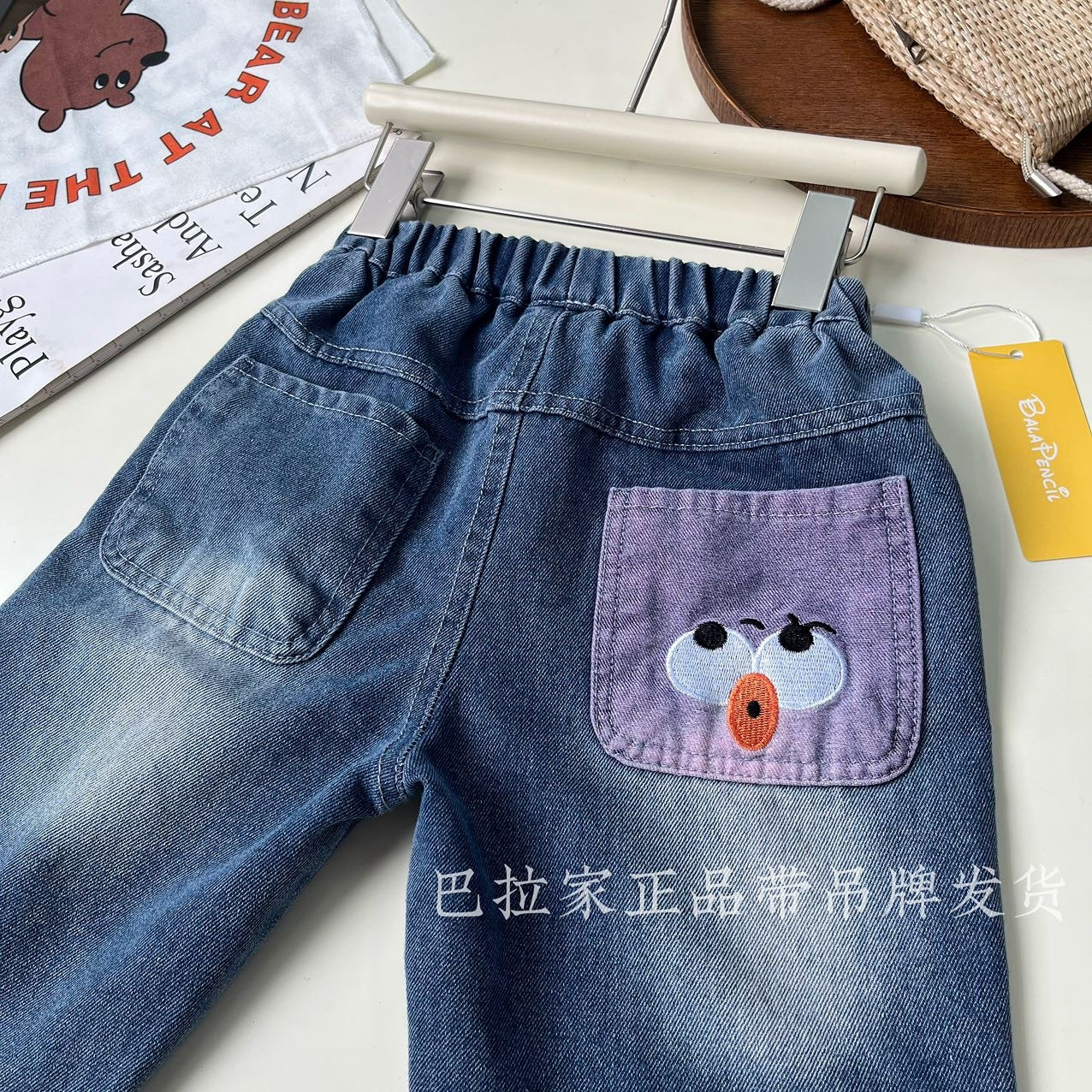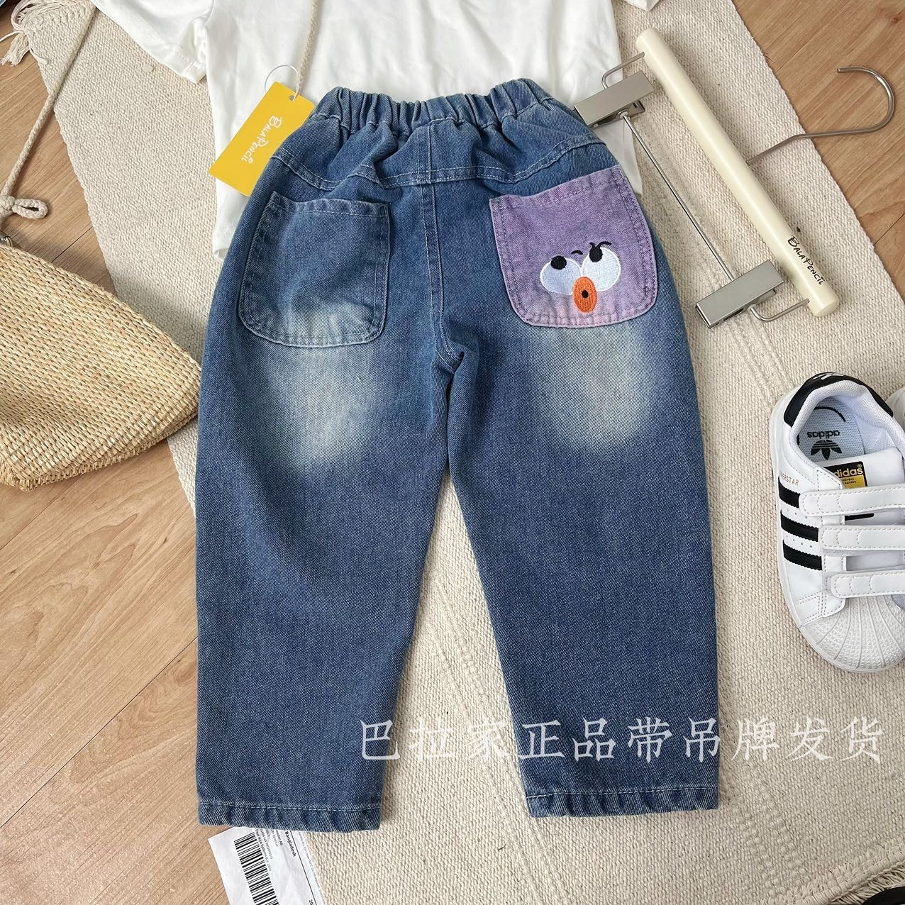 巴拉家春季上新~正品直发‼️ 绝佳版型😻独家首发✌️超有设计感的后口袋撞色嘟嘴表情设计,使得整体设计不单调‼️宝贝上身简直就是人群中最闪亮的崽😎 一年四季都能穿的款式🥰把整体时髦感发挥到极致✨后口袋撞色设计,上身的看点满满‼️