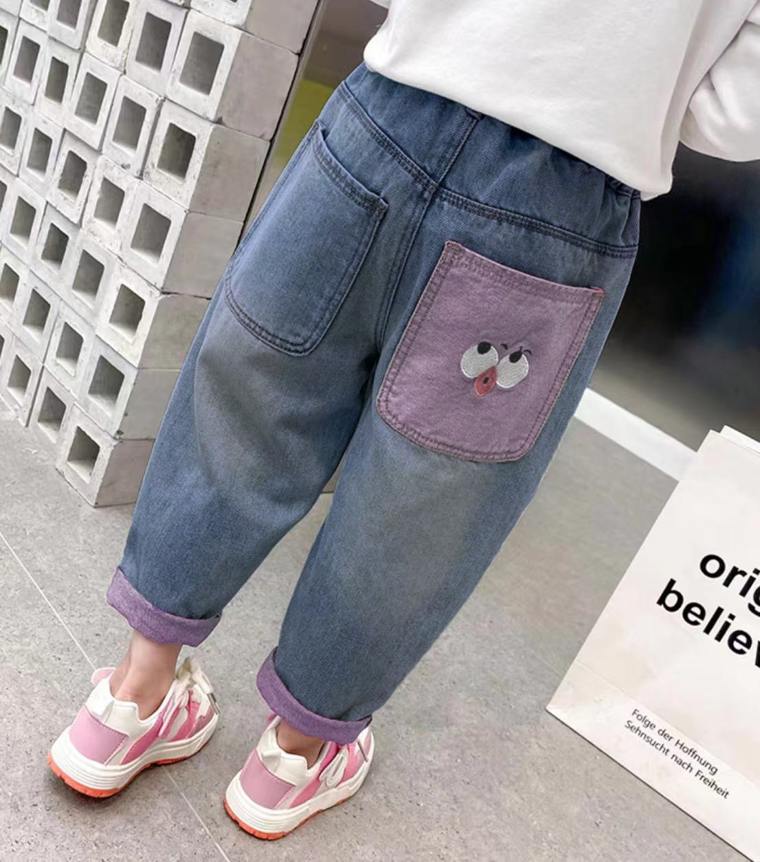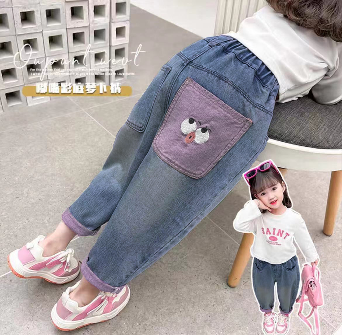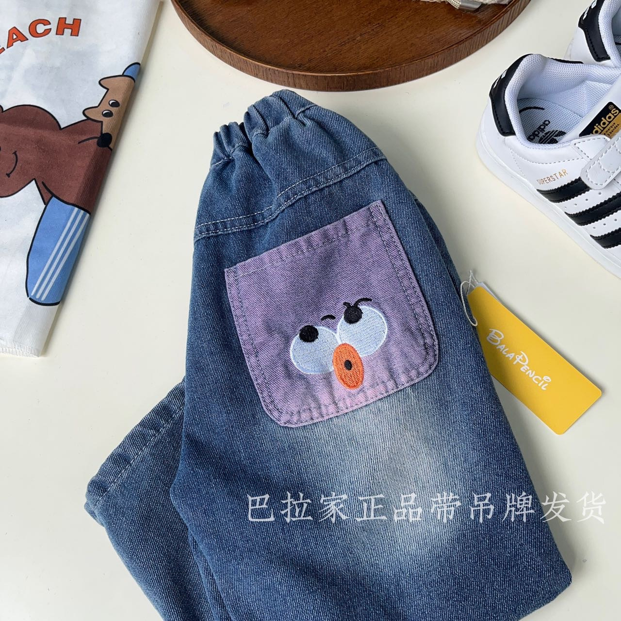 巴拉家春季上新~正品直发‼️ 绝佳版型😻独家首发✌️超有设计感的后口袋撞色嘟嘴表情设计,使得整体设计不单调‼️宝贝上身简直就是人群中最闪亮的崽😎 一年四季都能穿的款式🥰把整体时髦感发挥到极致✨后口袋撞色设计,上身的看点满满‼️