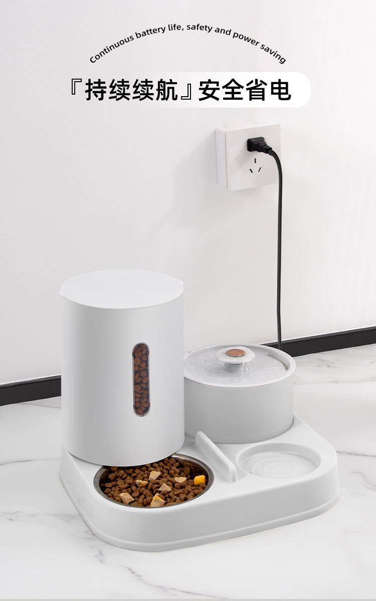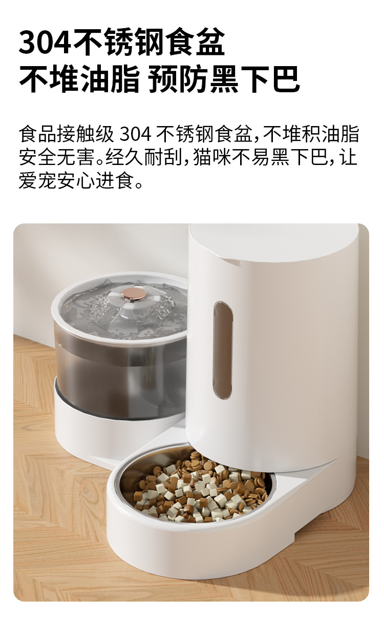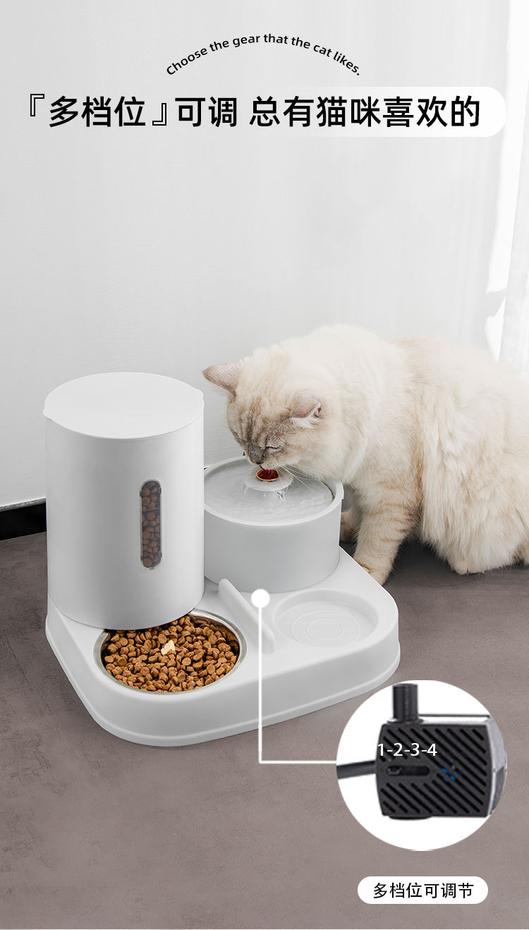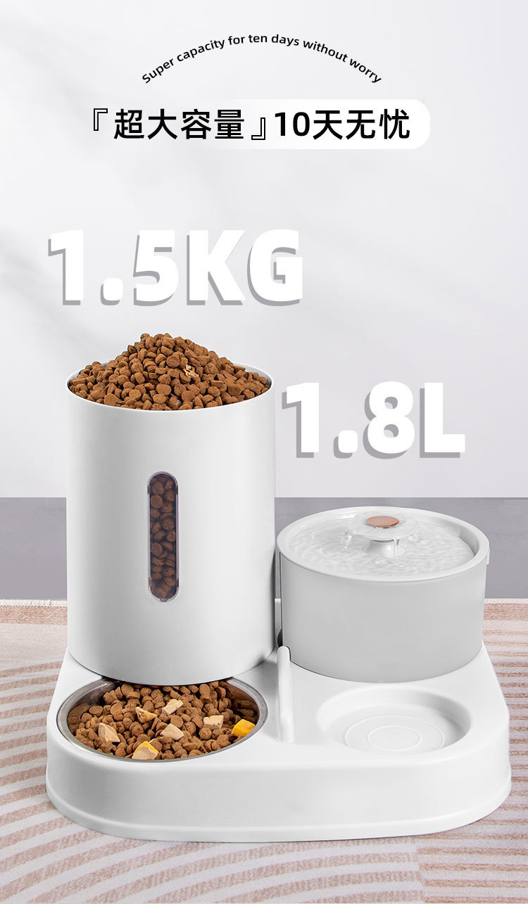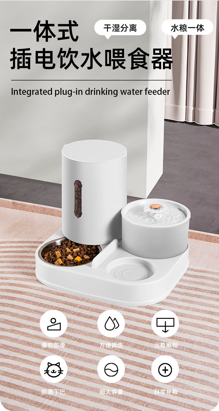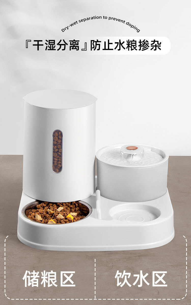 新款新品猫咪自动饮水喂食一体机自动猫狗两用自助猫粮盆狗粮喂水器