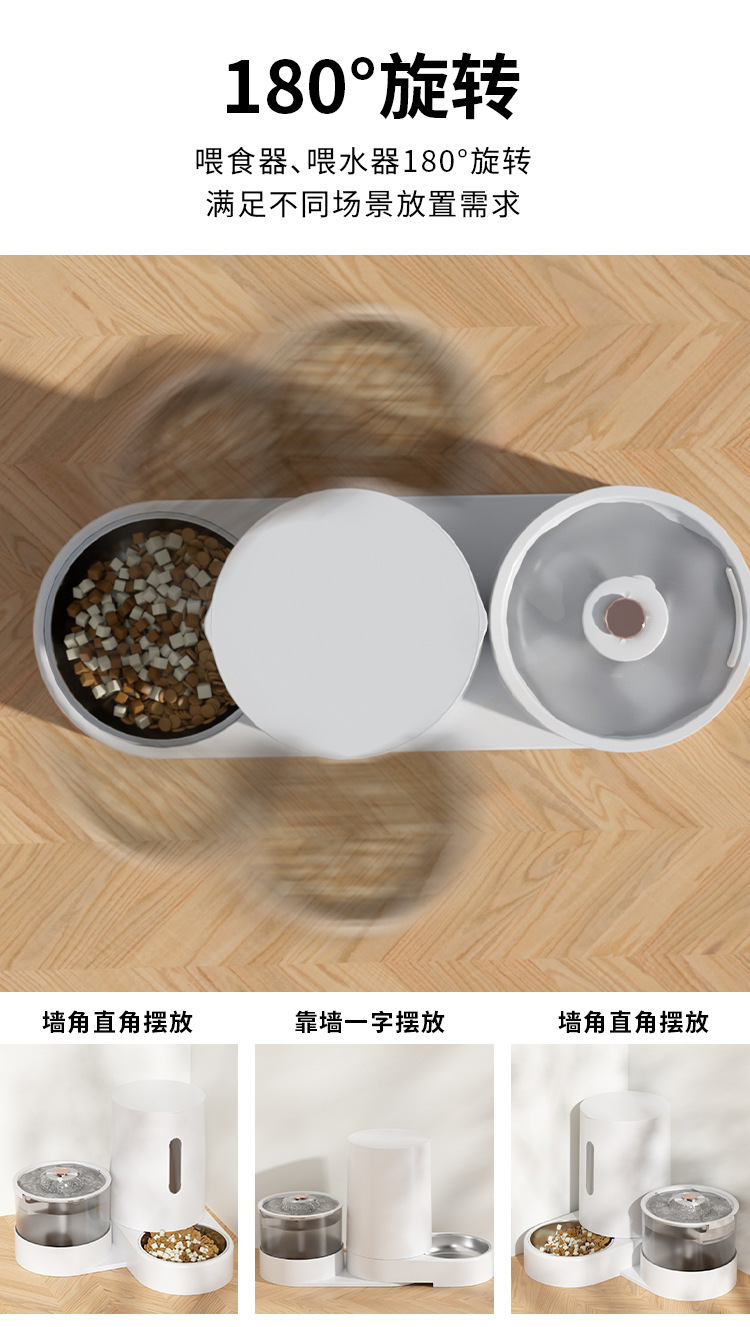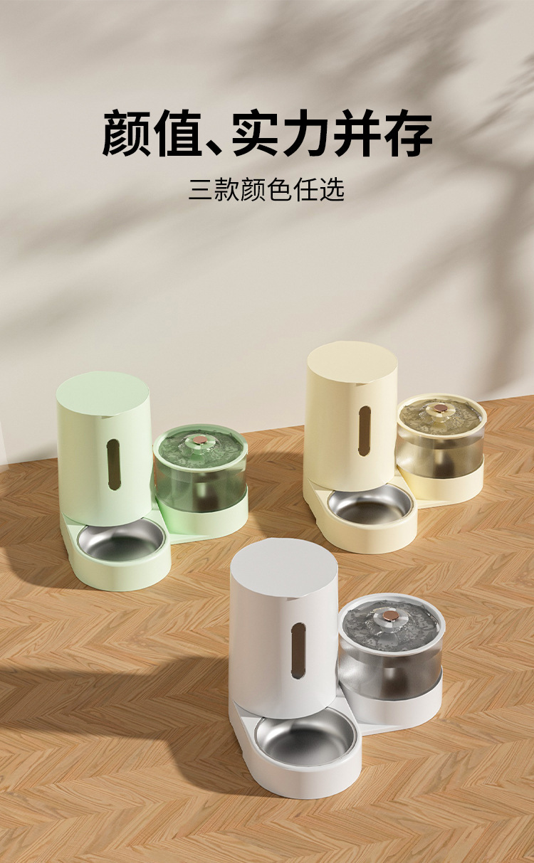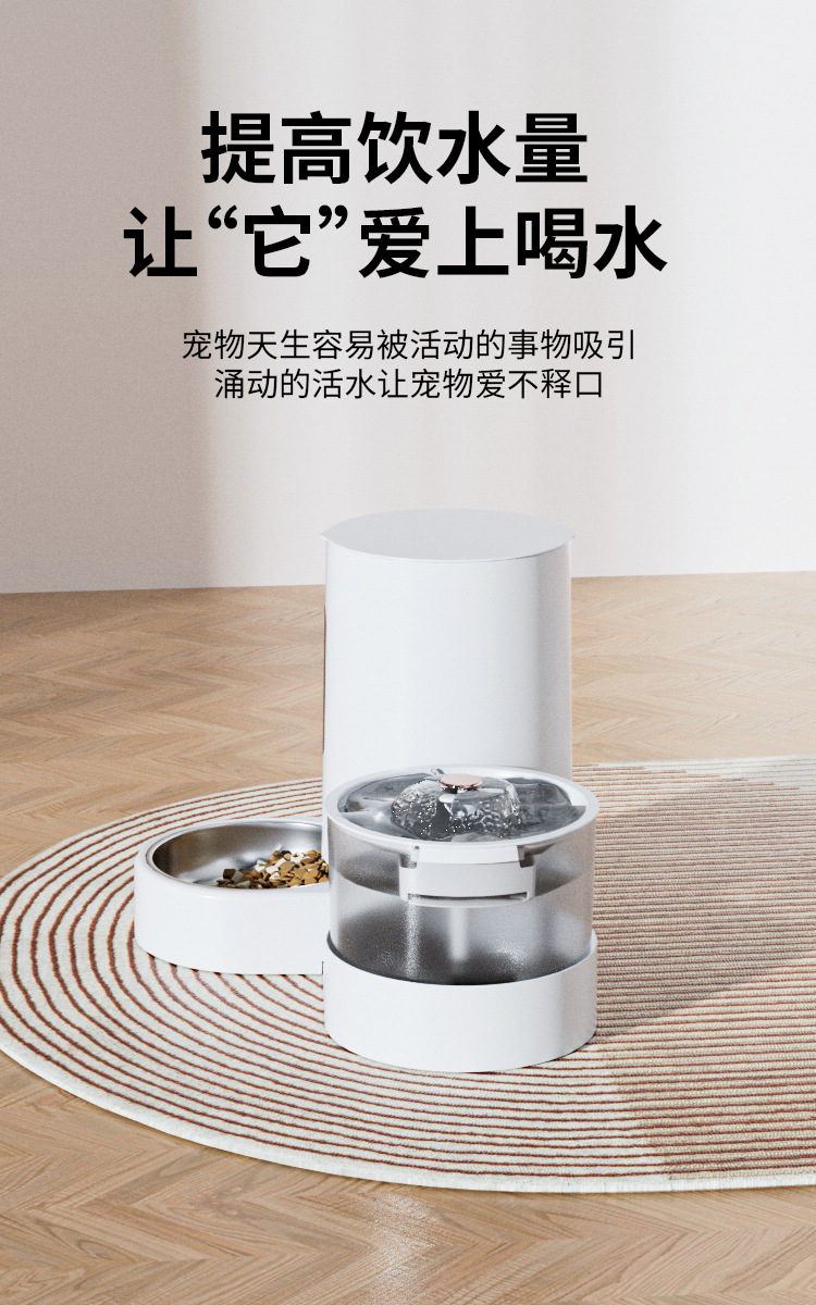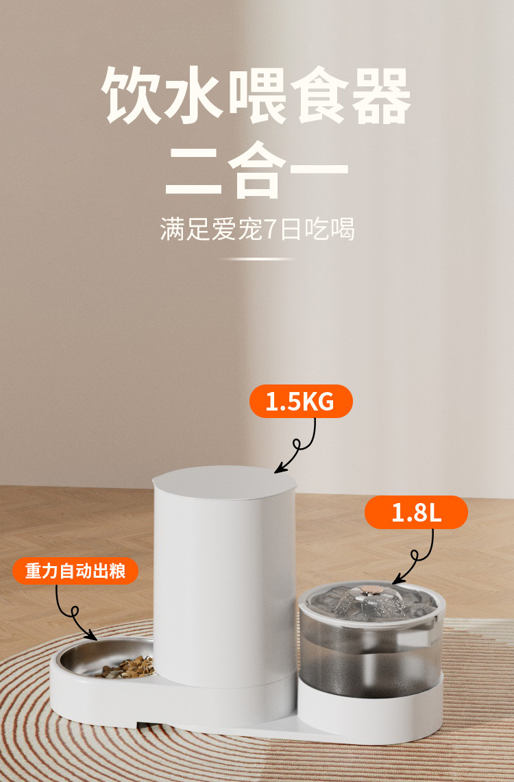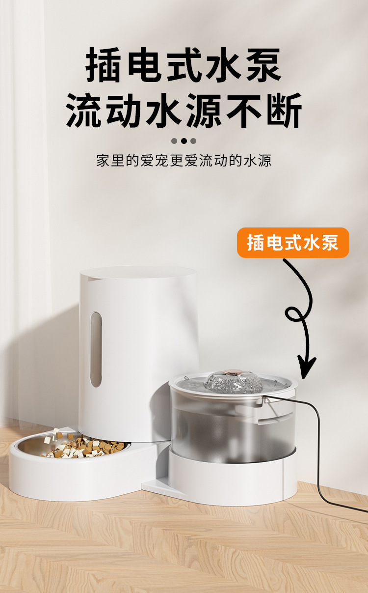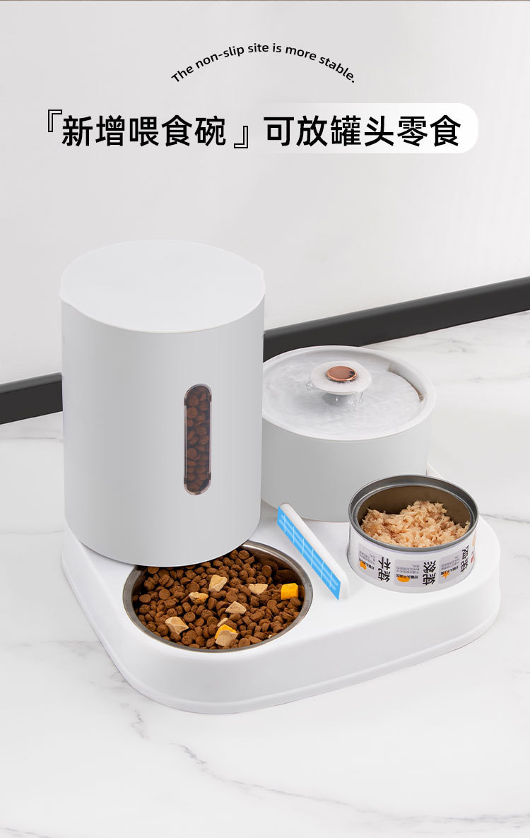 新款新品猫咪自动饮水喂食一体机自动猫狗两用自助猫粮盆狗粮喂水器
