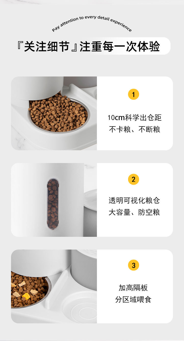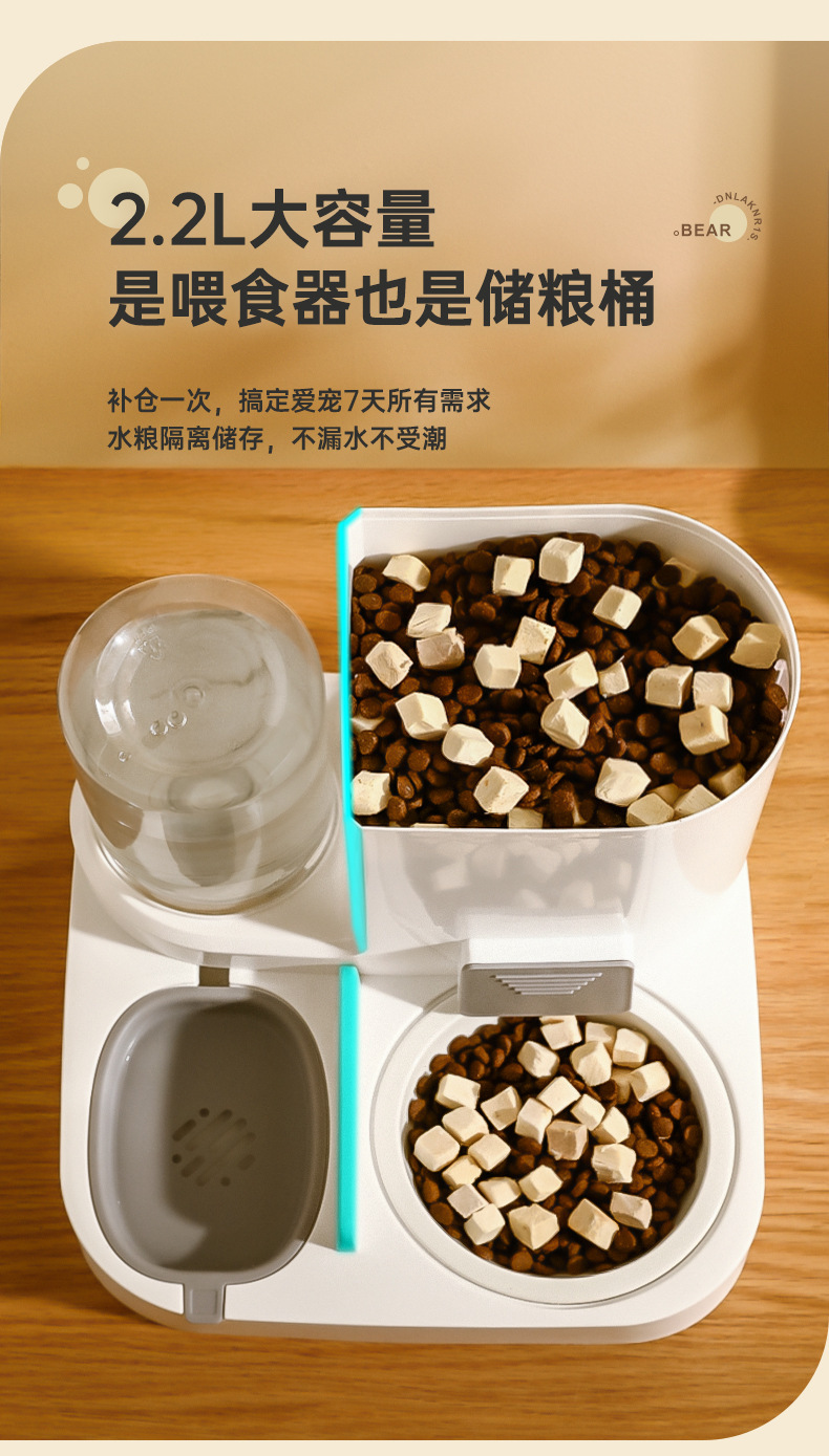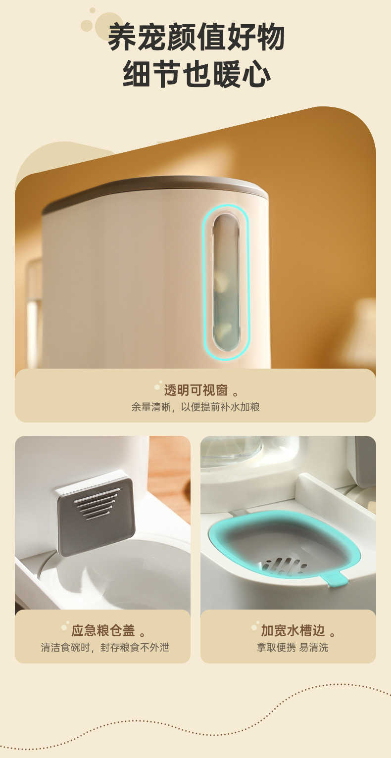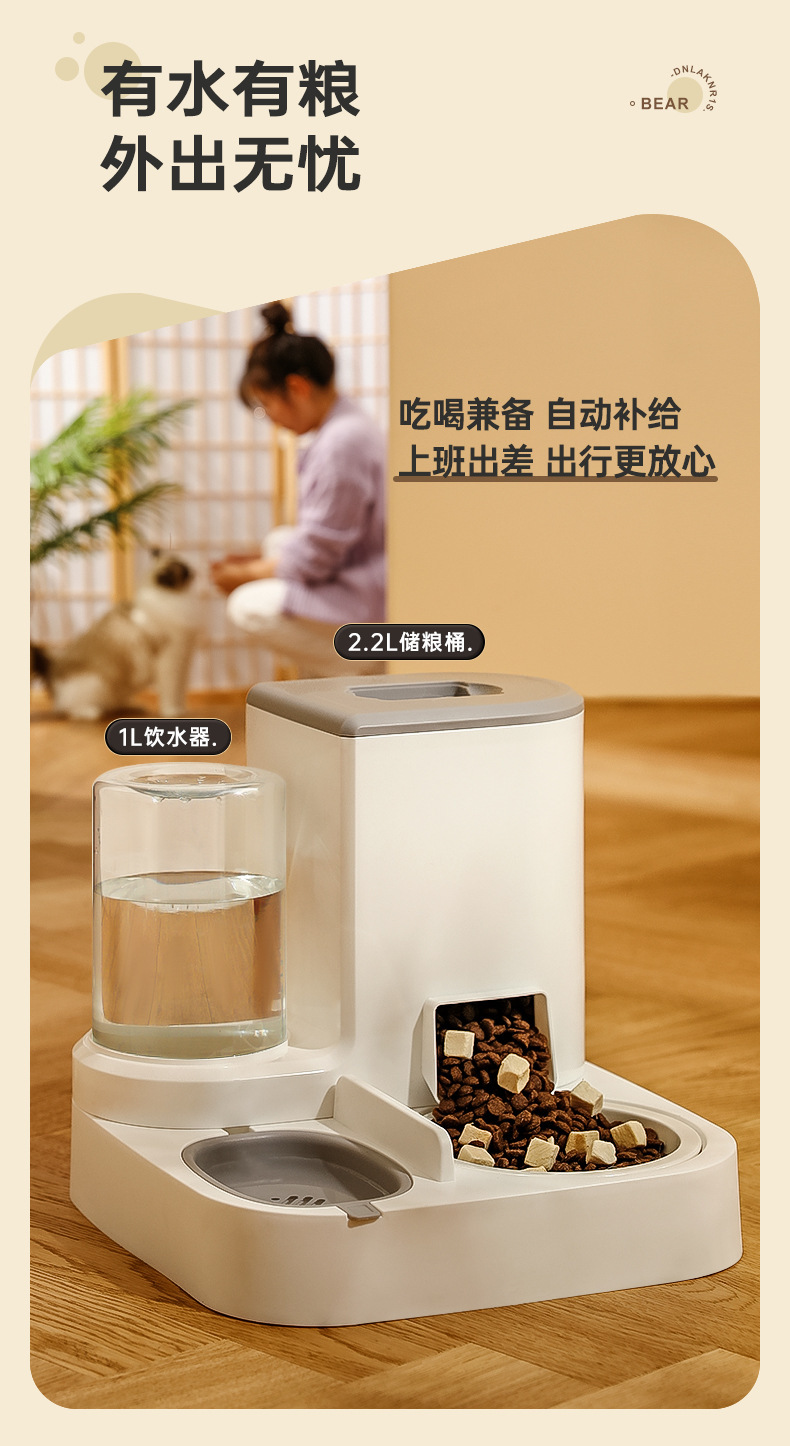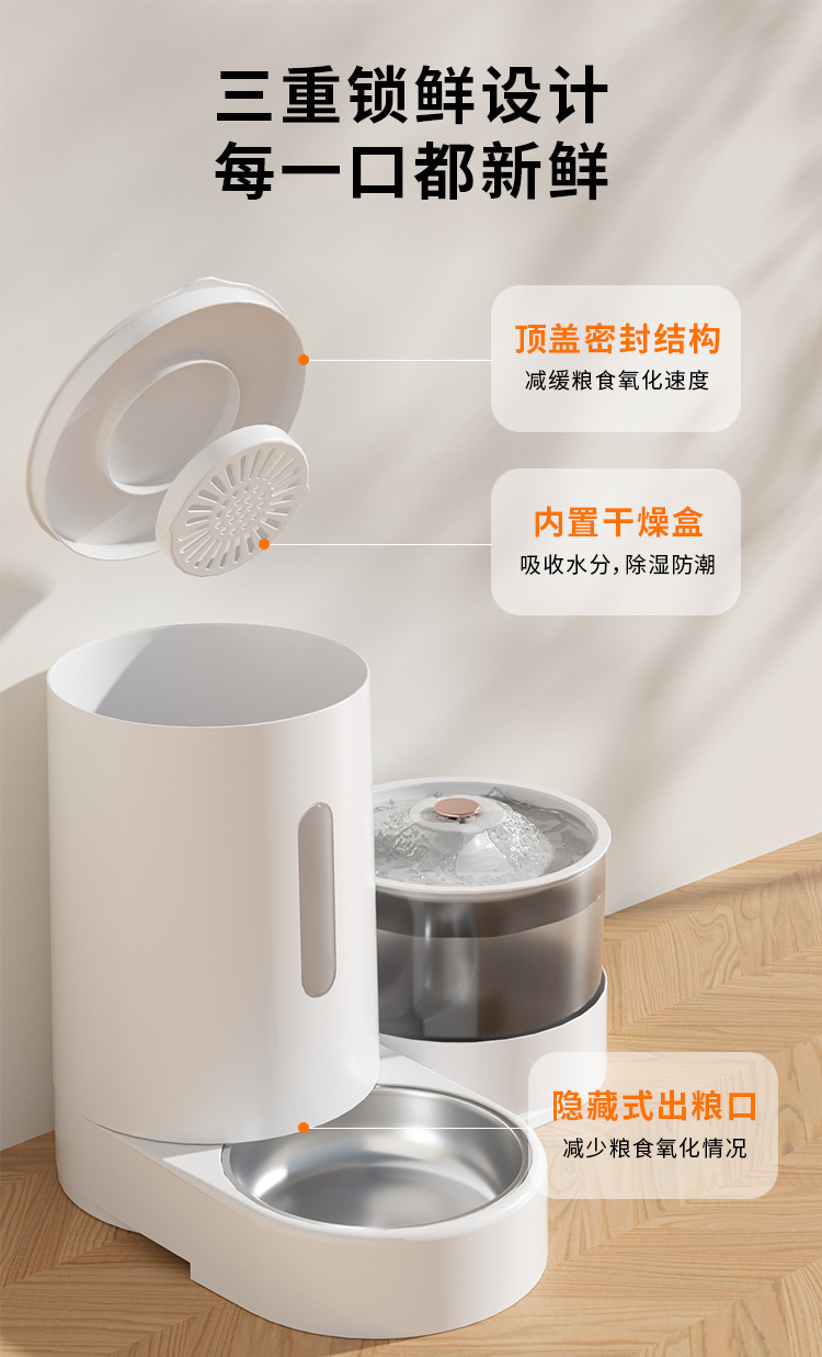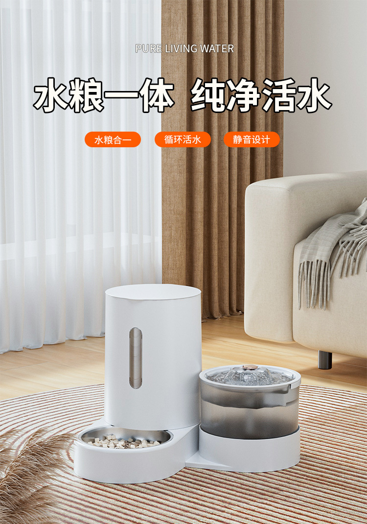 新款新品猫咪自动饮水喂食一体机自动猫狗两用自助猫粮盆狗粮喂水器