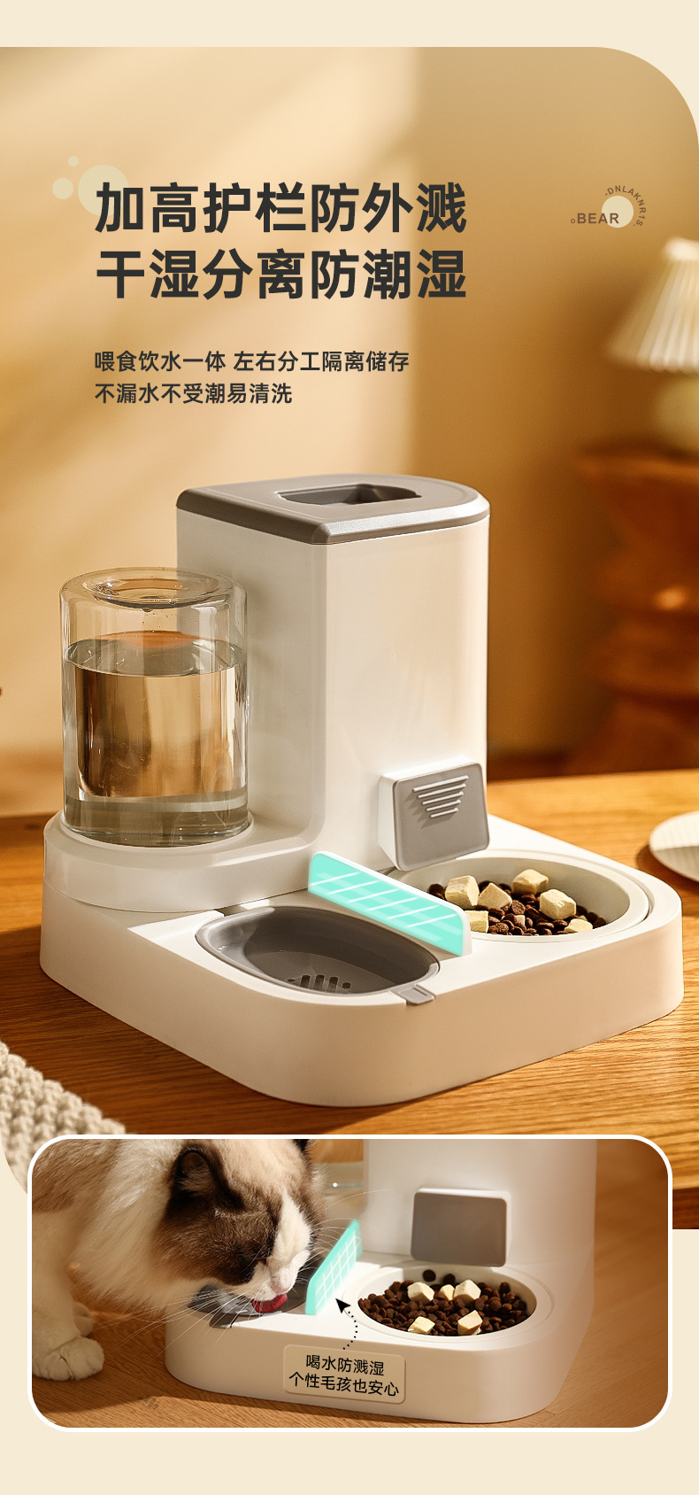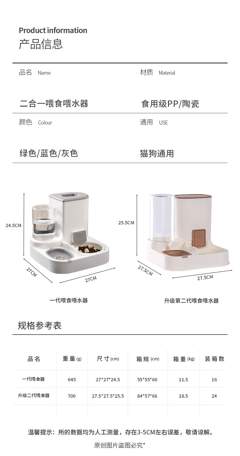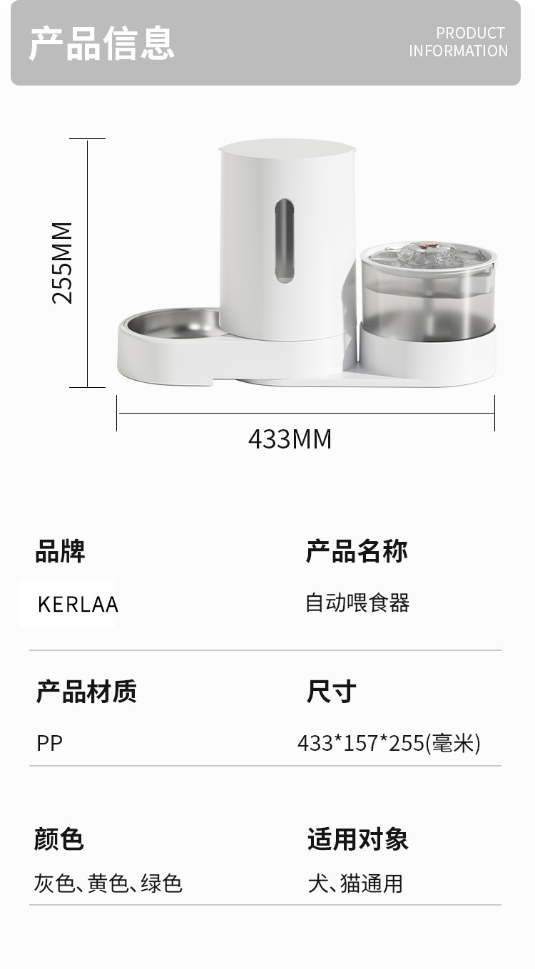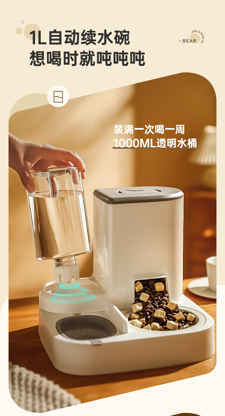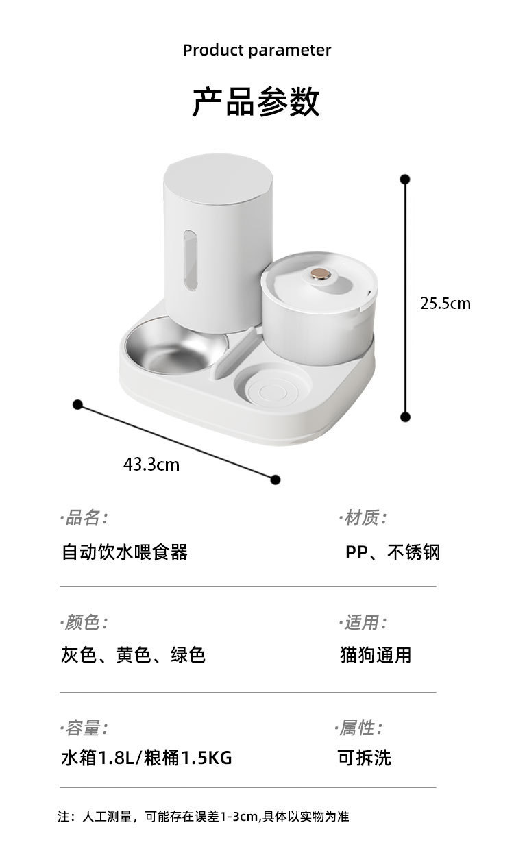新款新品猫咪自动饮水喂食一体机自动猫狗两用自助猫粮盆狗粮喂水器