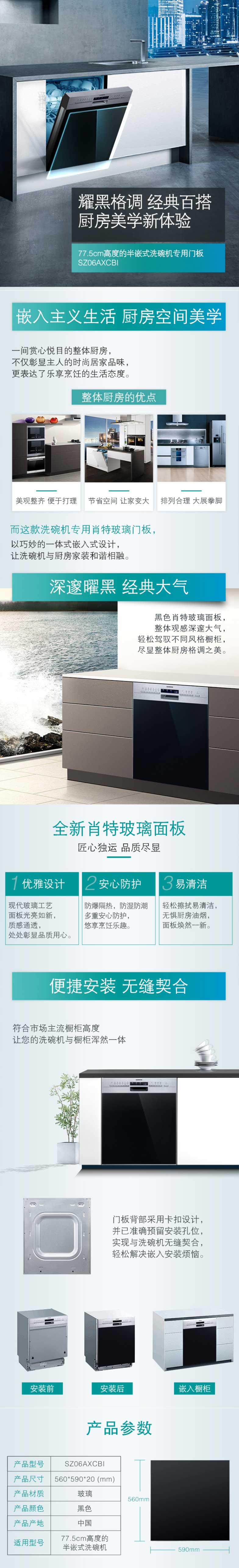 西门子半嵌式洗碗机玻璃门 黑色SZ06AXCBI