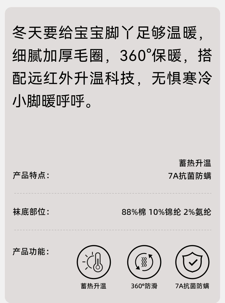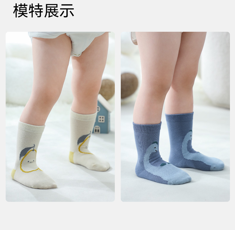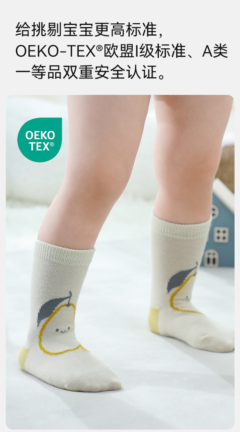 【母婴服配】EMXEE嫚熙儿童袜子婴儿春秋纯棉宝宝袜子毛圈中筒袜