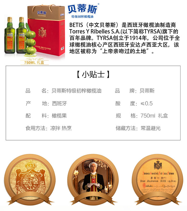 贝蒂斯丨特级初榨橄榄油礼盒 750ml*2瓶