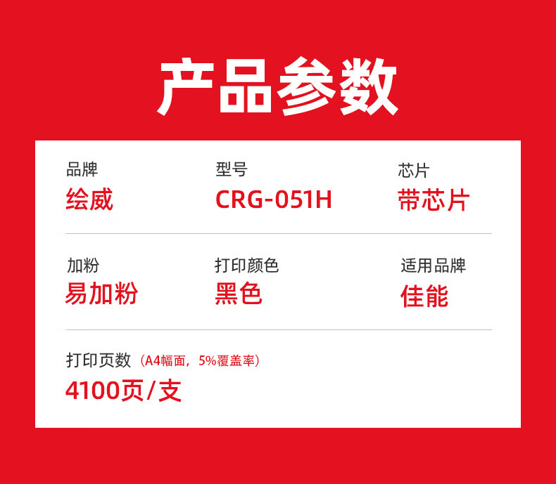 绘威商专 易加粉粉盒CRG-051H 适用佳能 LBP162dw 黑色 1支