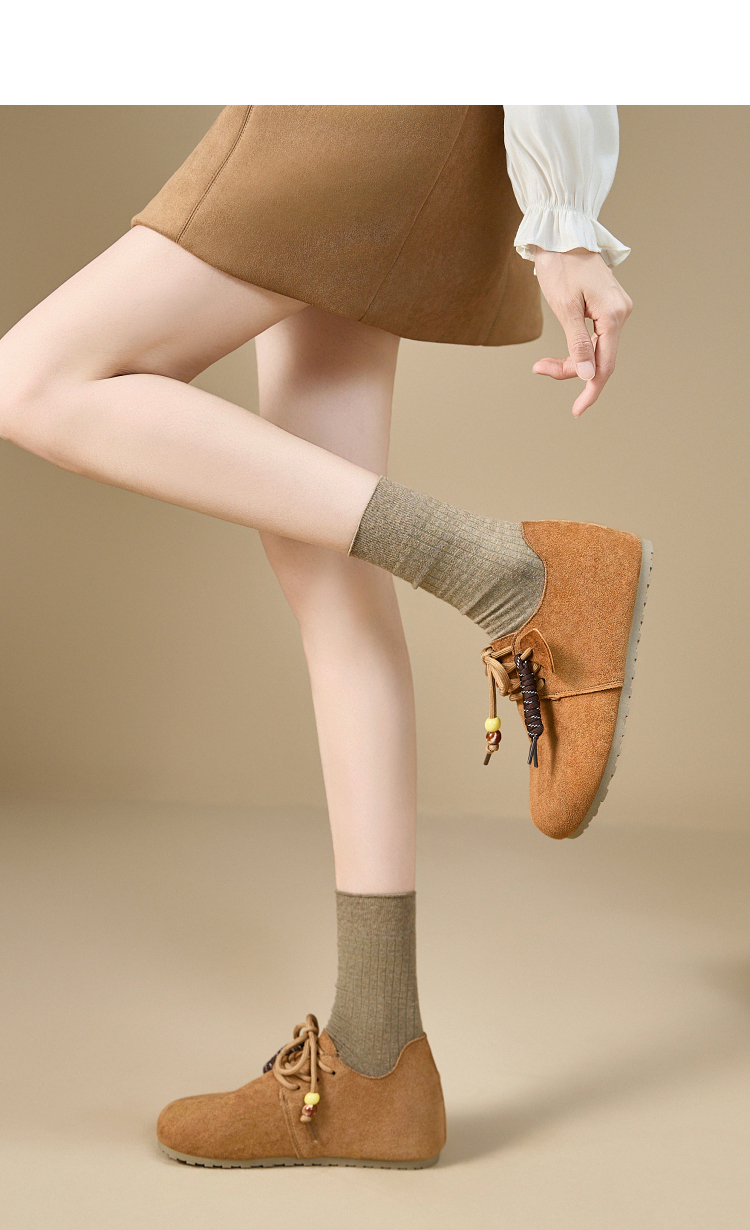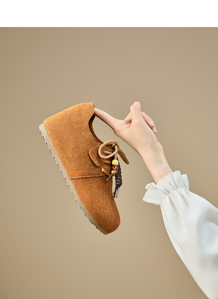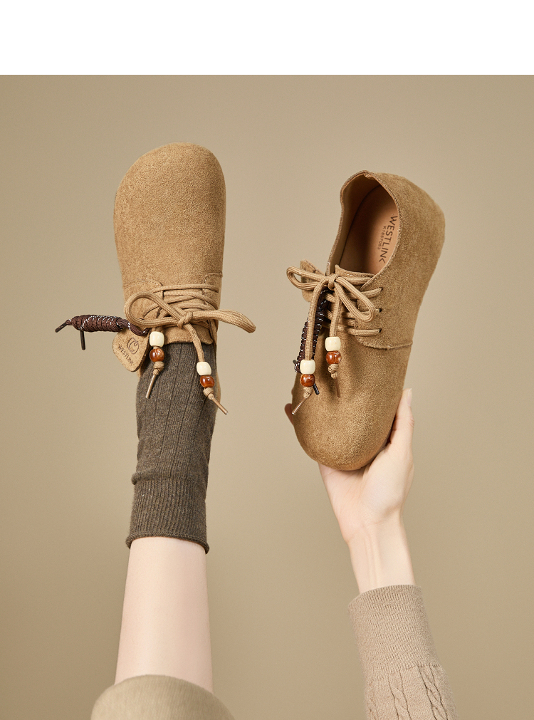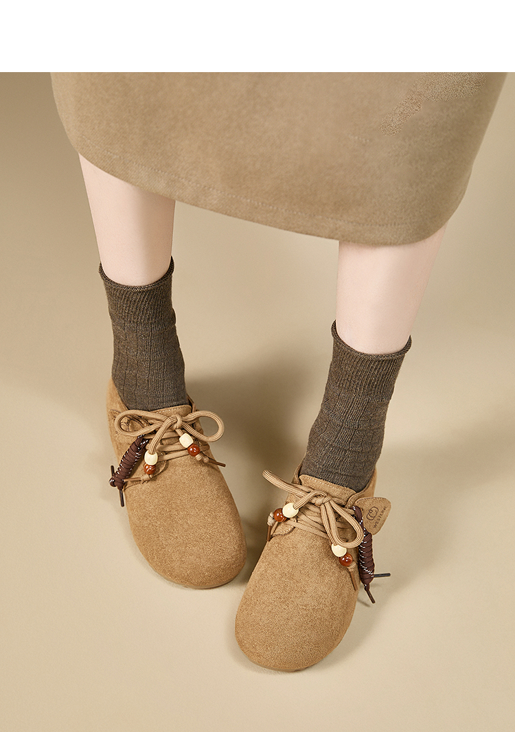 西遇系带勃肯鞋女新款秋季复古丑萌圆头平底乐福鞋软底单鞋K1857053