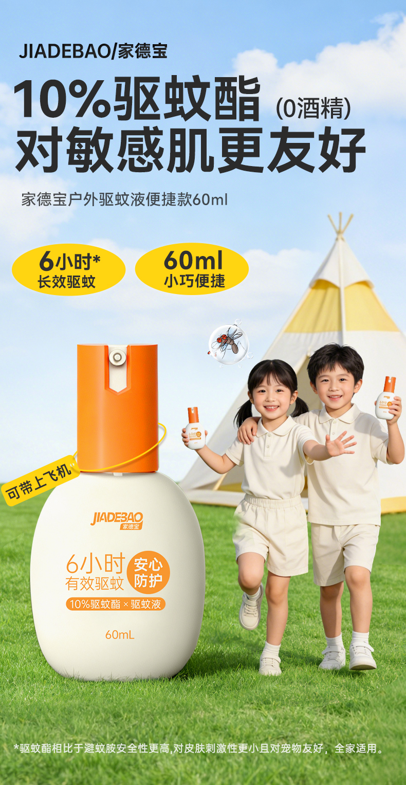 为了让户外撒欢更尽兴,户外活动必带上——家德宝驱蚊液