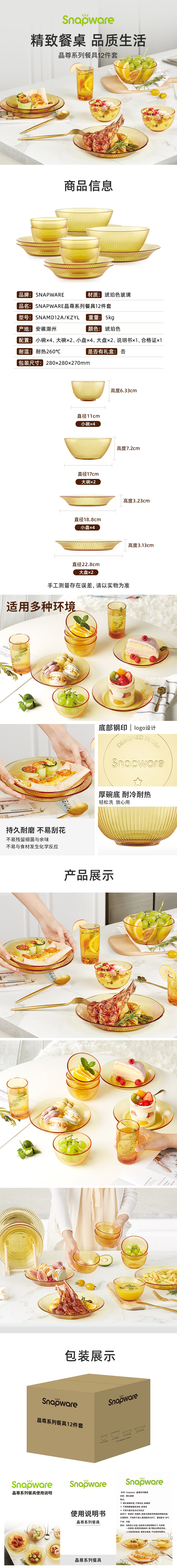 康宁晶尊系列餐具12件套(4个小碗2个大碗4个小盘2个大盘)黄盒