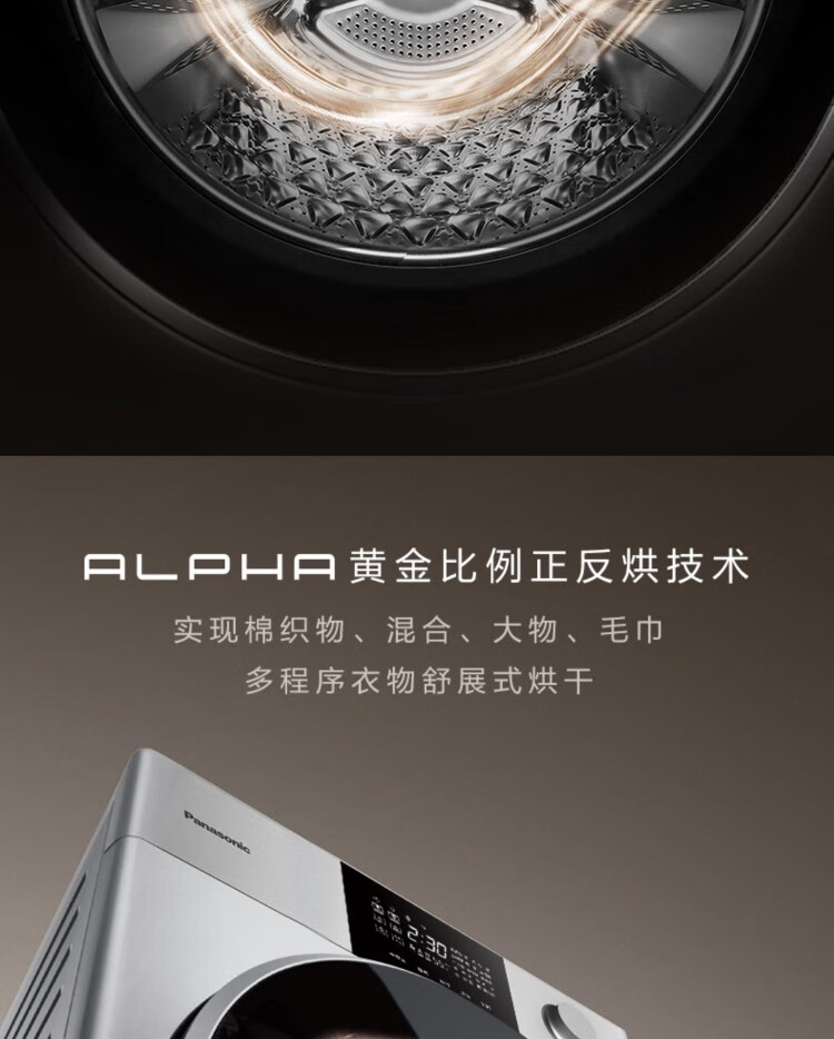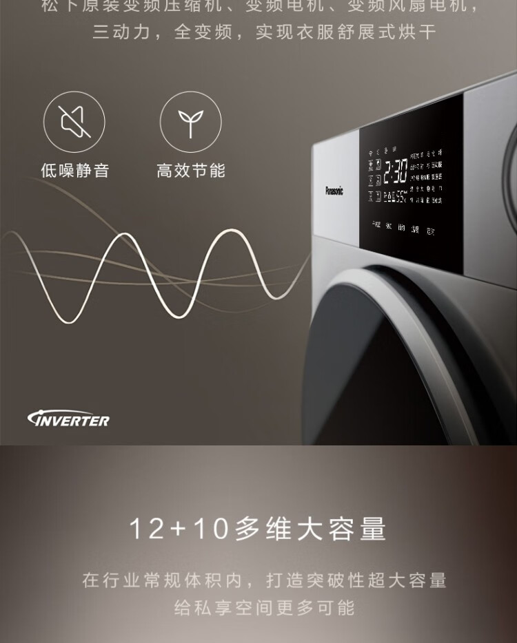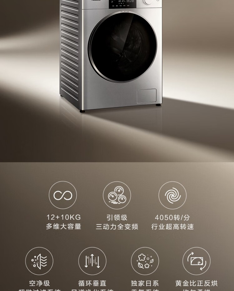 松下(Panasonic)保时捷12+10大容量高端奢护家用洗烘套装热泵柔烘全变频系统FDC-H1+XQG120-P3S