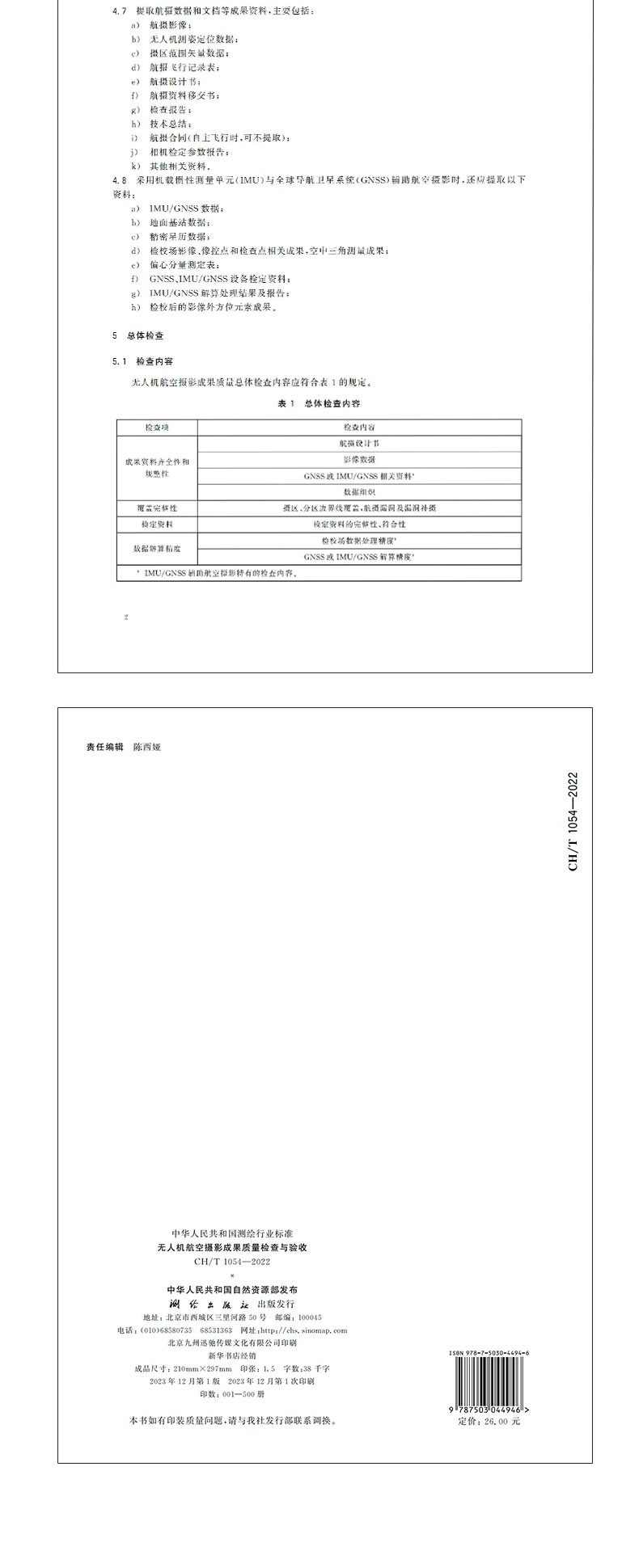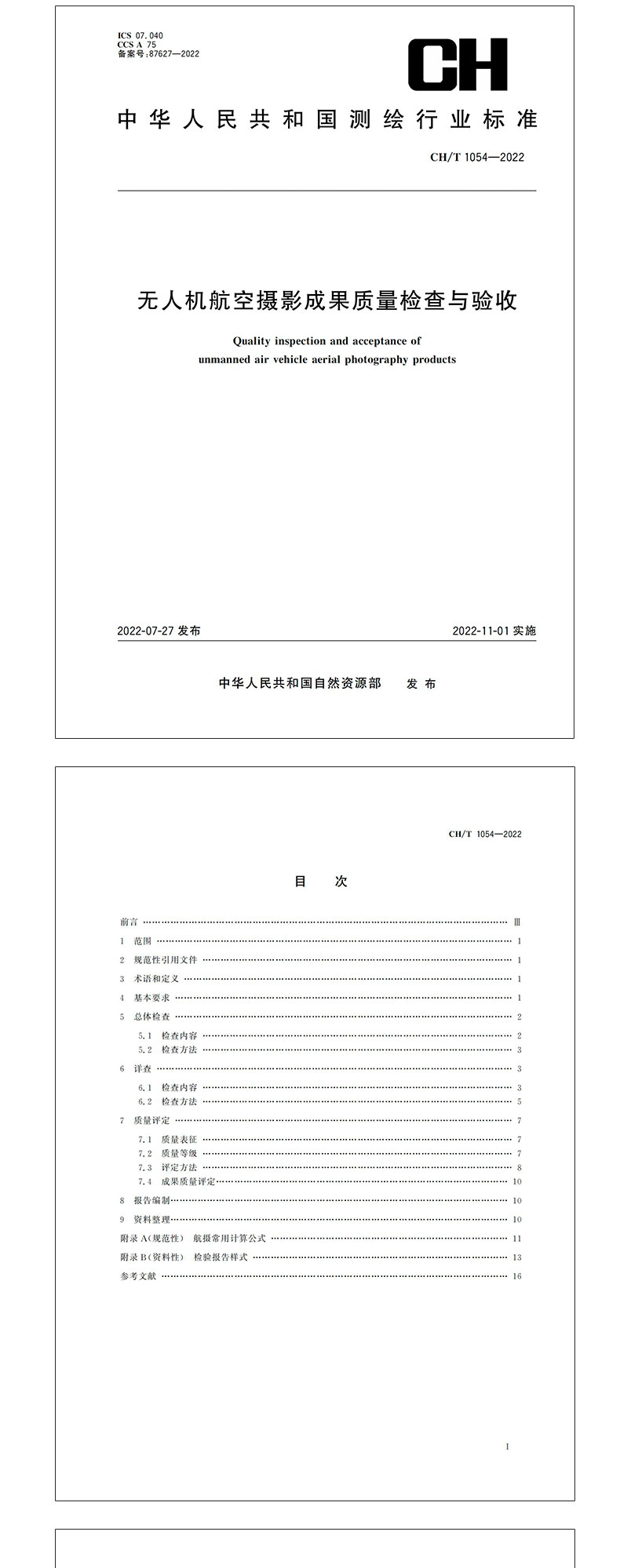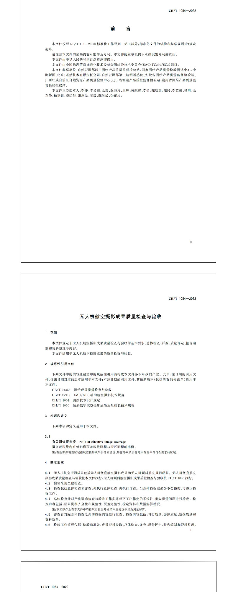 测绘行业标准 无人机航空摄影成果质量检查与验收——CHT 1054—2022