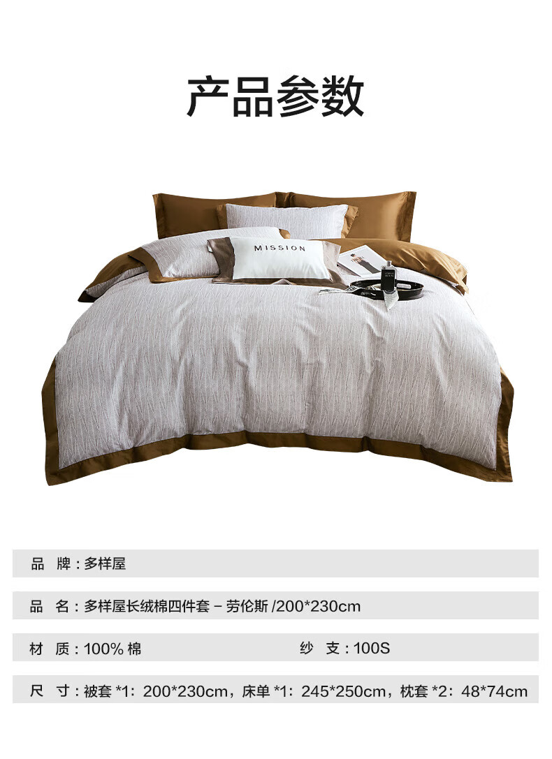 【多样屋专柜】多样屋劳伦斯全棉四件套床单被套被罩纯棉双人枕头套 200*230cm