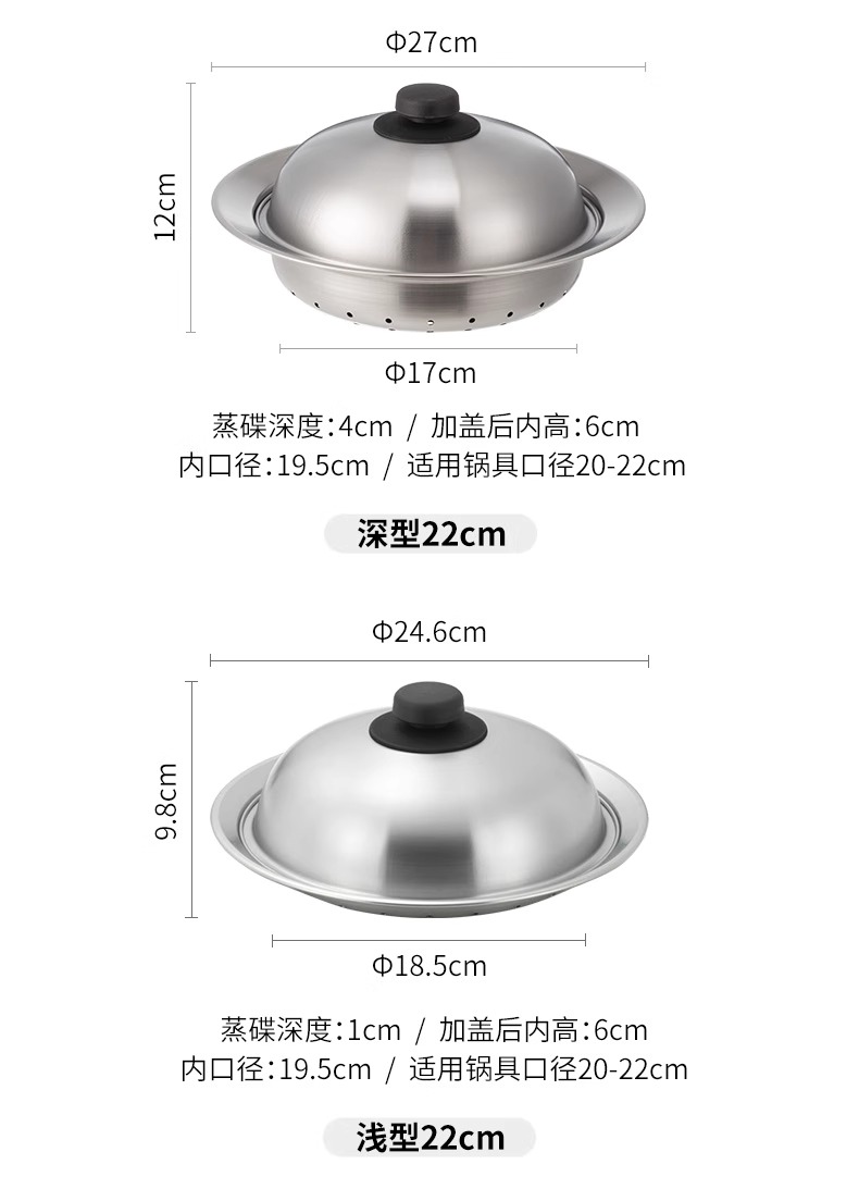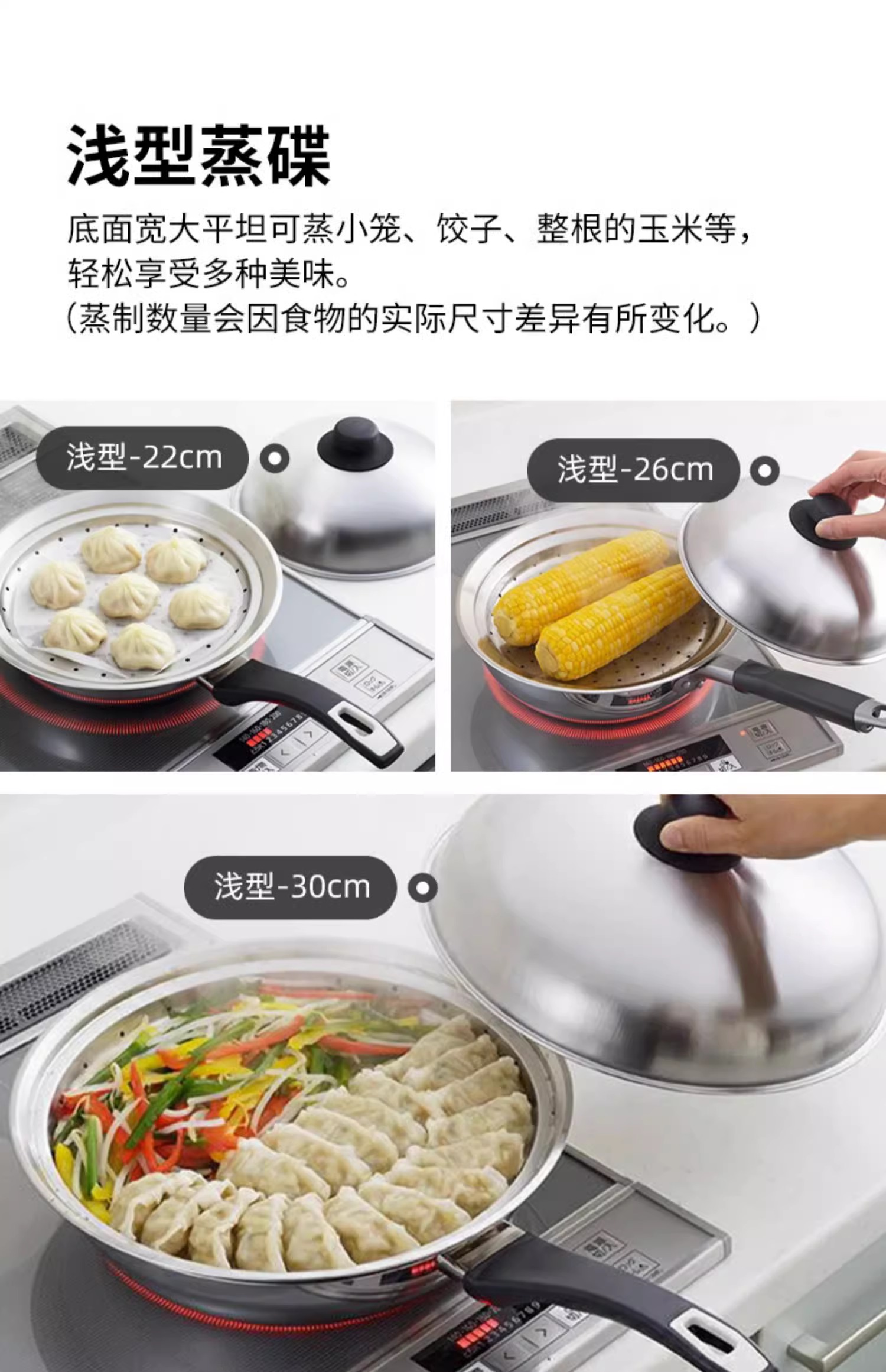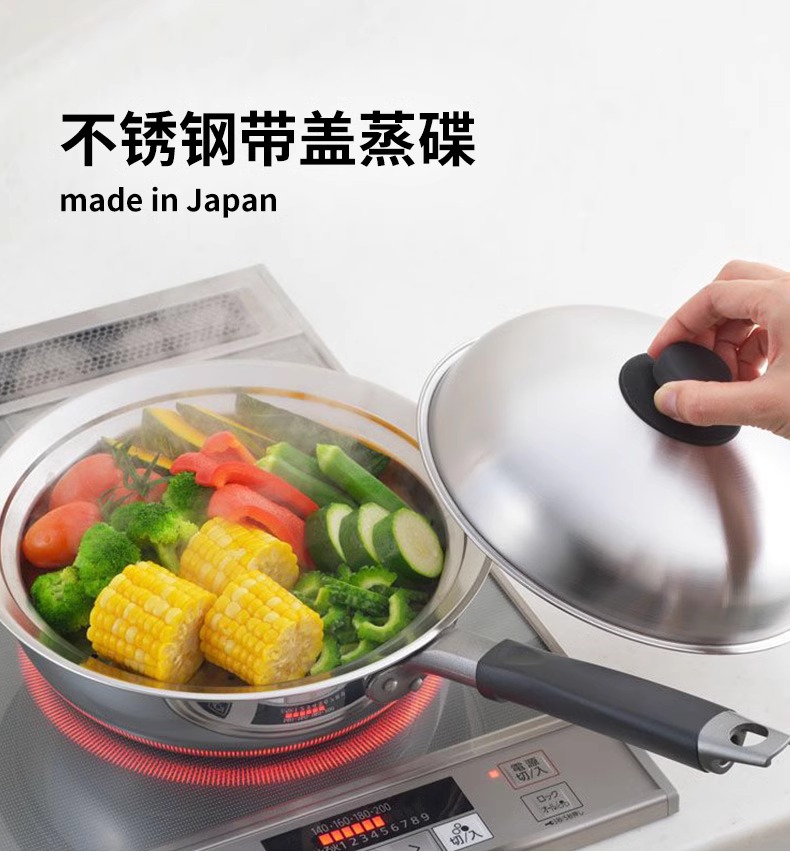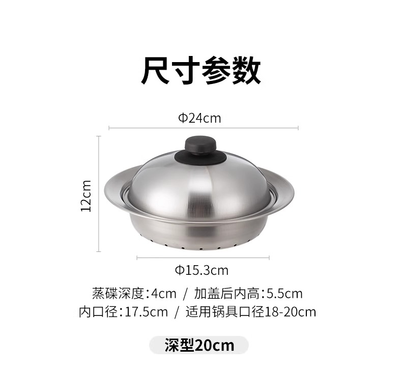 吉川日本进口雪平锅蒸笼304不锈钢蒸架厨房圆形蒸盘20CM-22CM