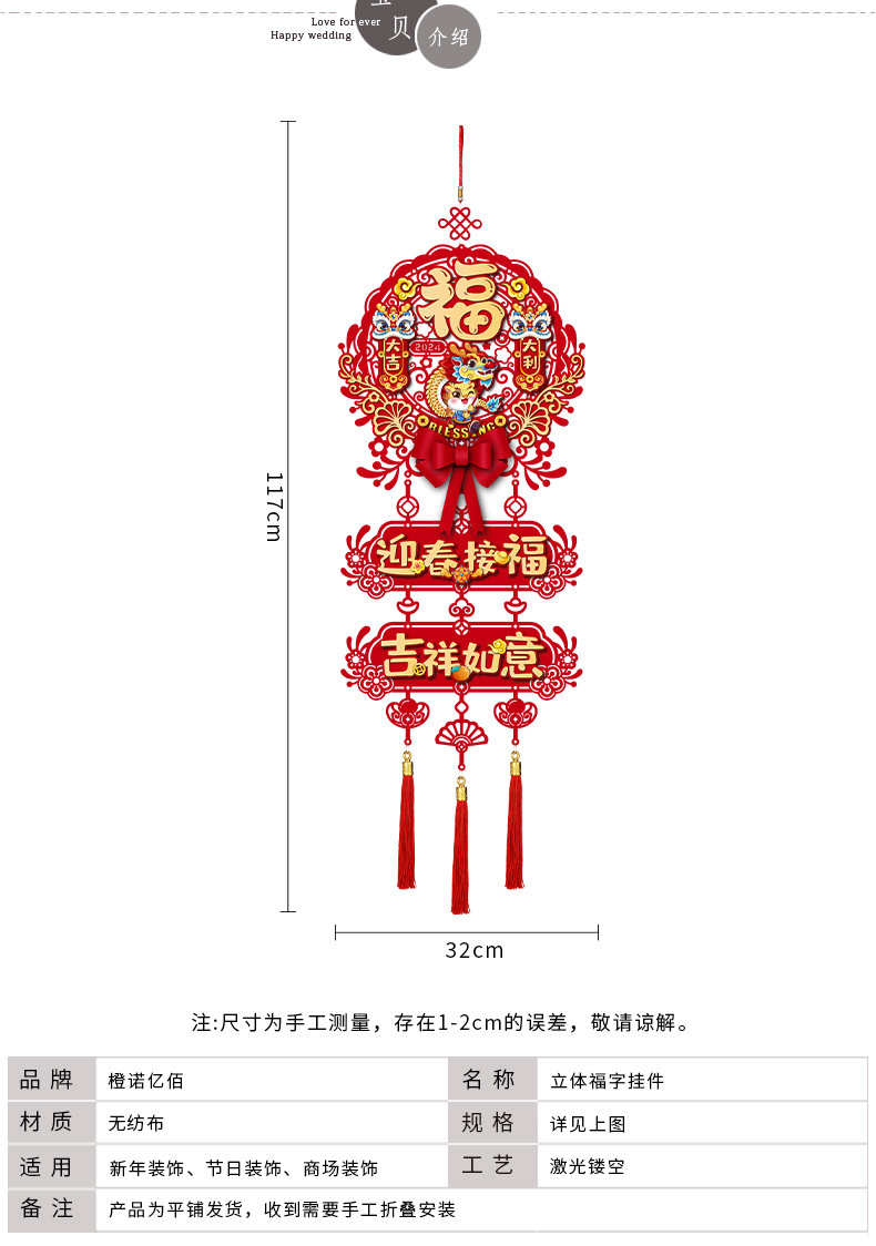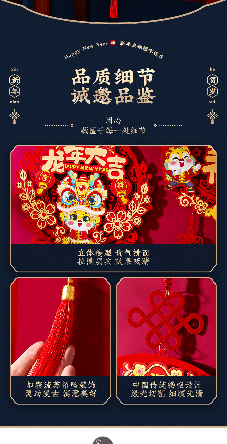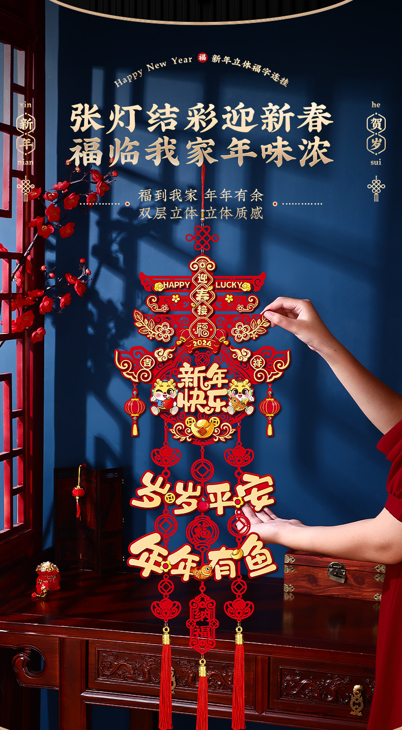 「数款可选!龙年新款挂饰」2024过年新年装饰福字挂件 龙年新款客厅门贴布置春节用品年货家居饰品挂饰