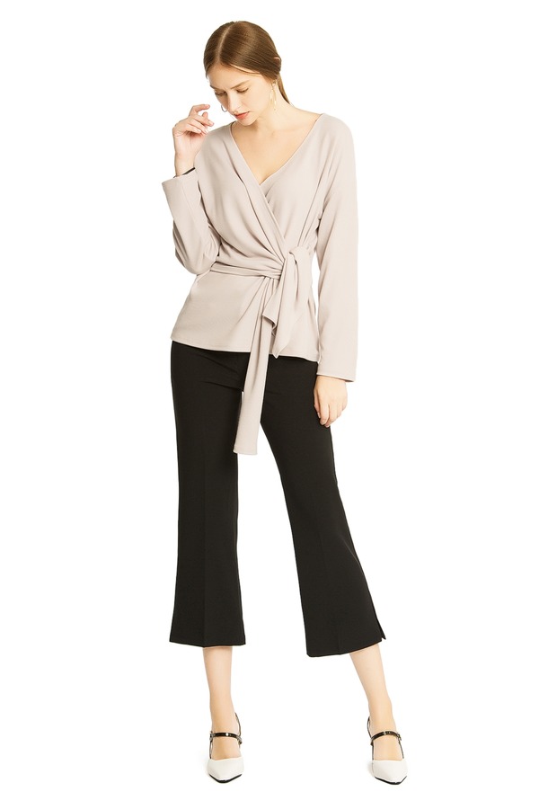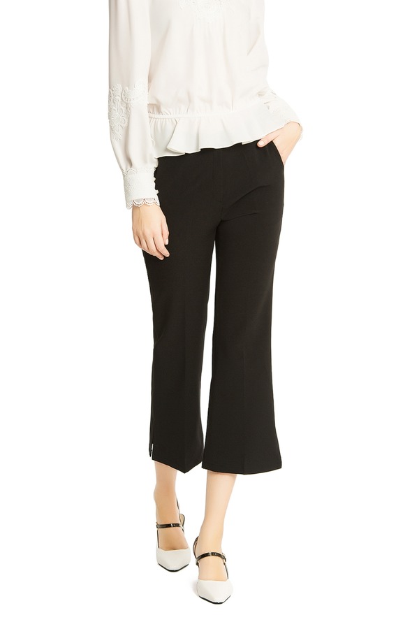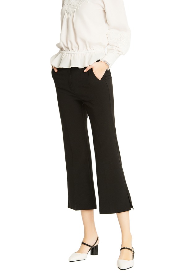 OCTAVIA 黑色开衩九分喇叭裤 1649