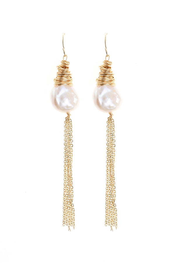 OUDAL奥黛儿 异形绕线珍珠流苏耳环 3536