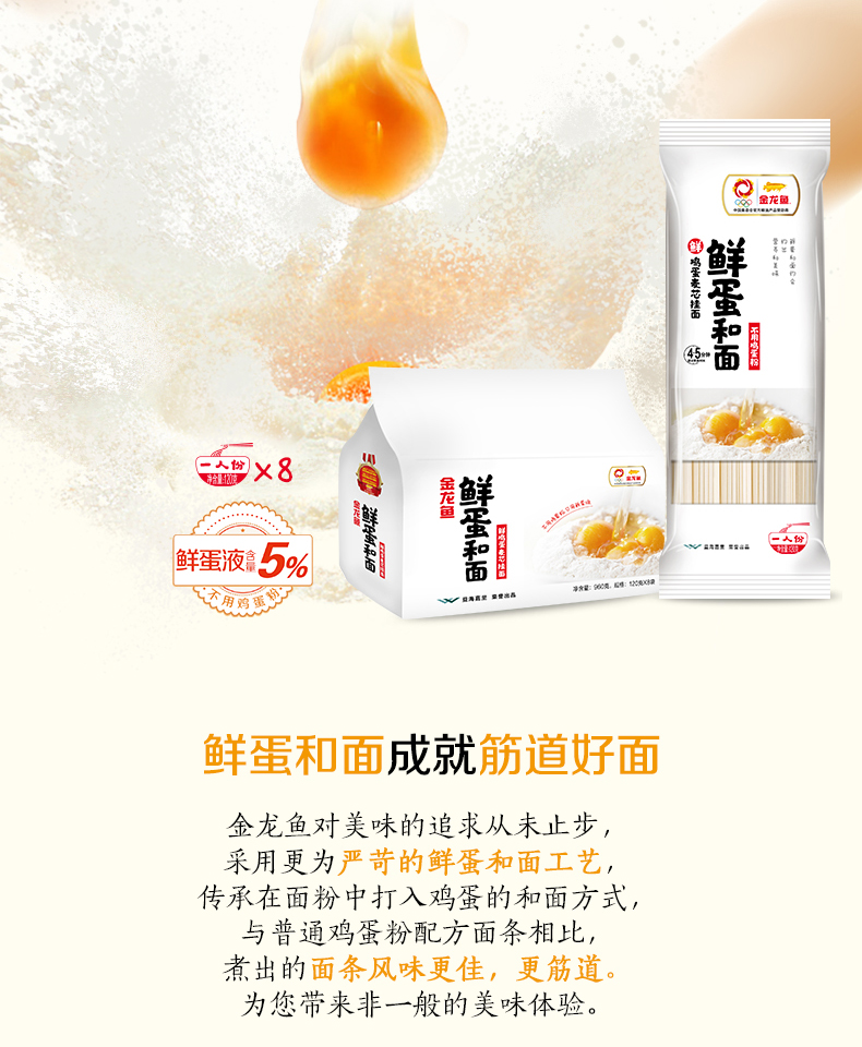 「10袋装!鲜蛋和面」金龙鱼麦芯挂面 鸡蛋面 120g原味小包装宿舍方便面速食米面粮油
