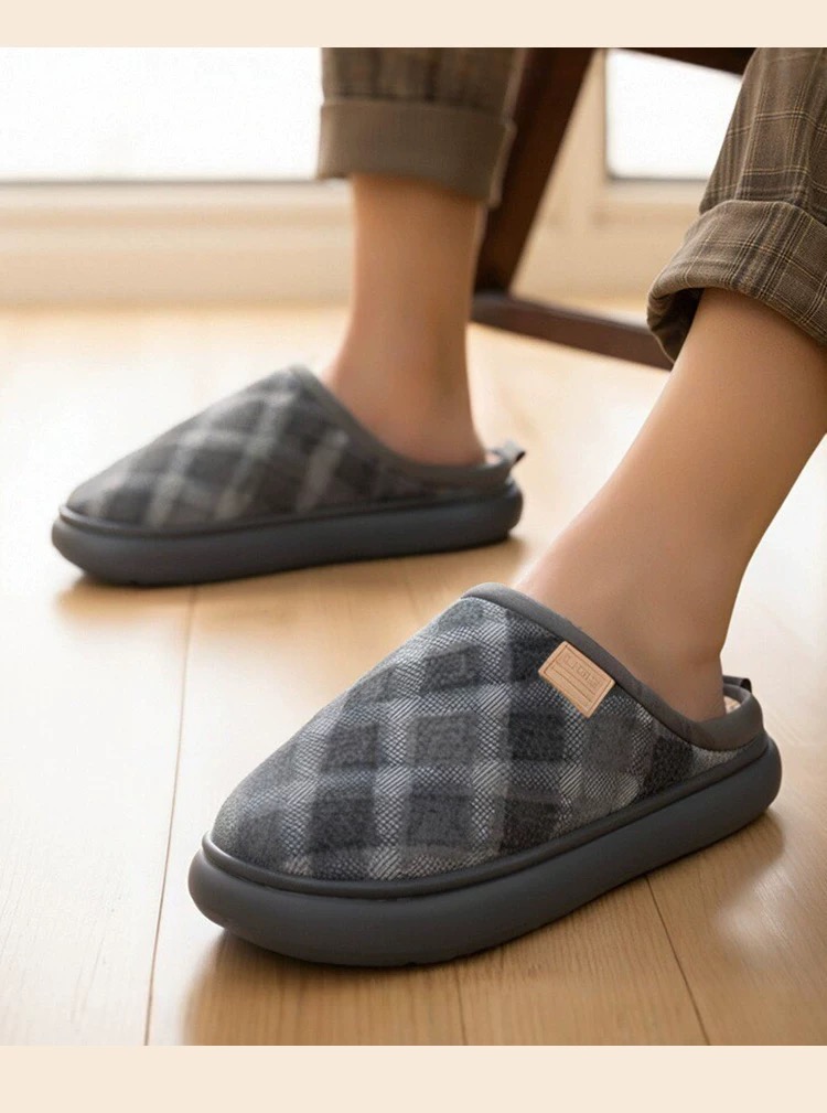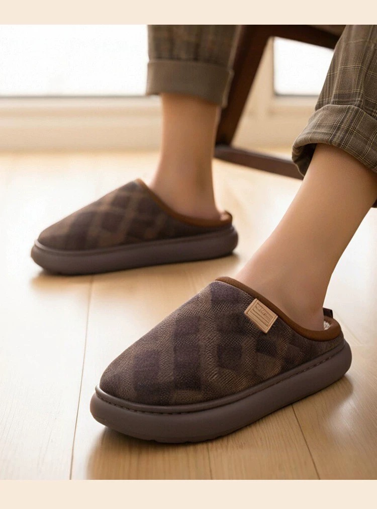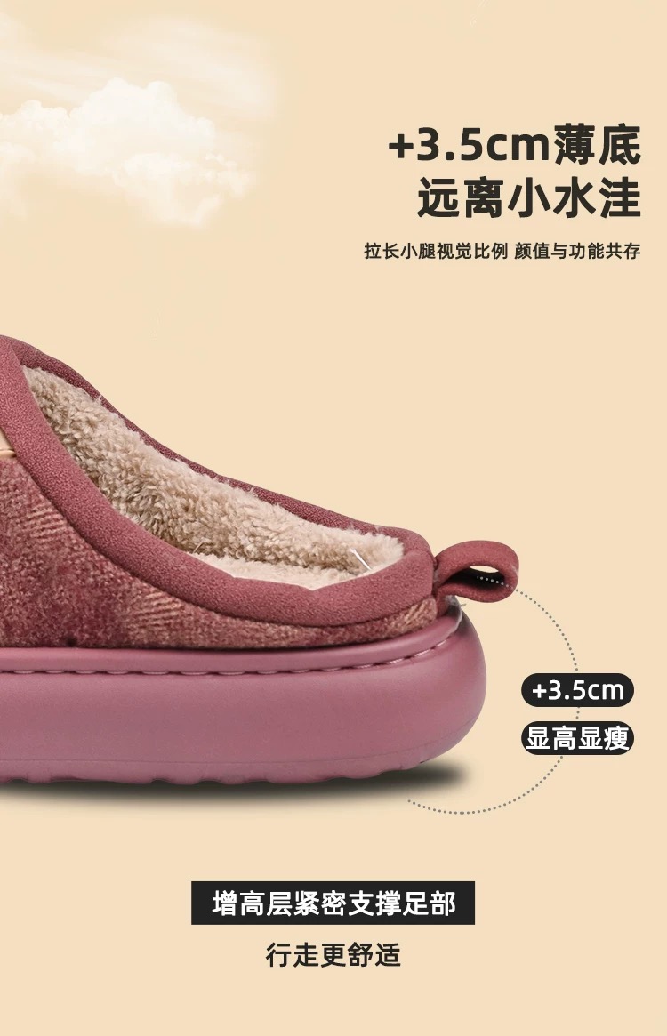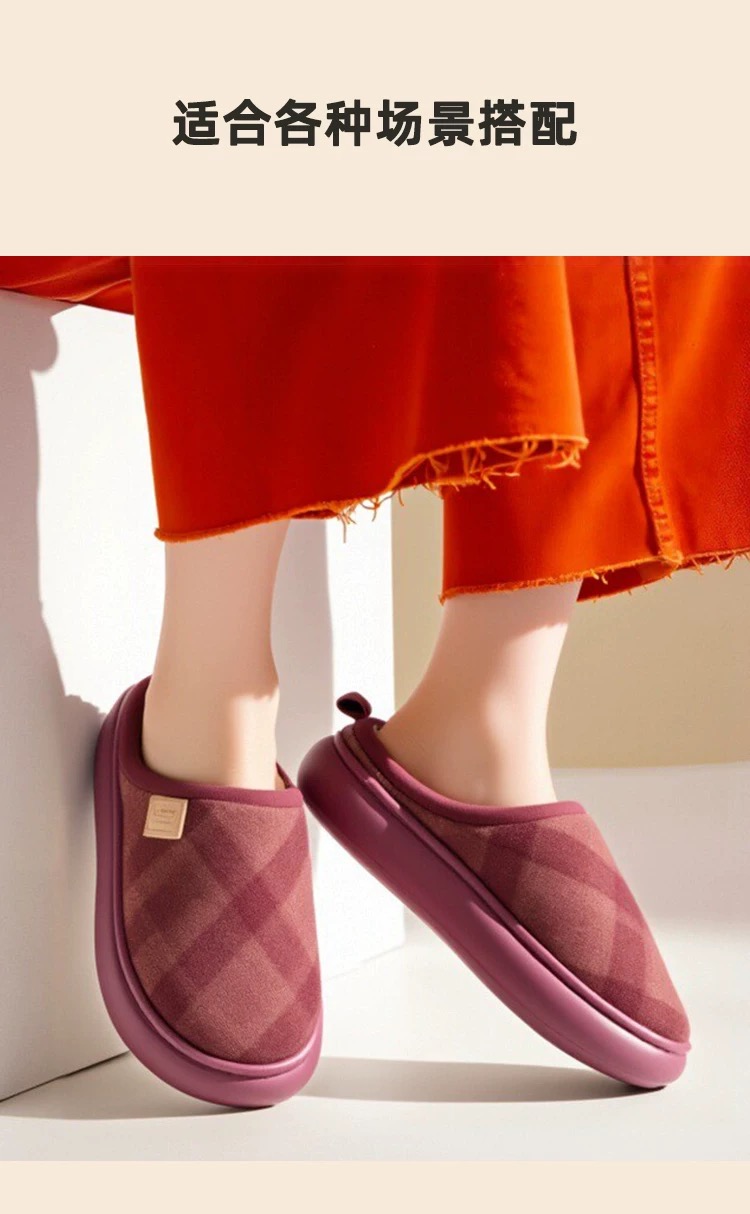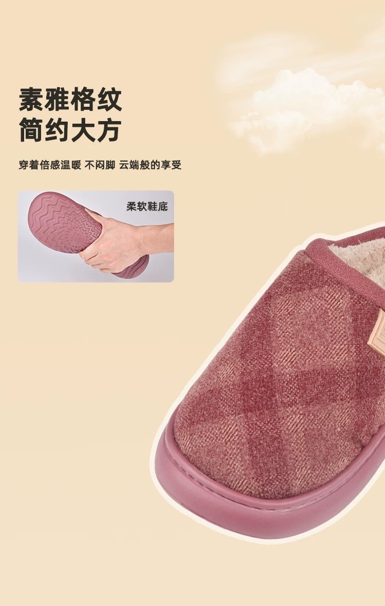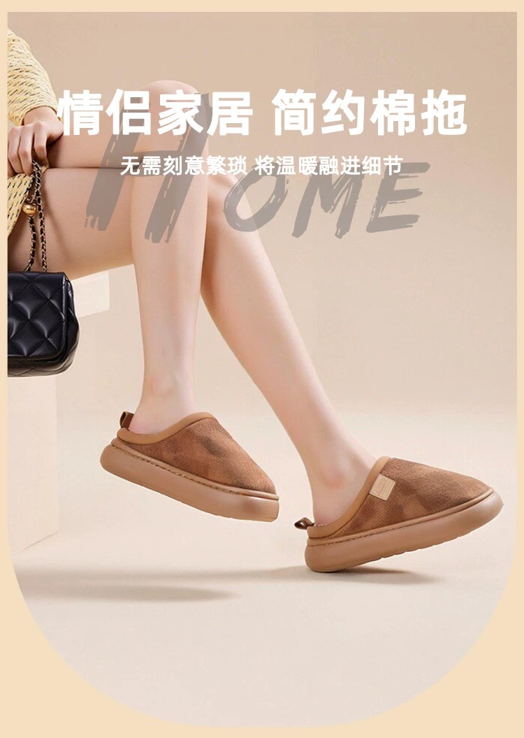 简约棉拖鞋女冬棉拖毛绒保暖厚底高弹柔软室内情侣棉拖鞋男鞋【WG25105W/M】