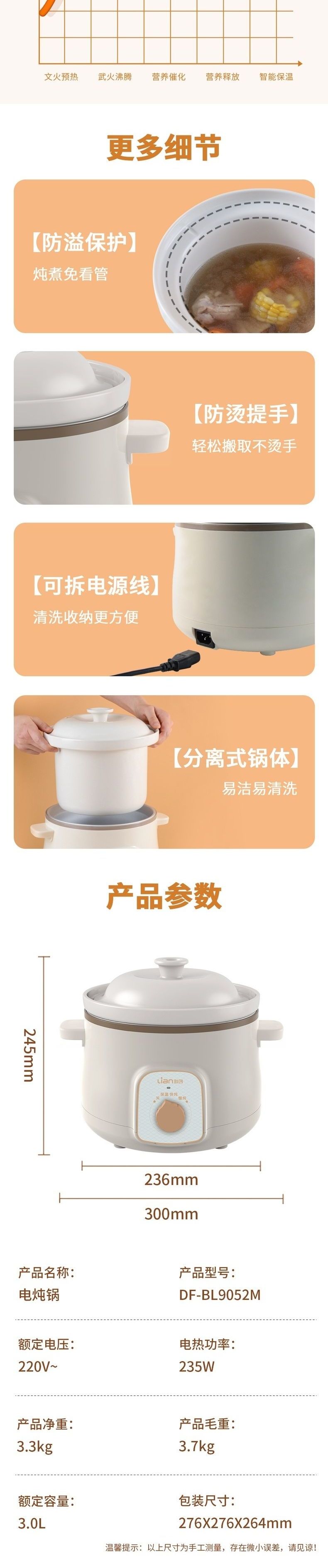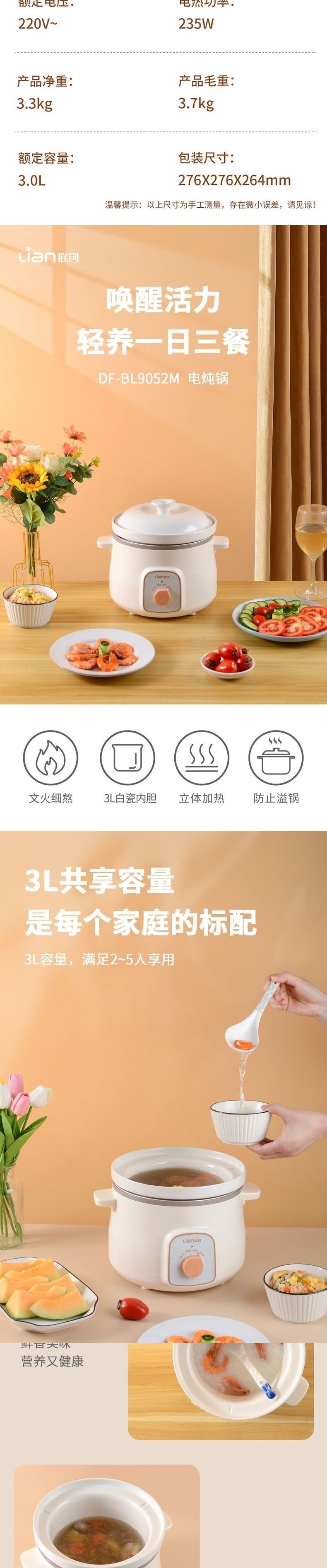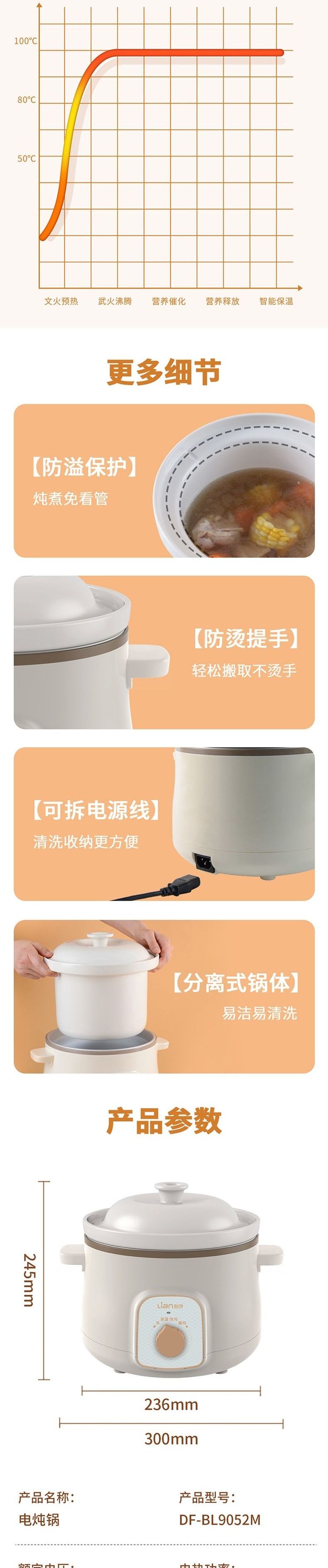 联创 电炖锅 DF-BL9052M 陶瓷炖汤锅宝宝辅食锅慢炖锅