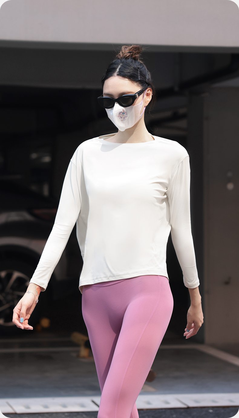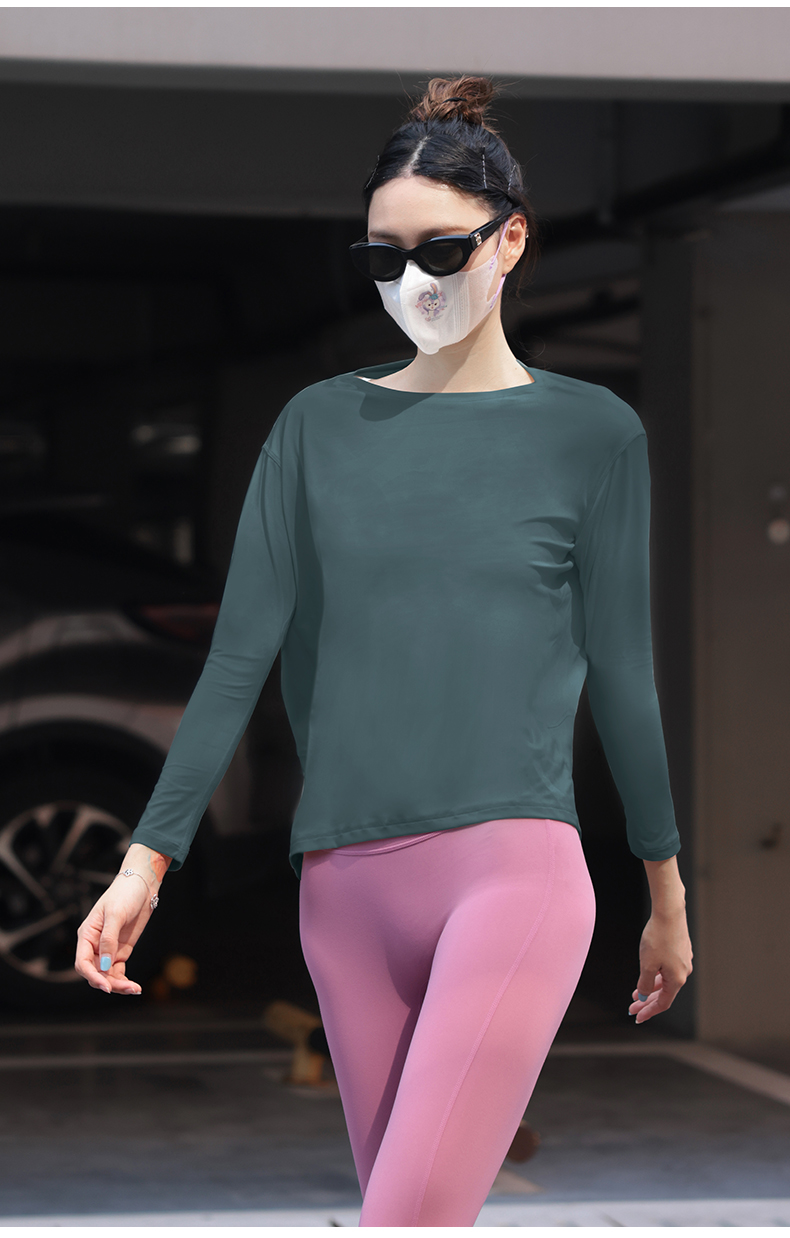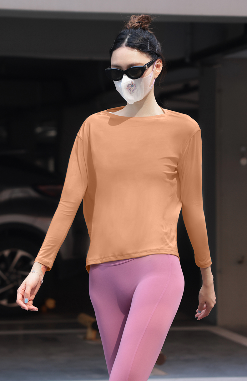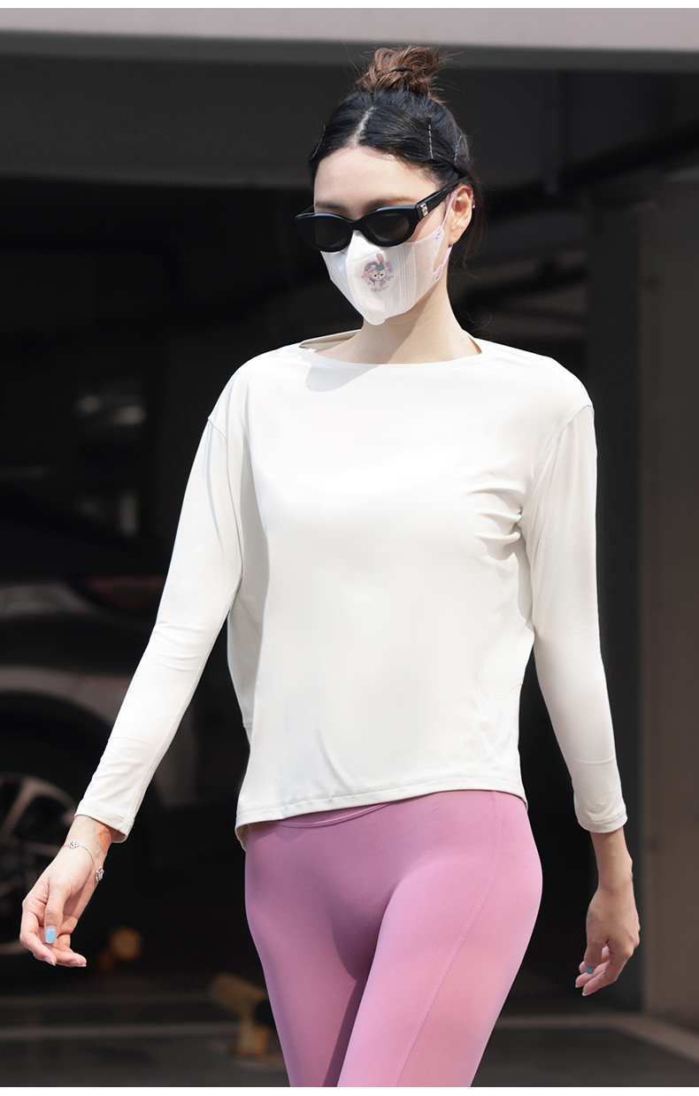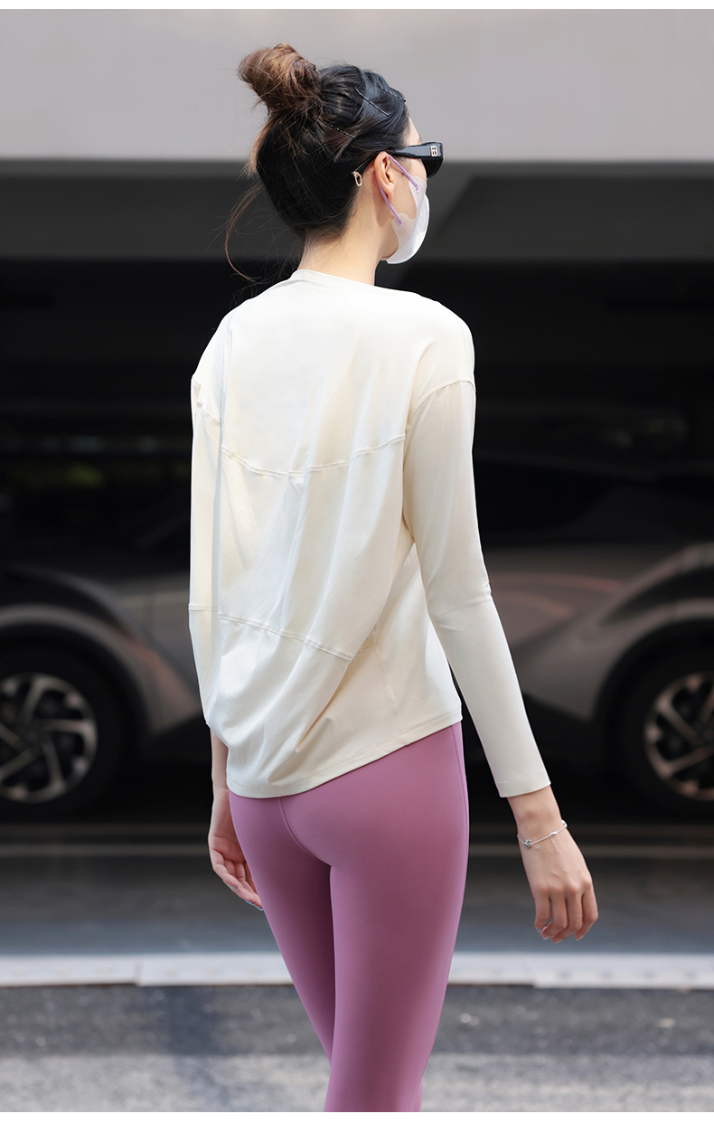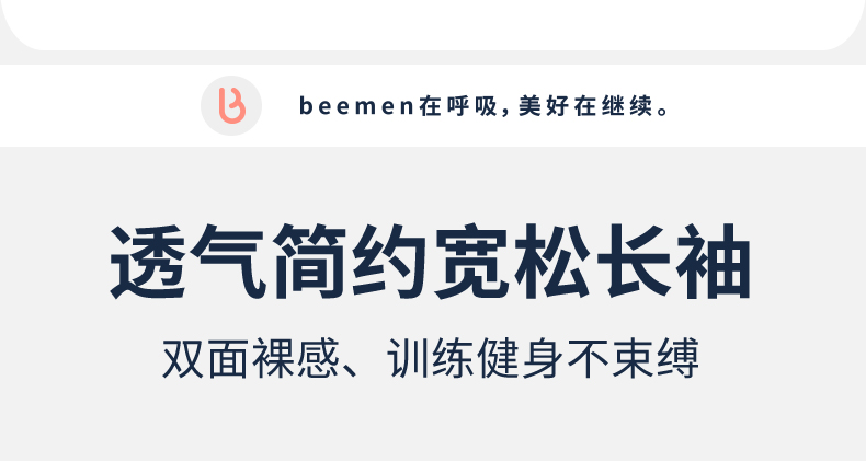 beemen双面裸感宽松长袖女修身透气简约健身瑜伽服