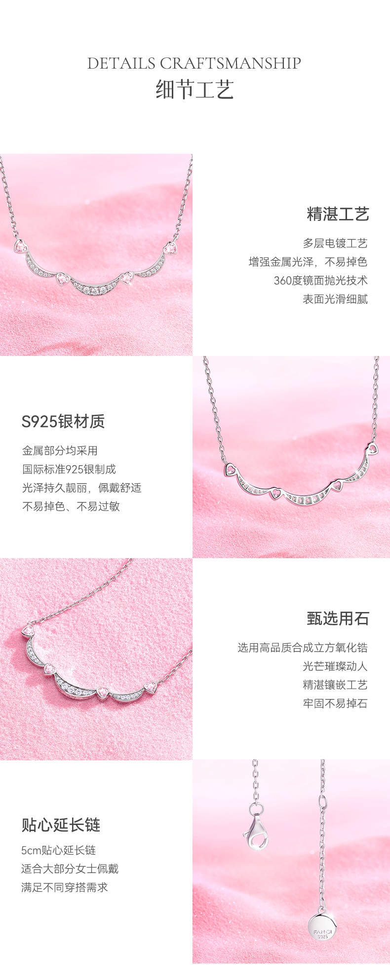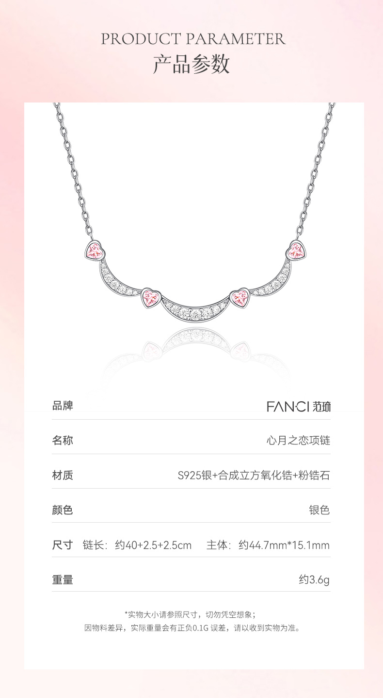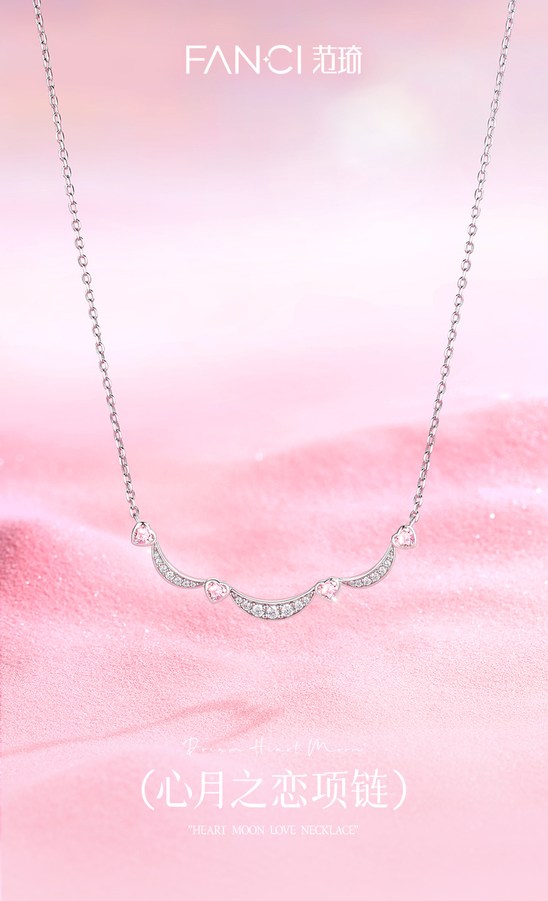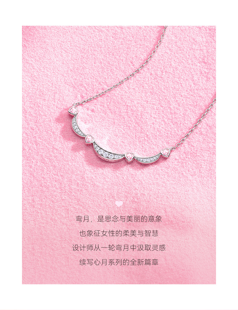 【心月之恋项链 粉银款】Fanci银饰 幻梦心月系列 生日礼物送女友