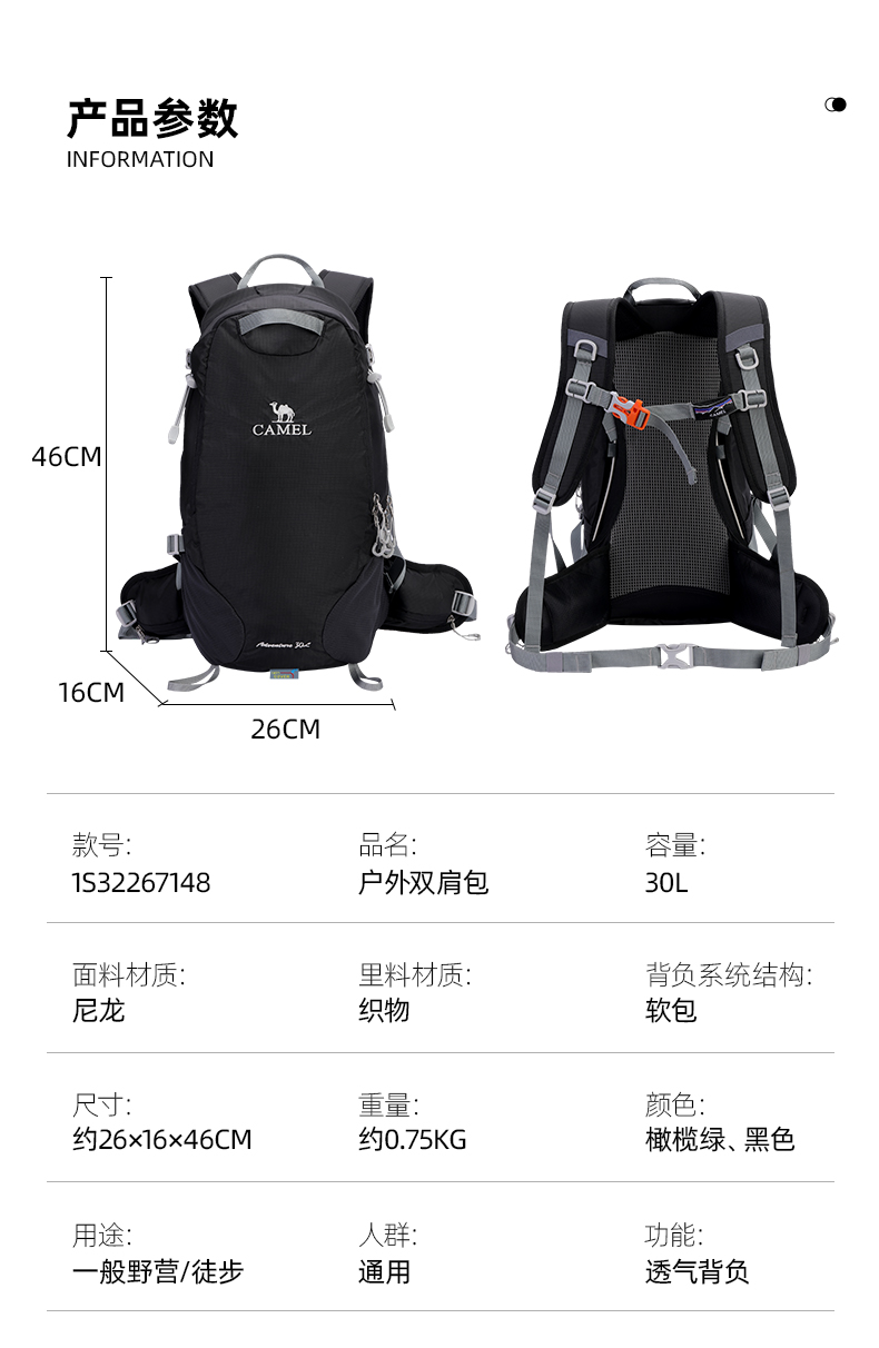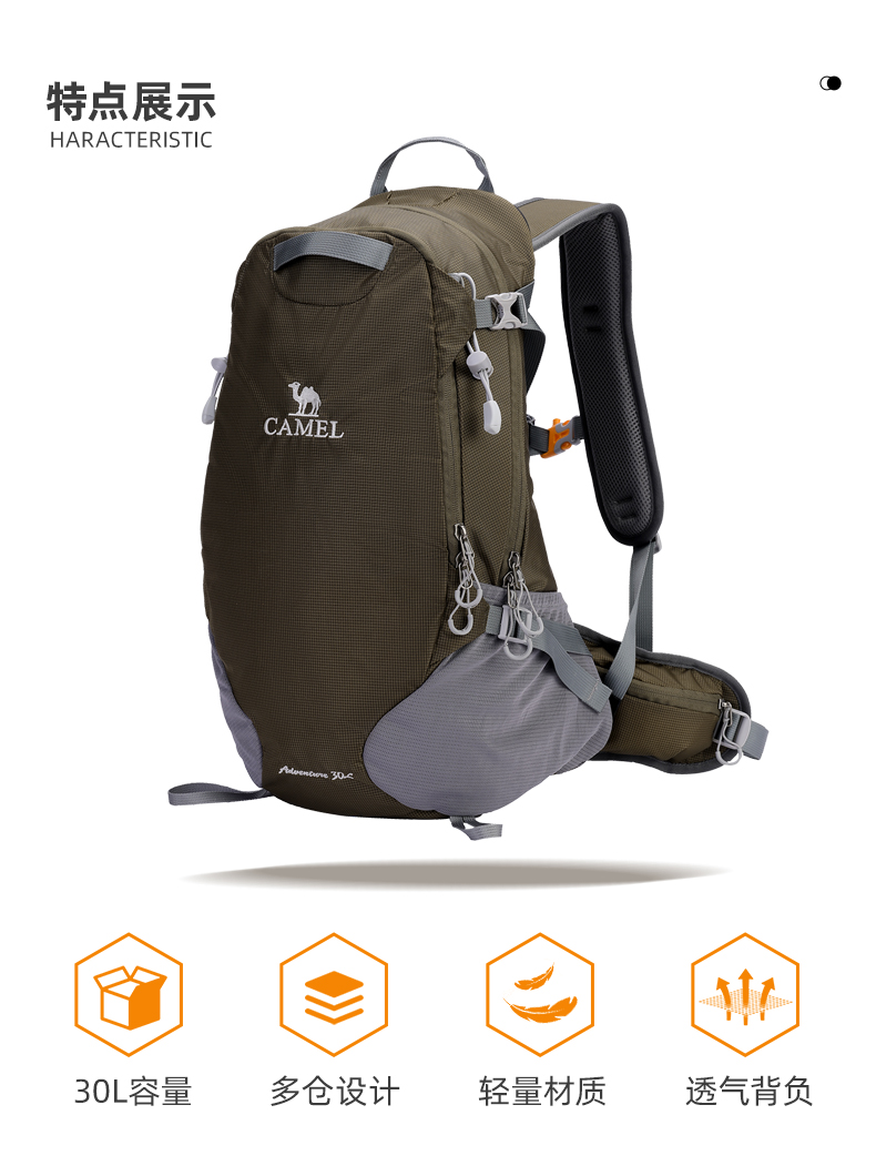 骆驼登山包轻便女户外徒步双肩包运动露营休闲旅行通勤登山背包男 1S32267148