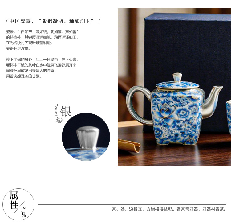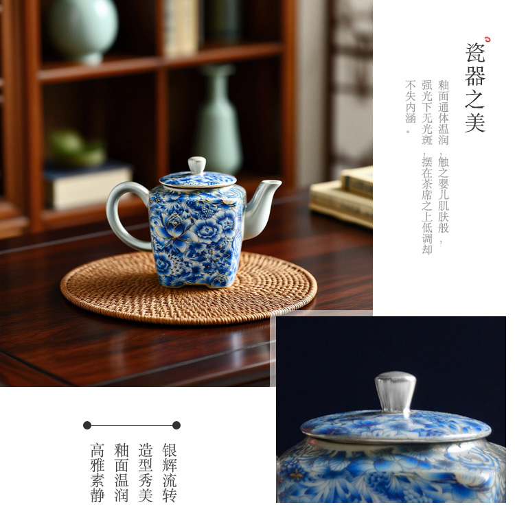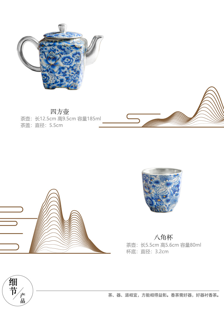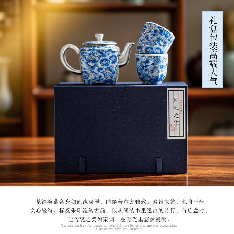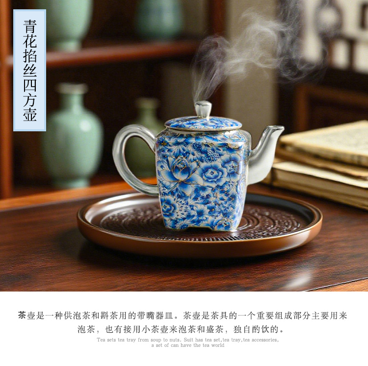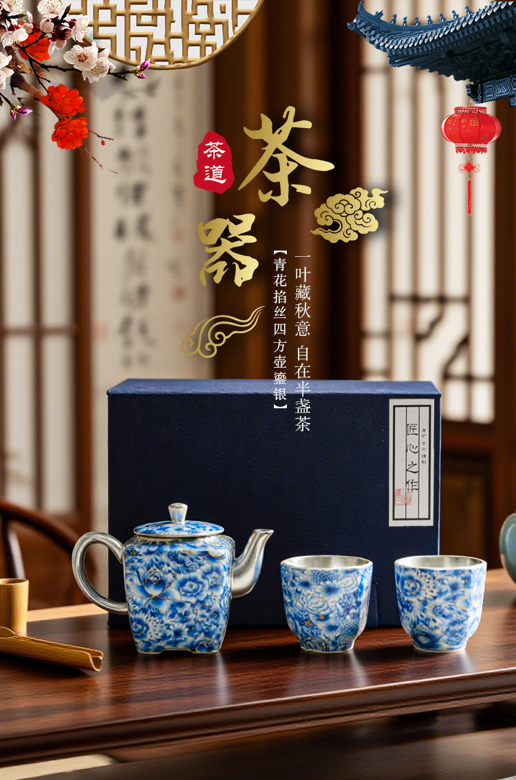 热卖中!!青花掐丝四方壶鎏银茶器