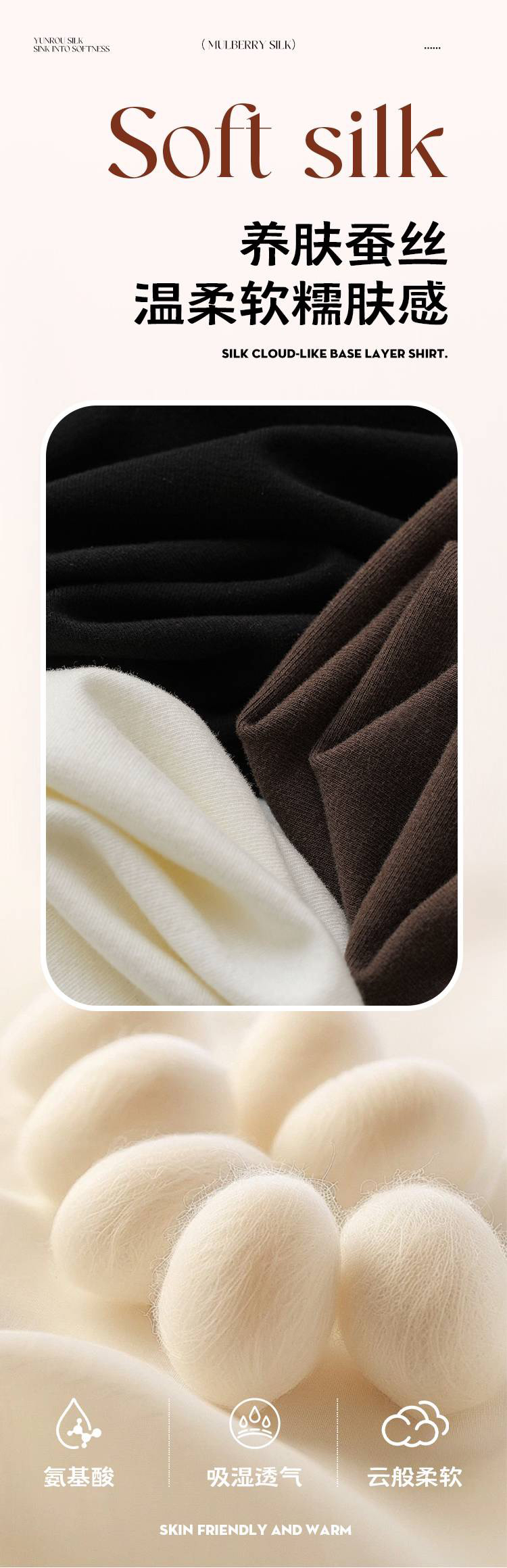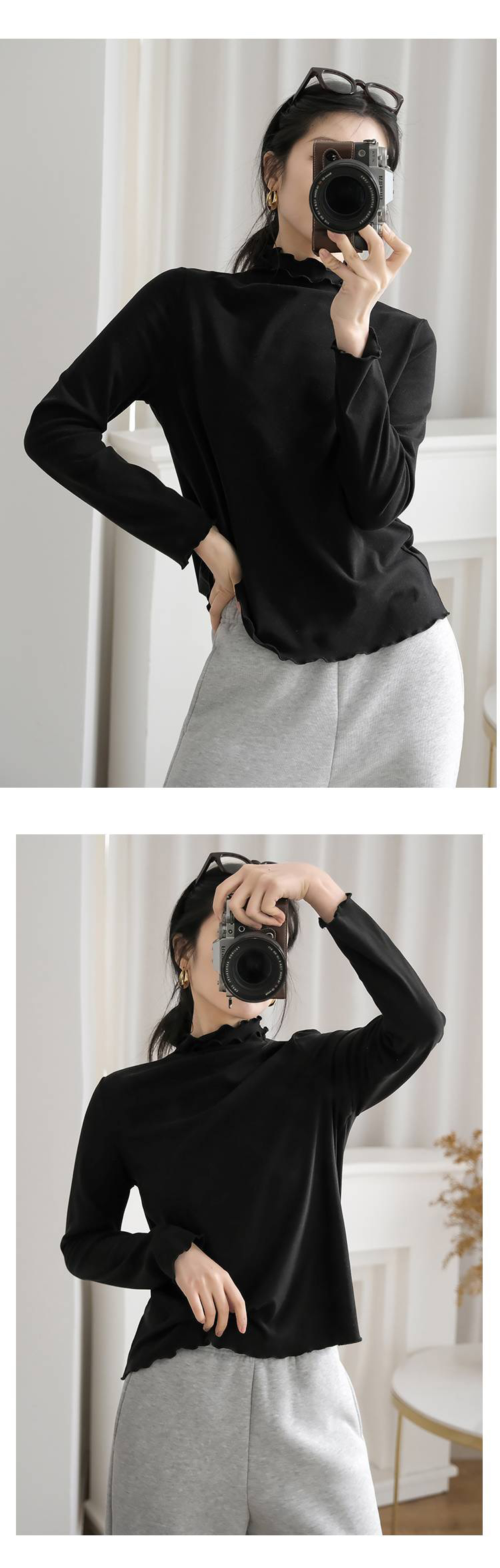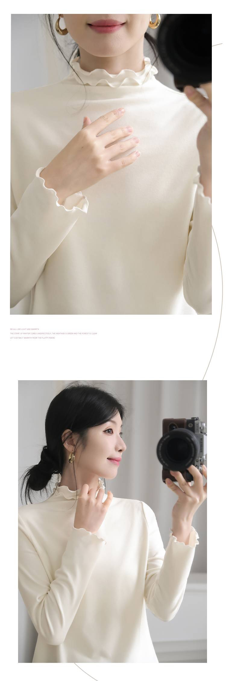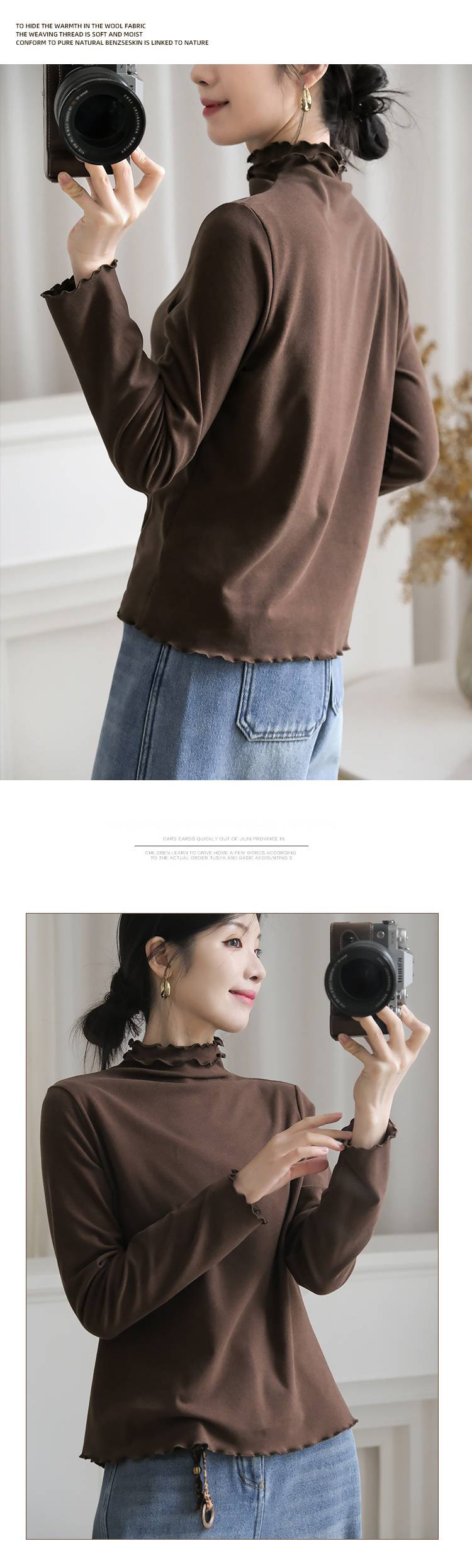 【4.0蚕丝云感】女士薄暖润肤木耳花边半高领打底衫003A007177