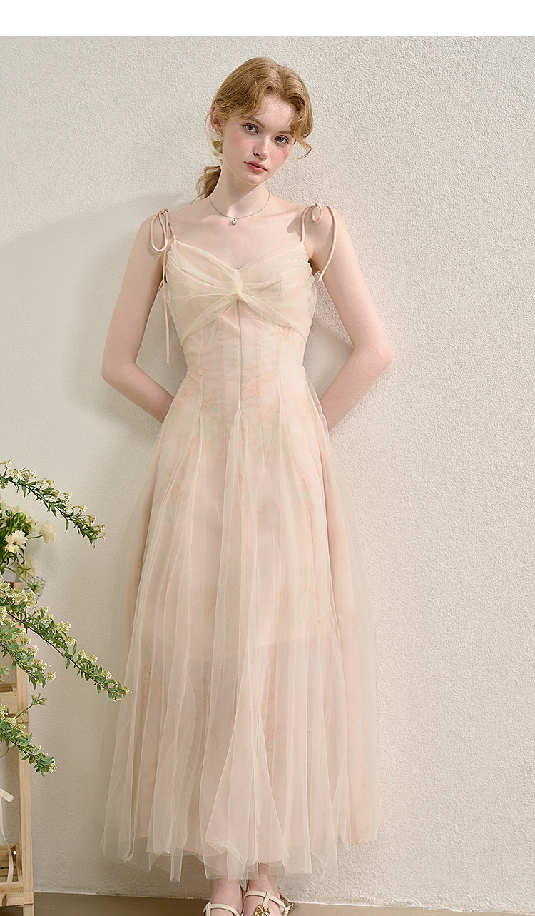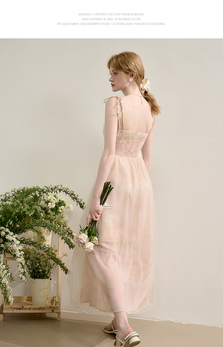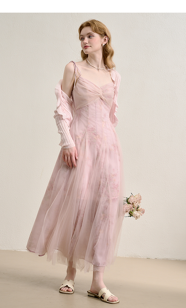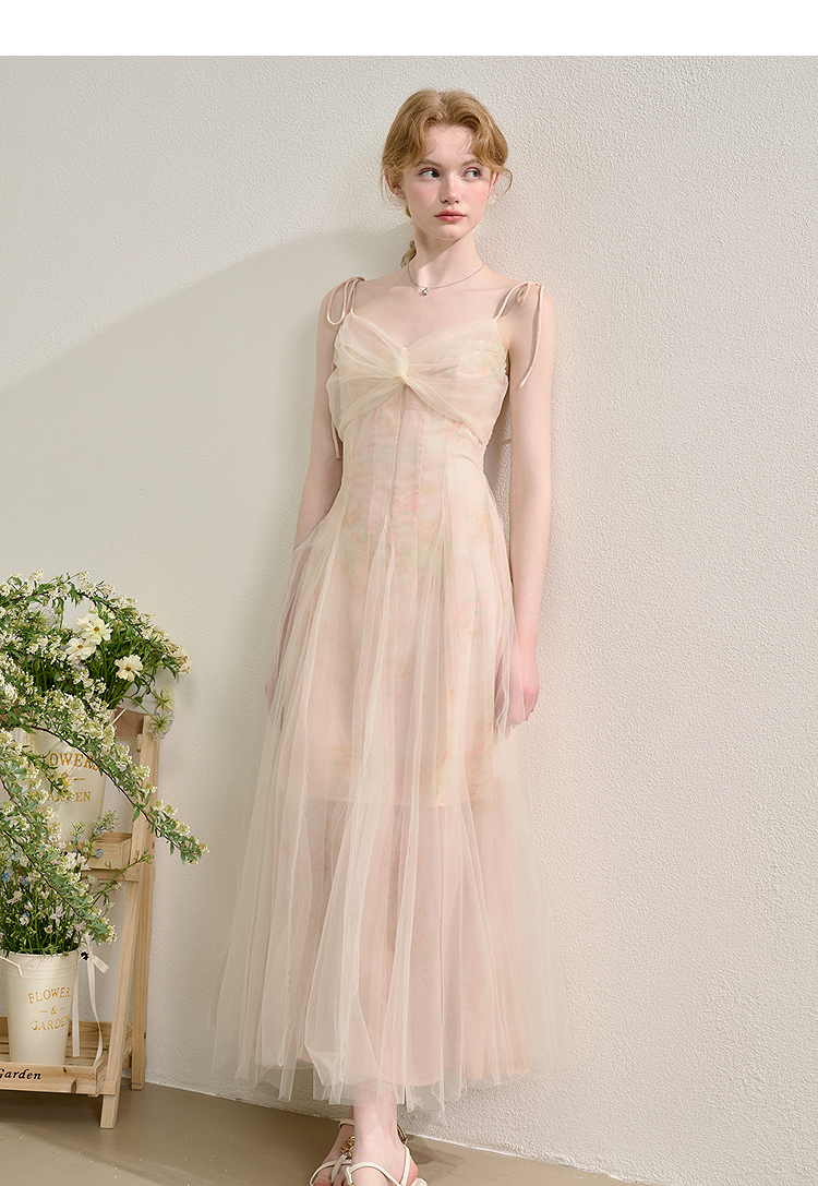 【仙气飘飘】法式浪漫设计感罩纱连衣裙女2025夏季碎花吊带裙H0050816