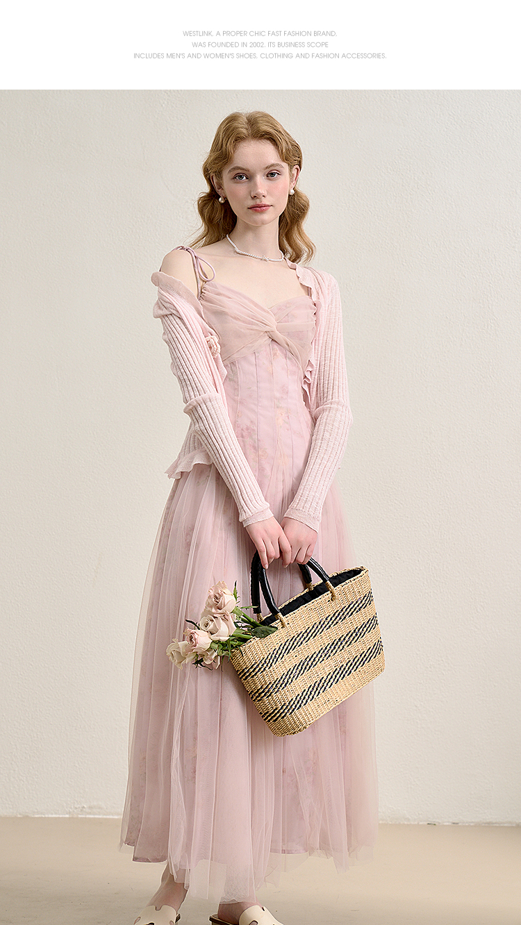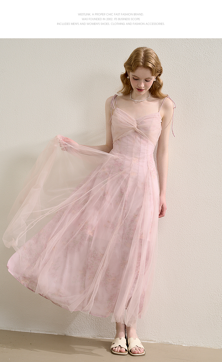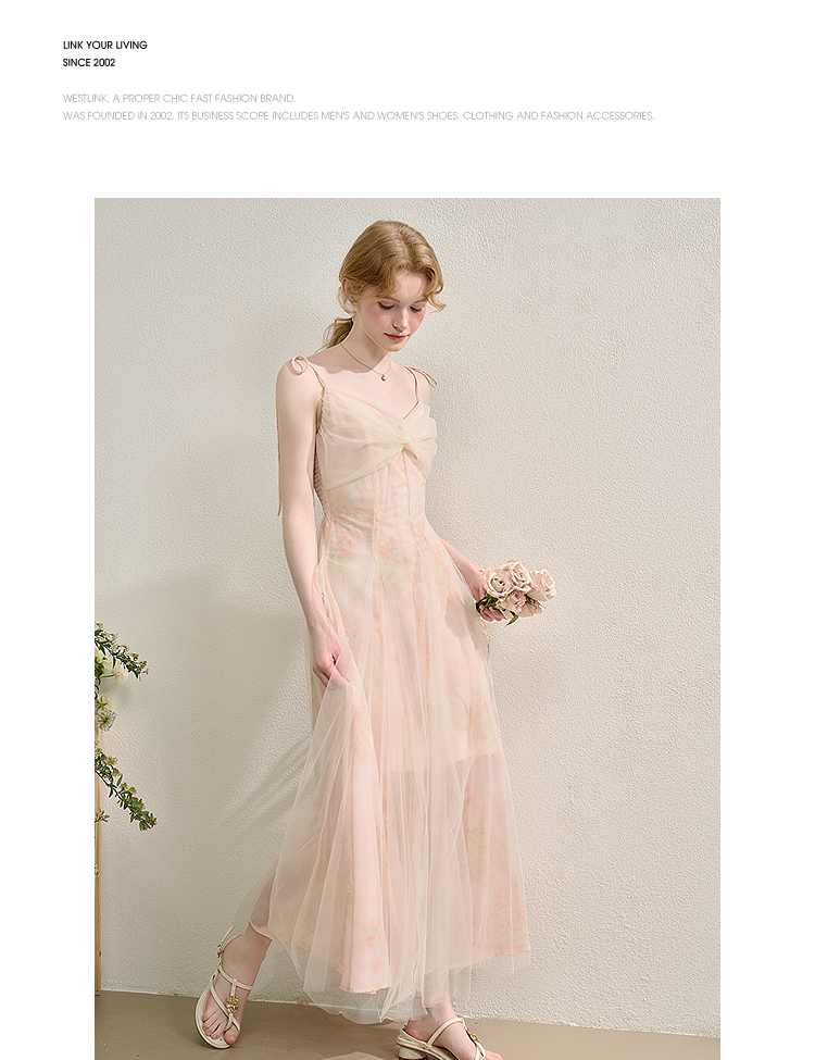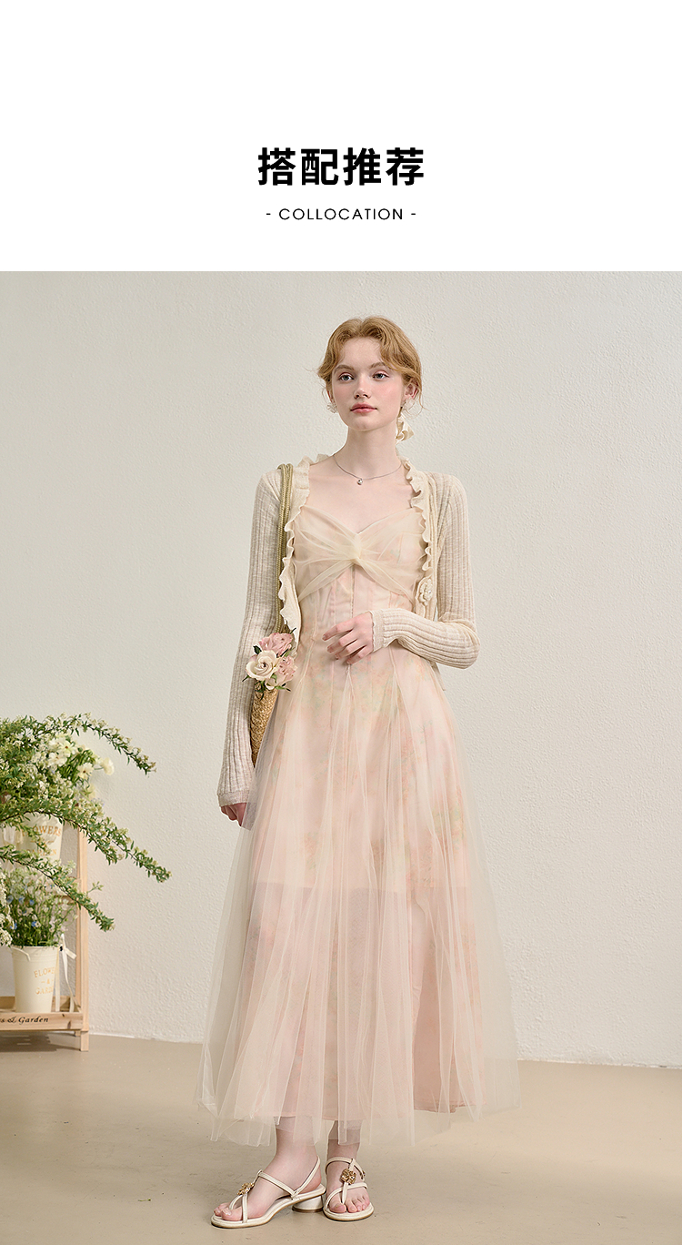 【仙气飘飘】法式浪漫设计感罩纱连衣裙女2025夏季碎花吊带裙H0050816