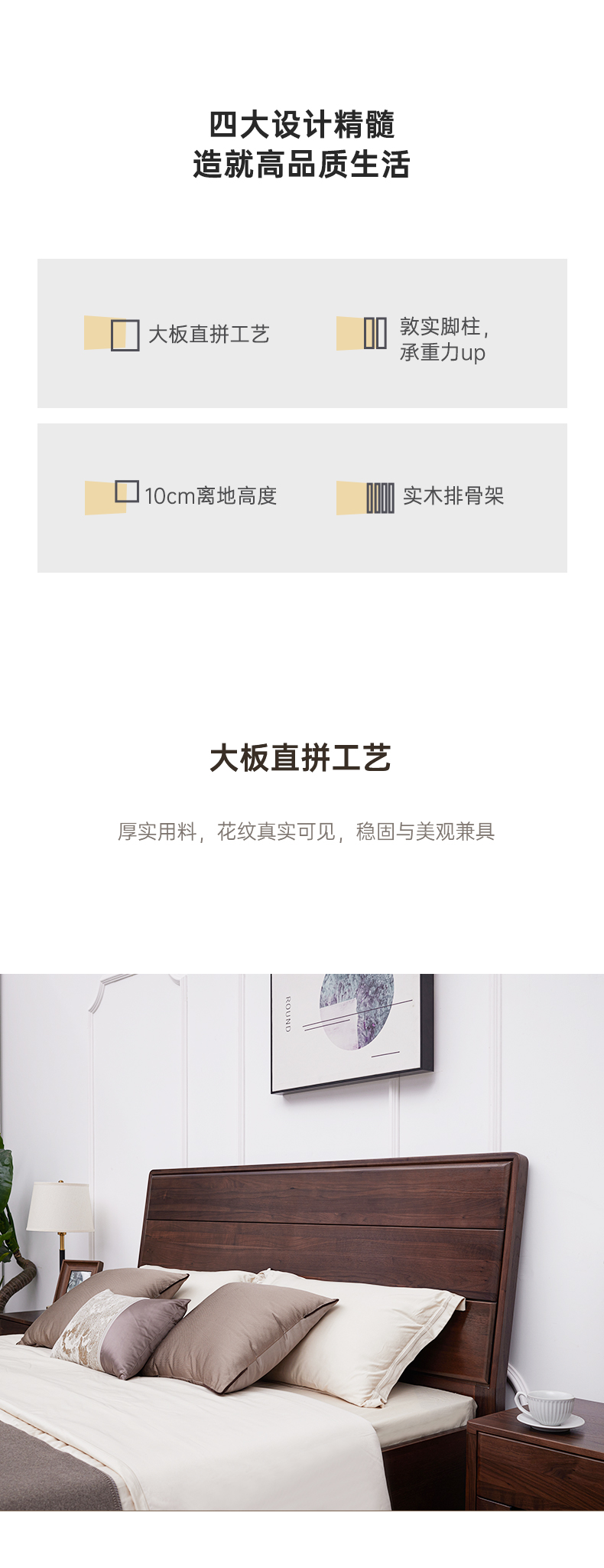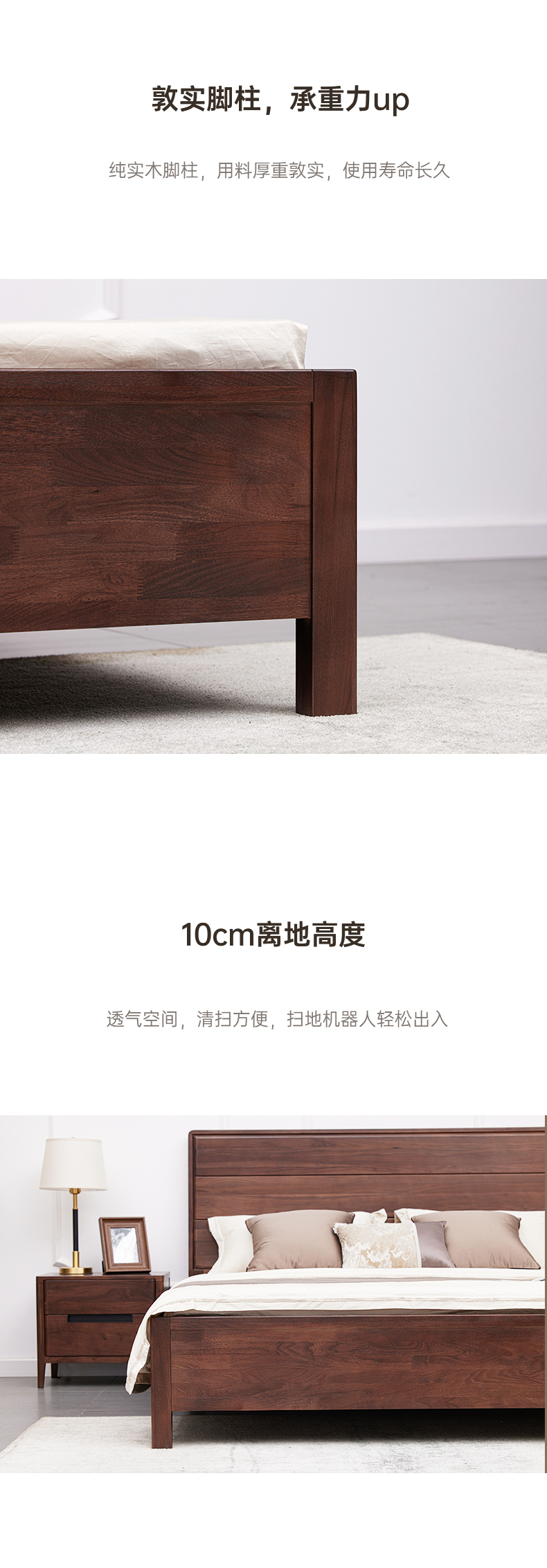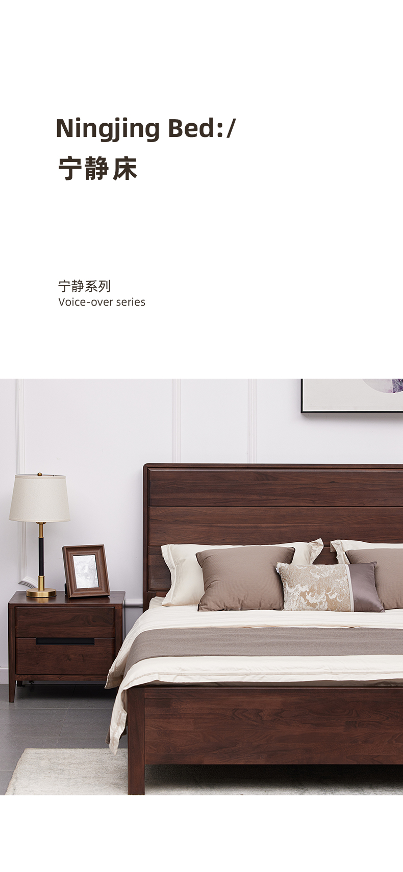 【现代实木风-NJT1104C03床】现代实木/现代简约/卧室/北美黑胡桃/实木床