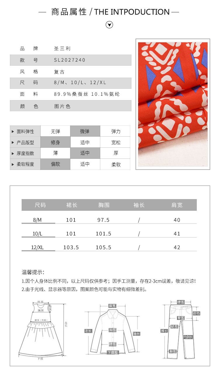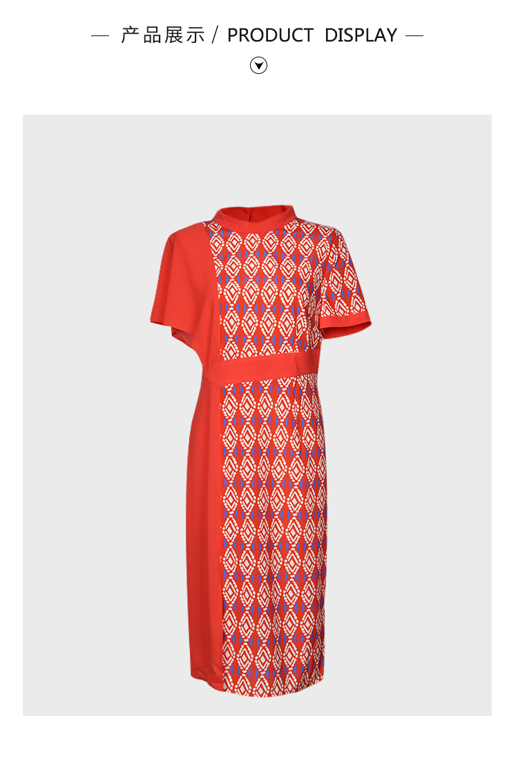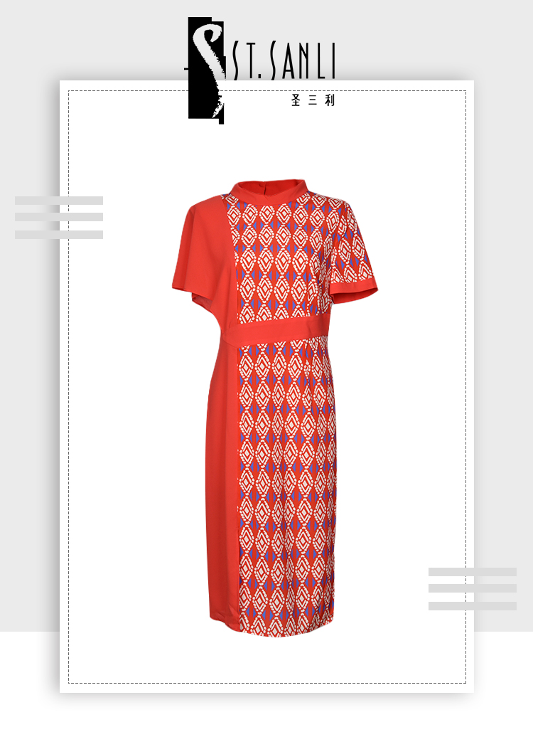圣三利女装 优雅时尚中长款拼接印花垂感连衣裙SL2027240