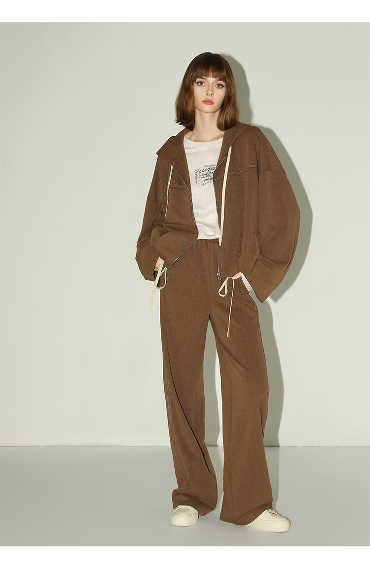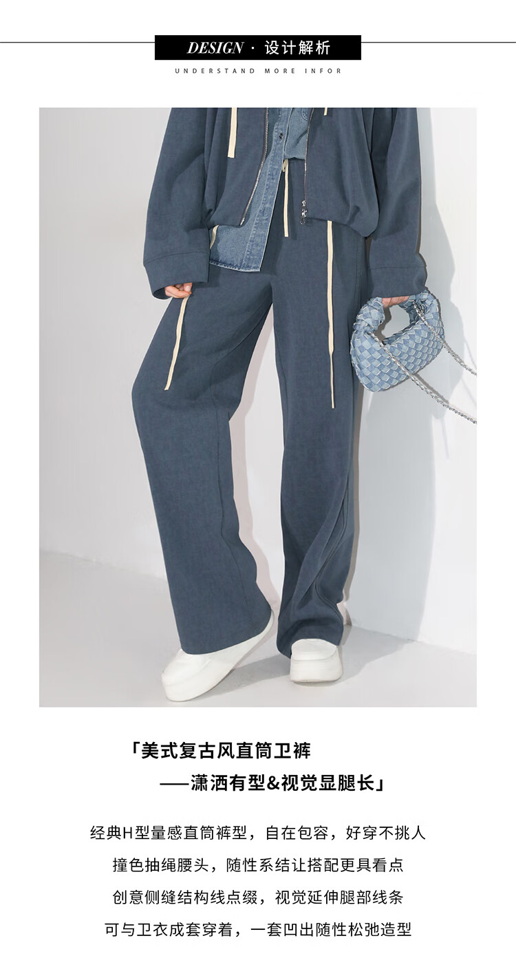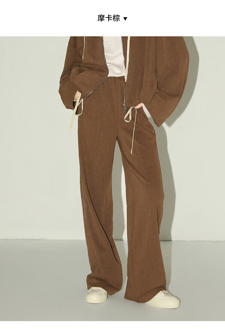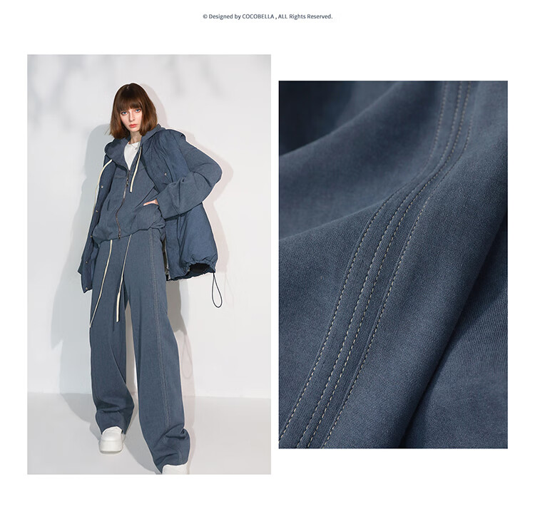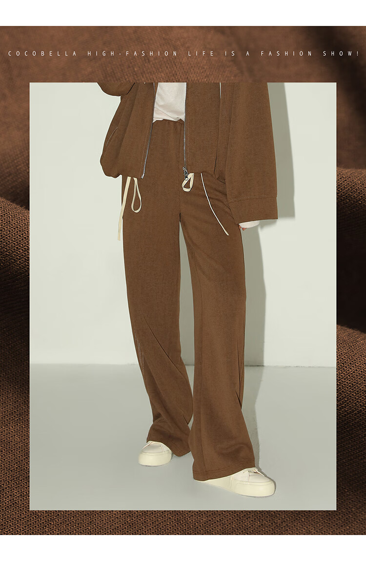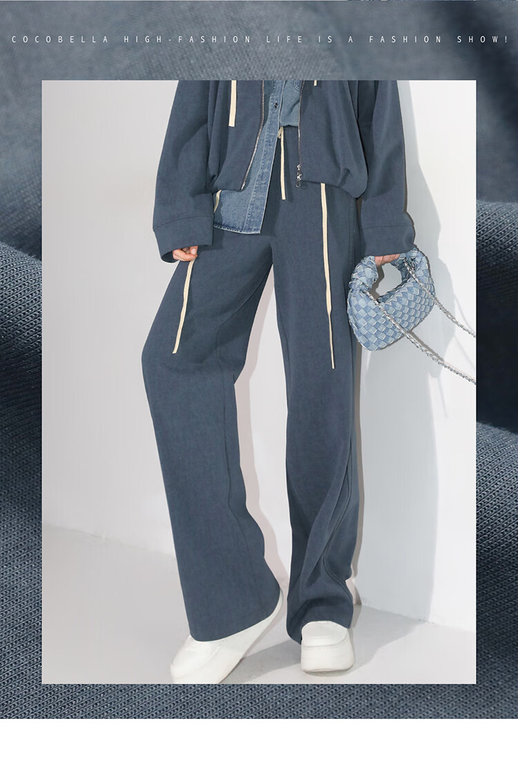 COCOBELLA重工撞色明线炒色花纱阔腿裤宽松直筒休闲裤PA0019
