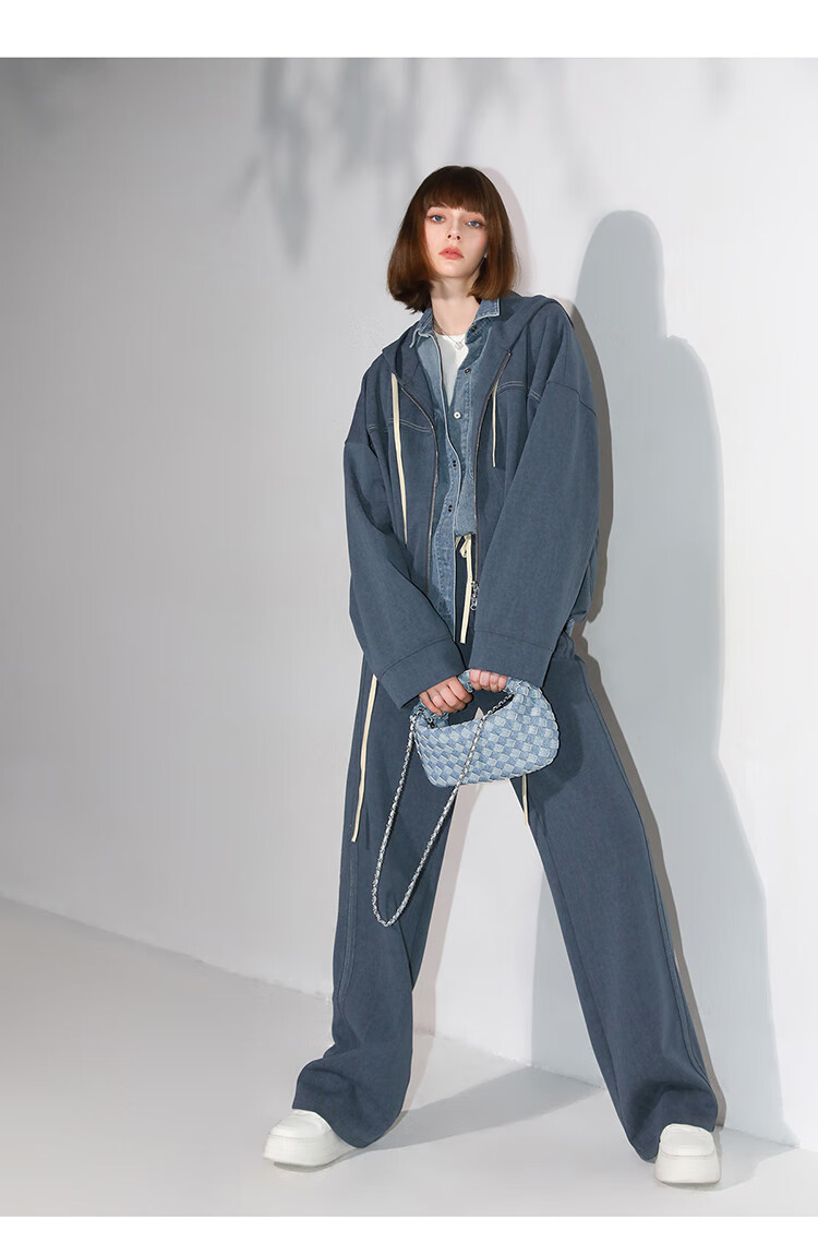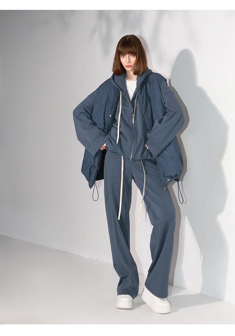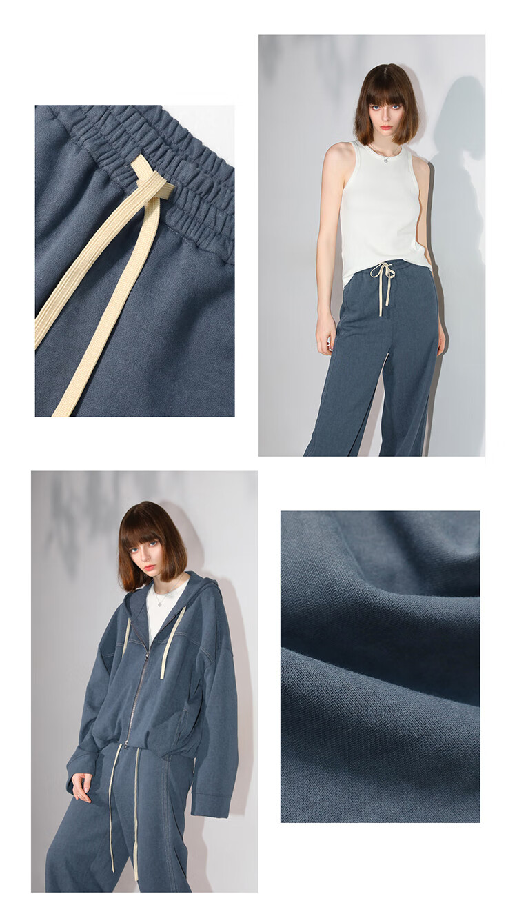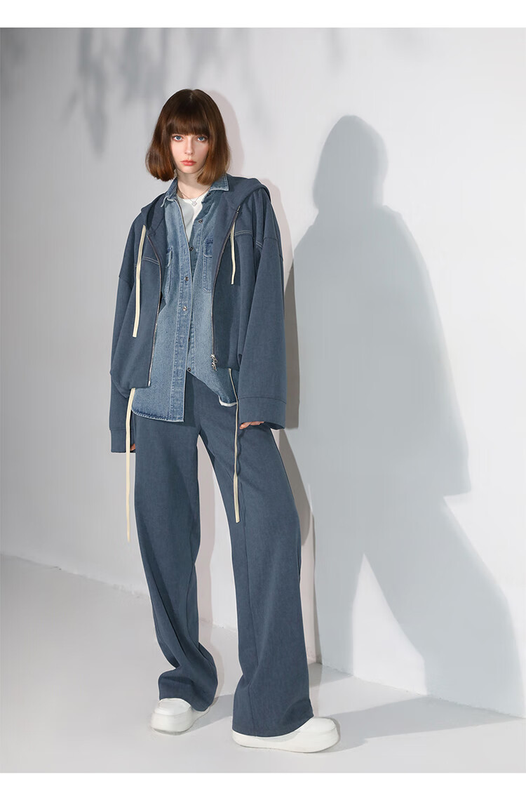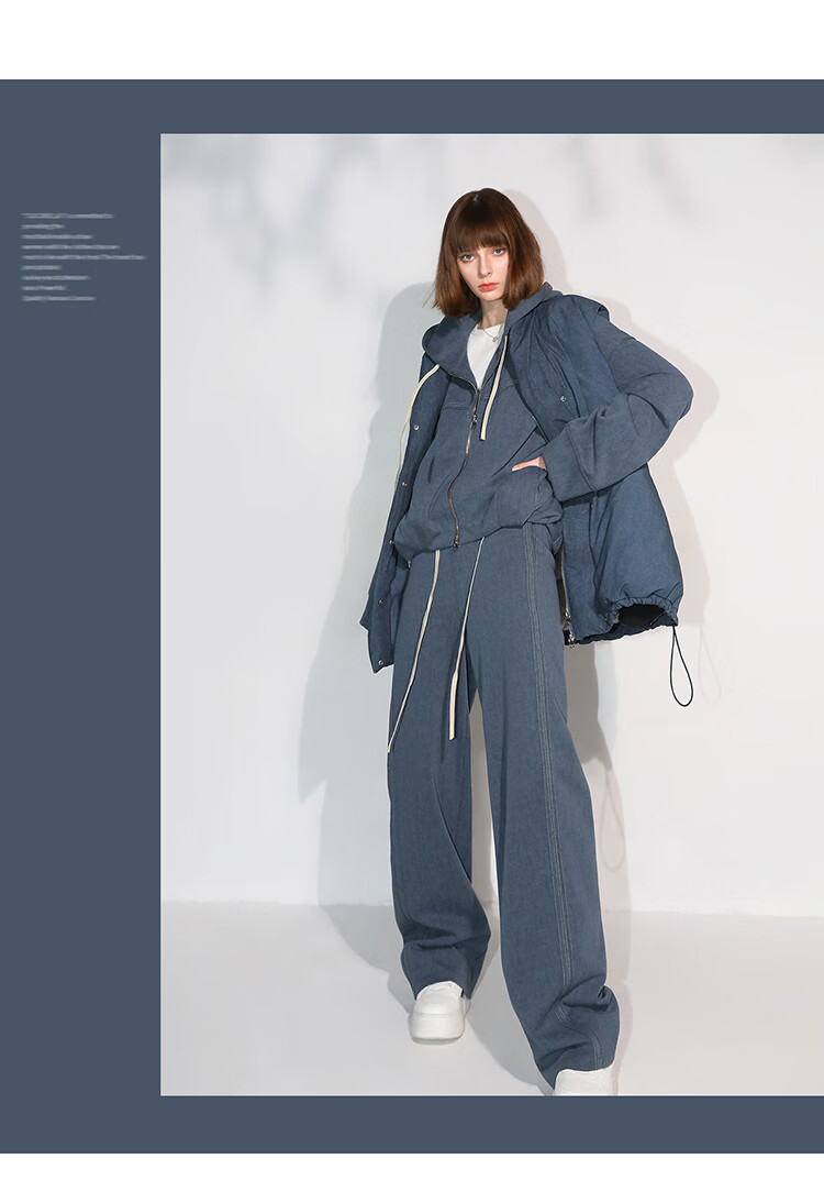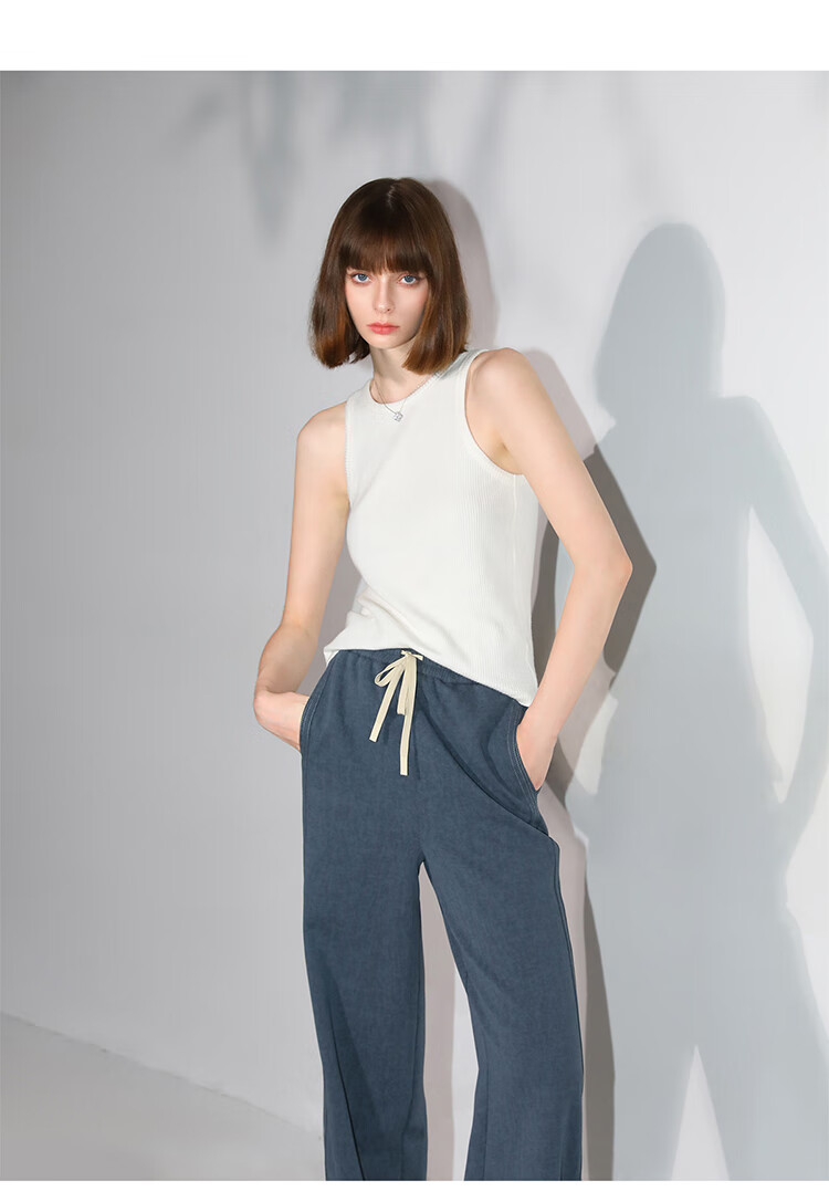 COCOBELLA重工撞色明线炒色花纱阔腿裤宽松直筒休闲裤PA0019