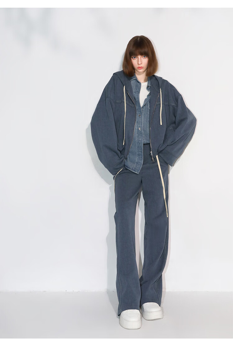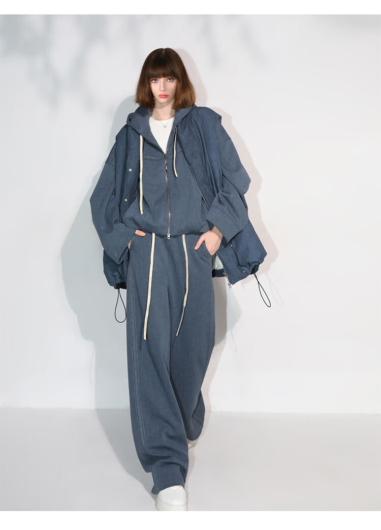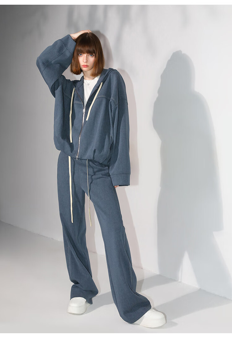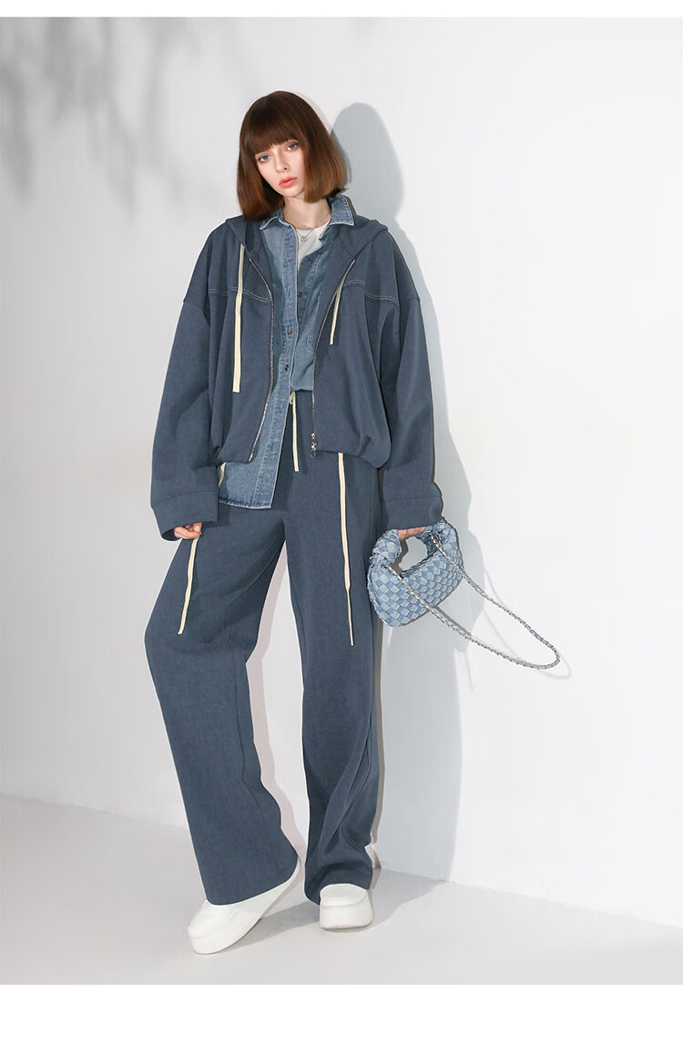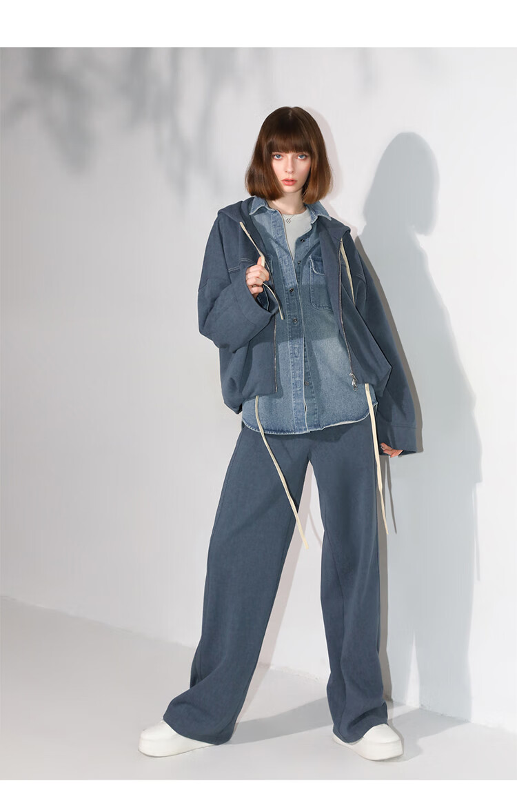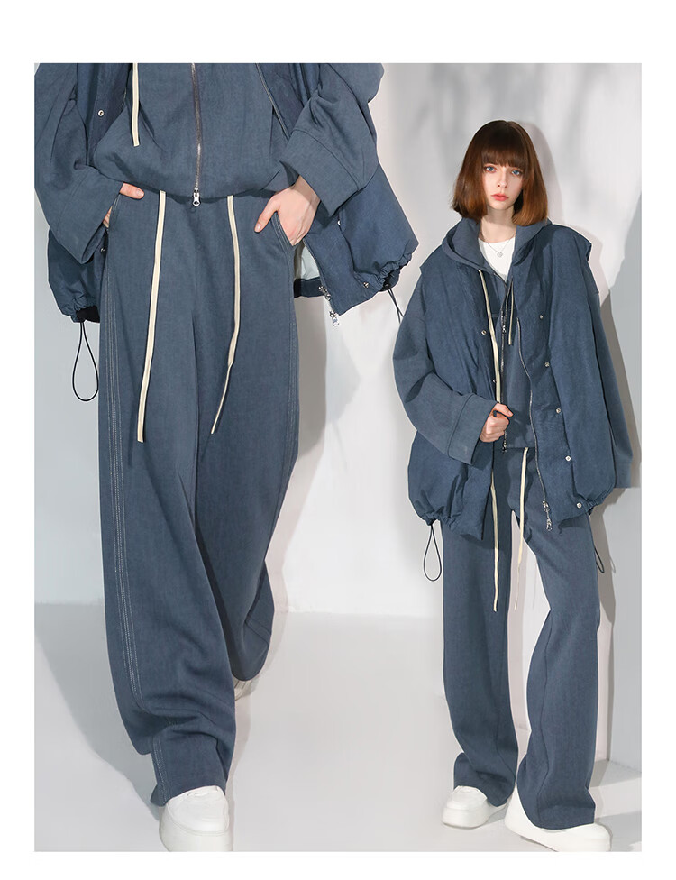 COCOBELLA重工撞色明线炒色花纱阔腿裤宽松直筒休闲裤PA0019